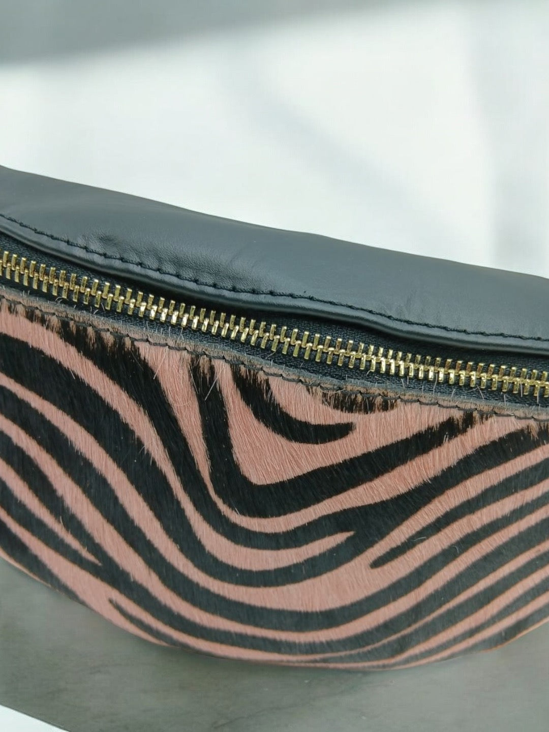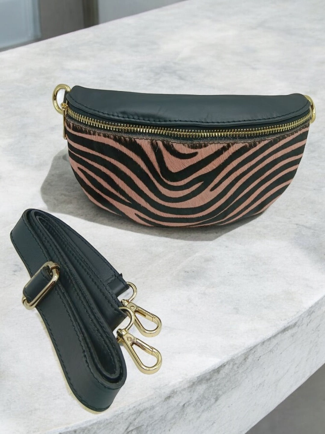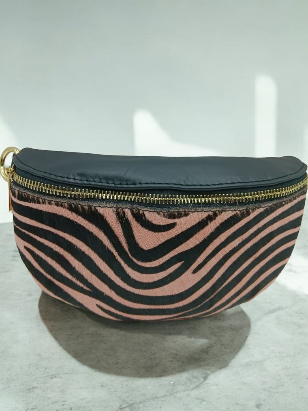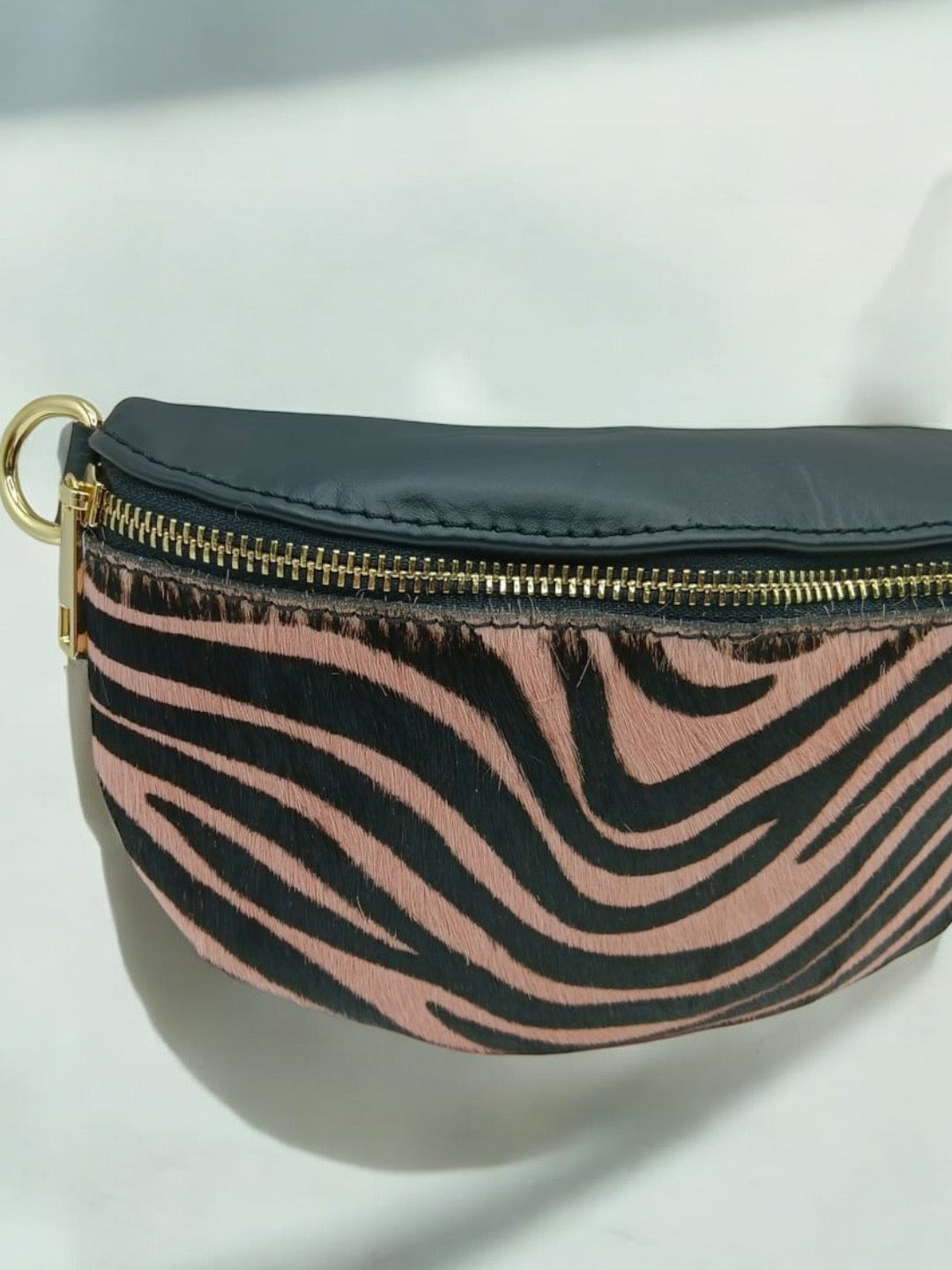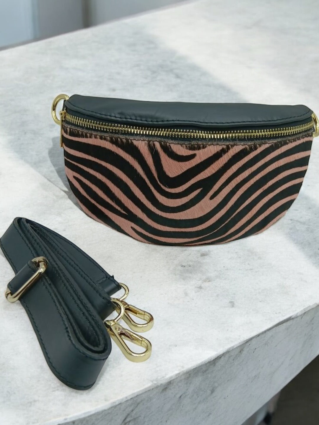 Sac banane cuir mat et motif zèbre rose et noir