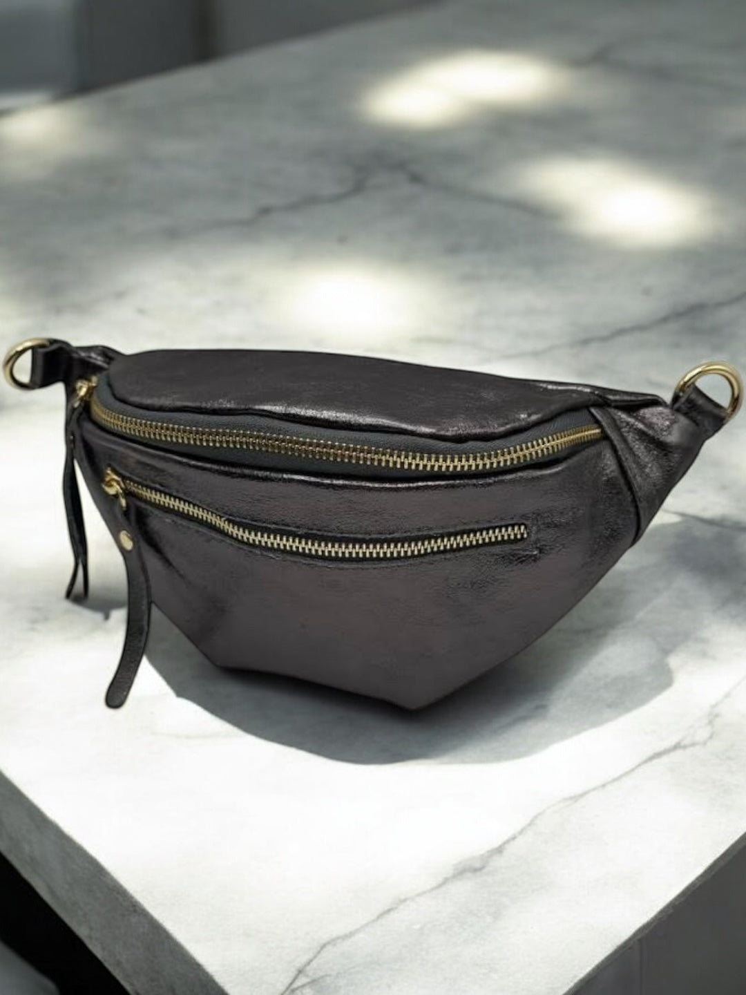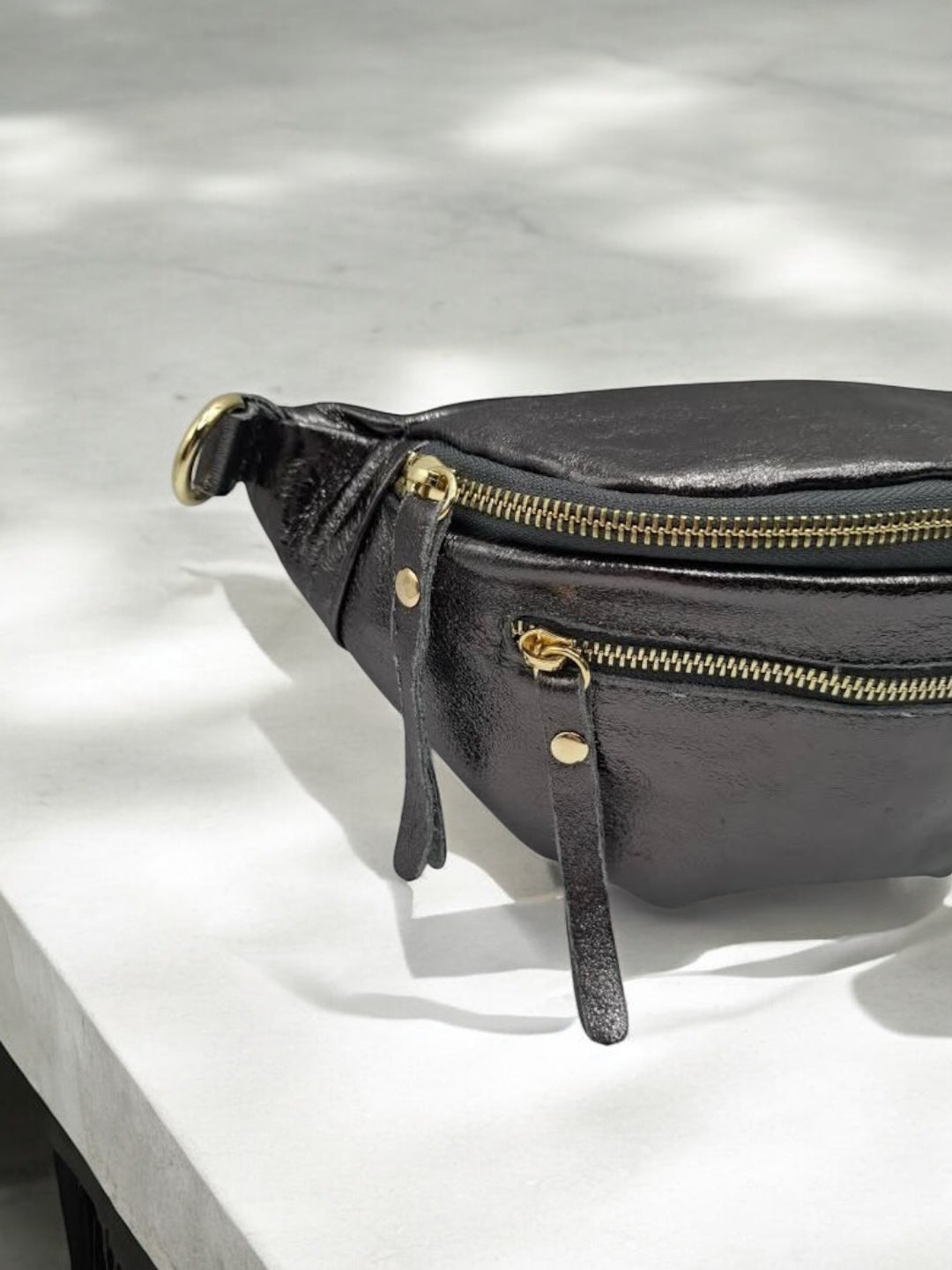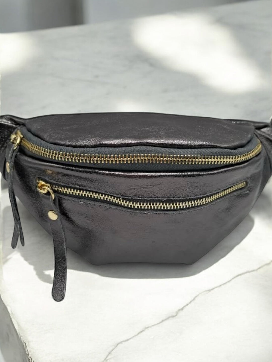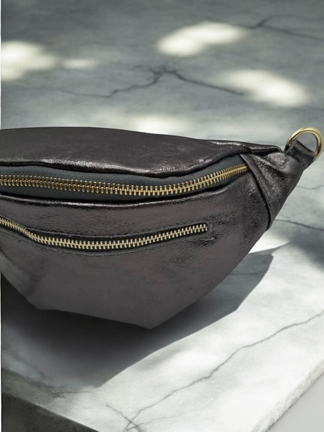 Sac banane en cuir irisé gris 2 poches