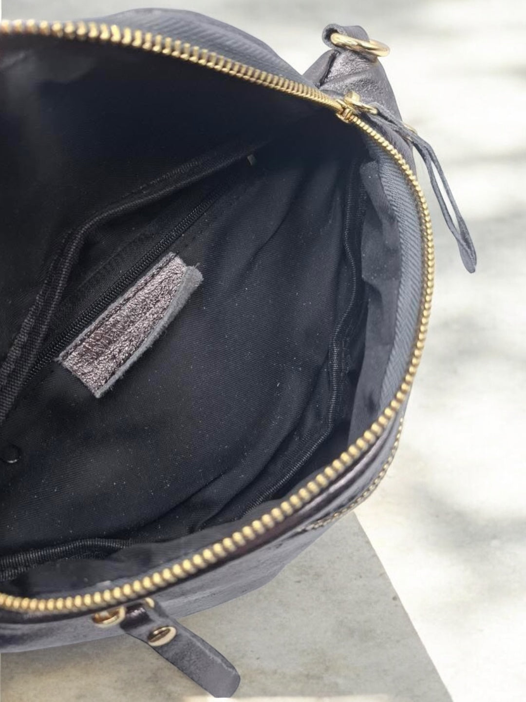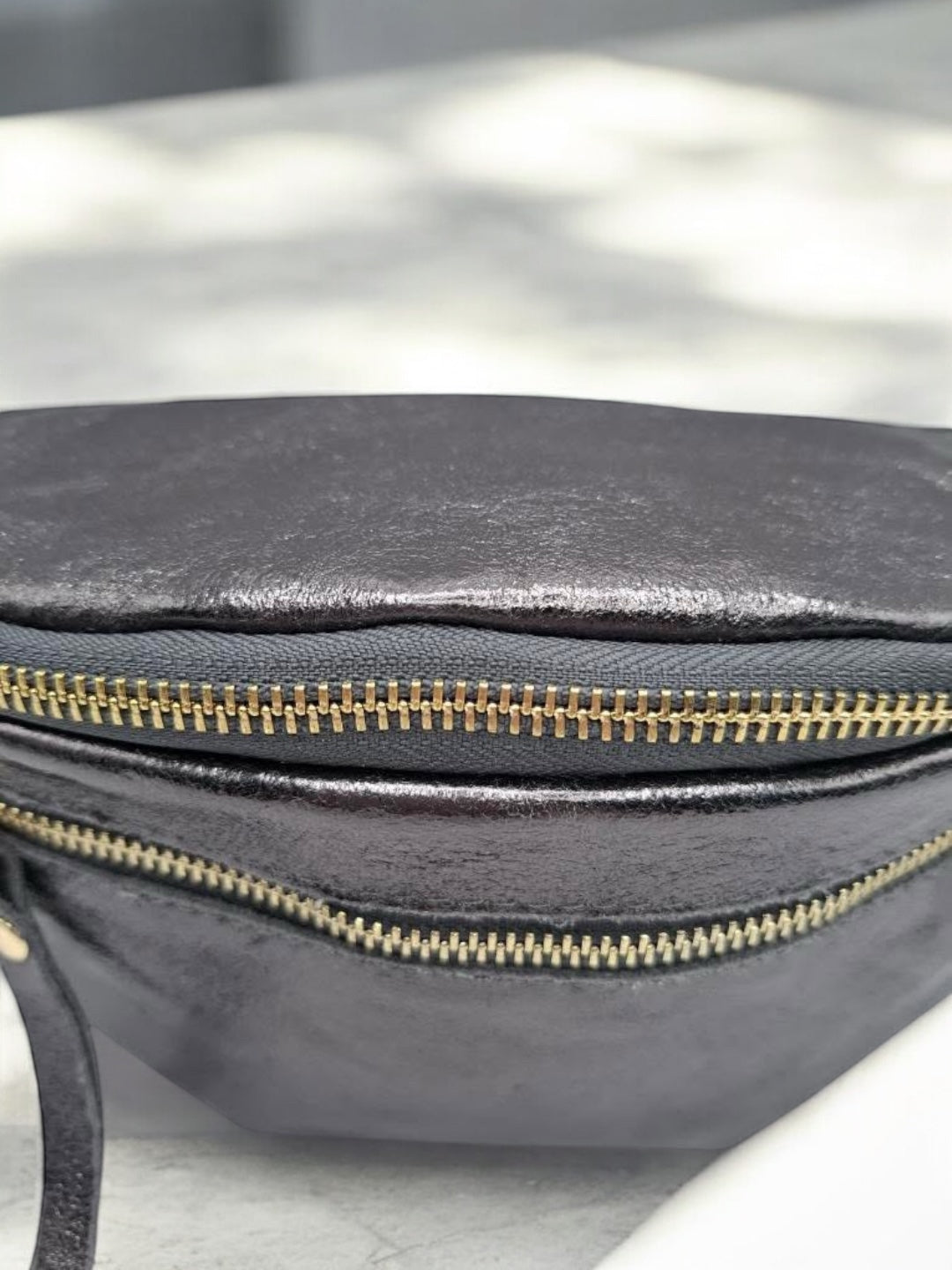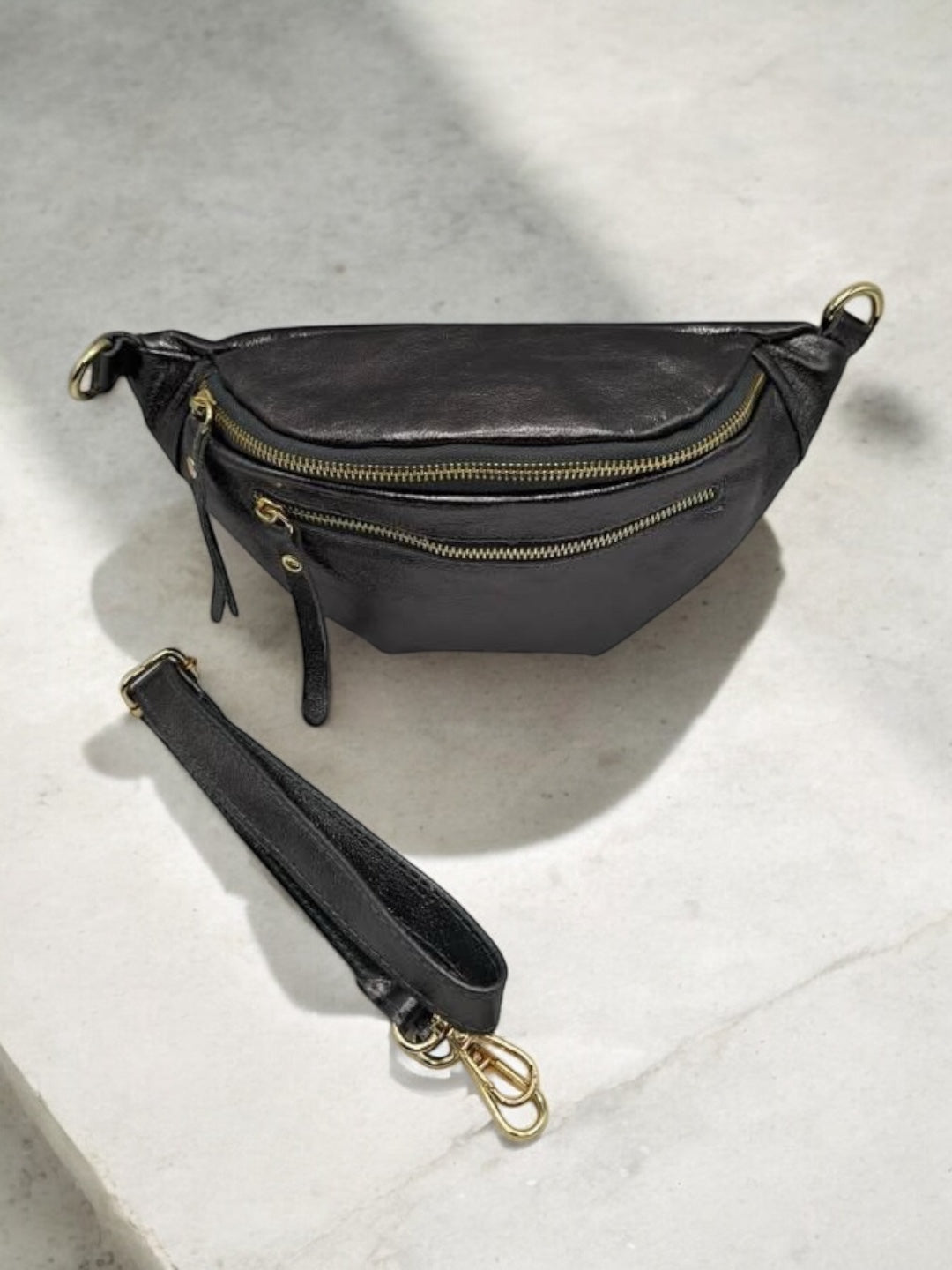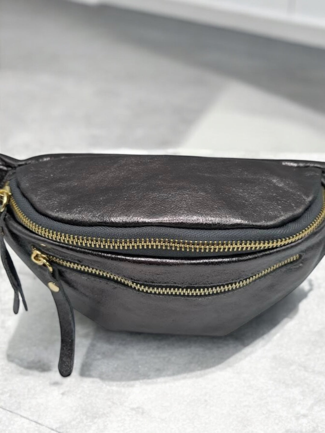 Sac banane en cuir irisé gris 2 poches