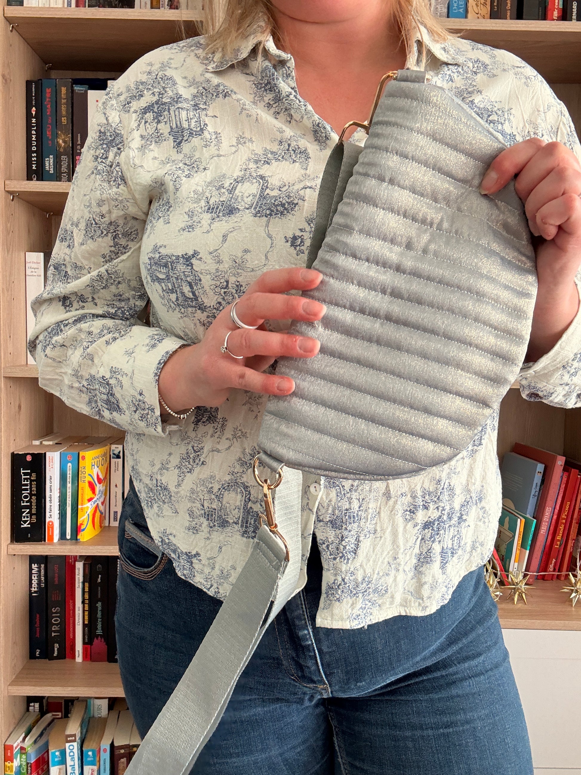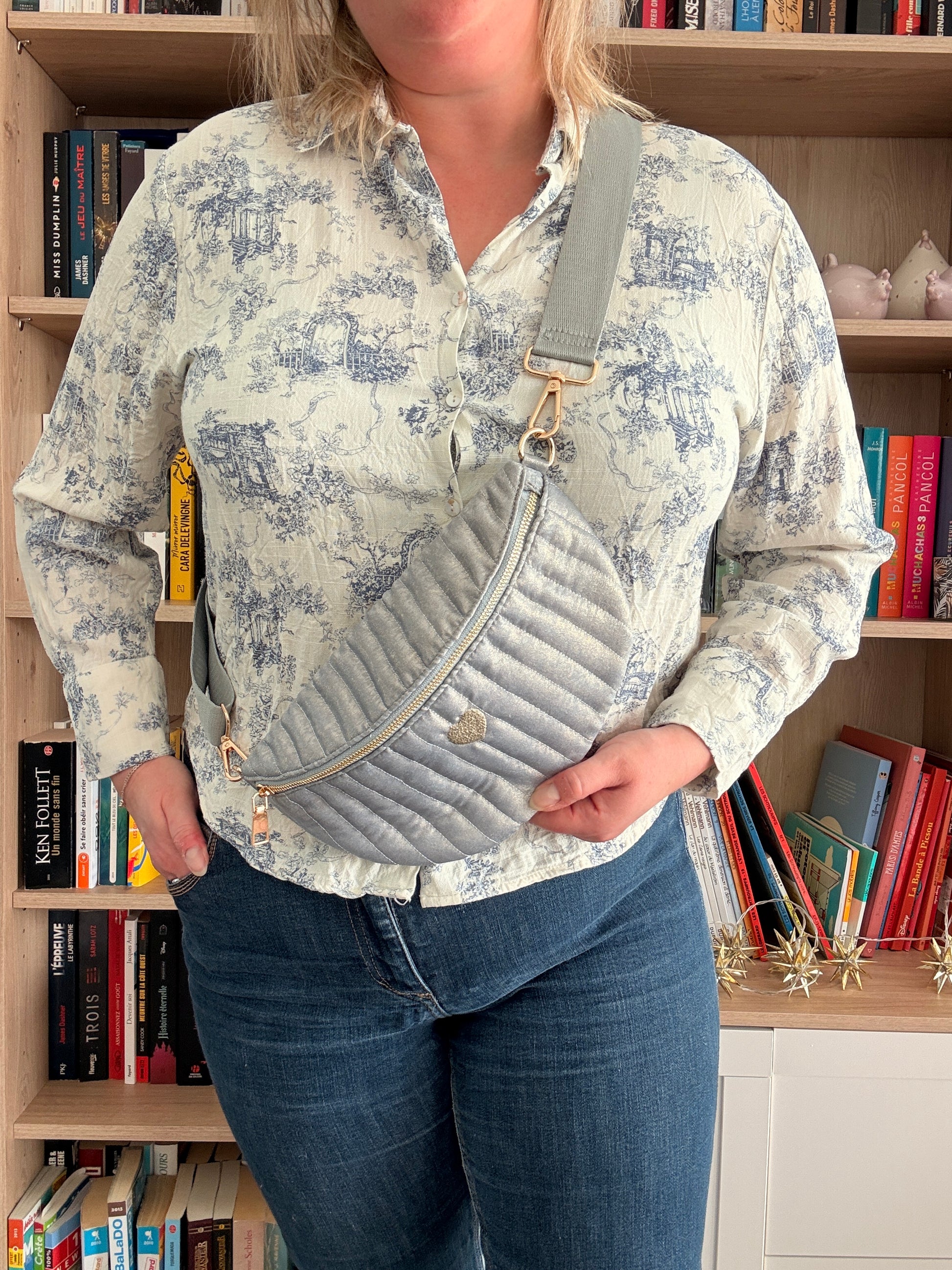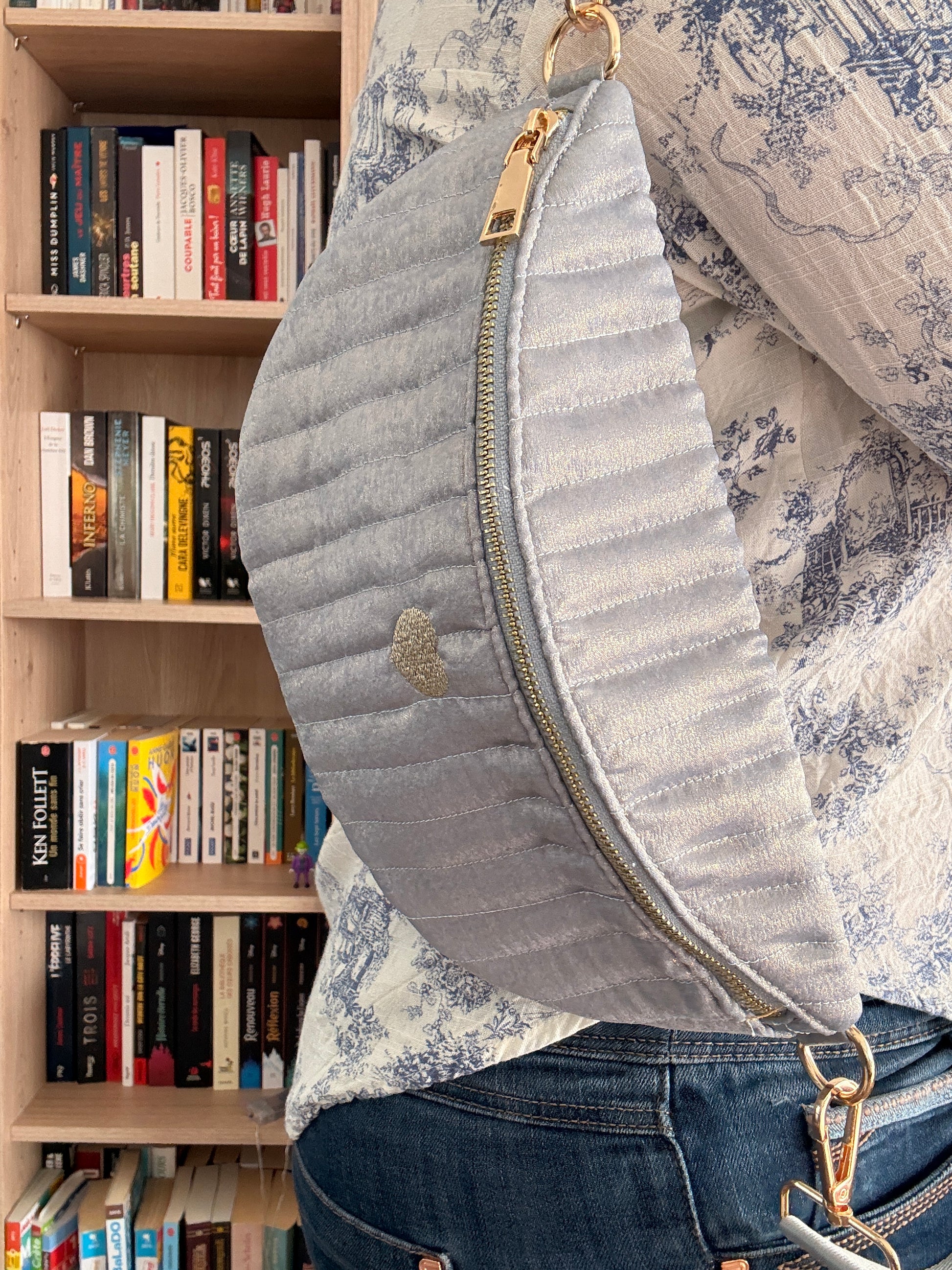 Apportez une signature lumineuse et raffinée à votre silhouette avec ce sac banane femme en tissu irisé bleu clair, pensé pour conjuguer élégance contemporaine et praticité au quotidien.