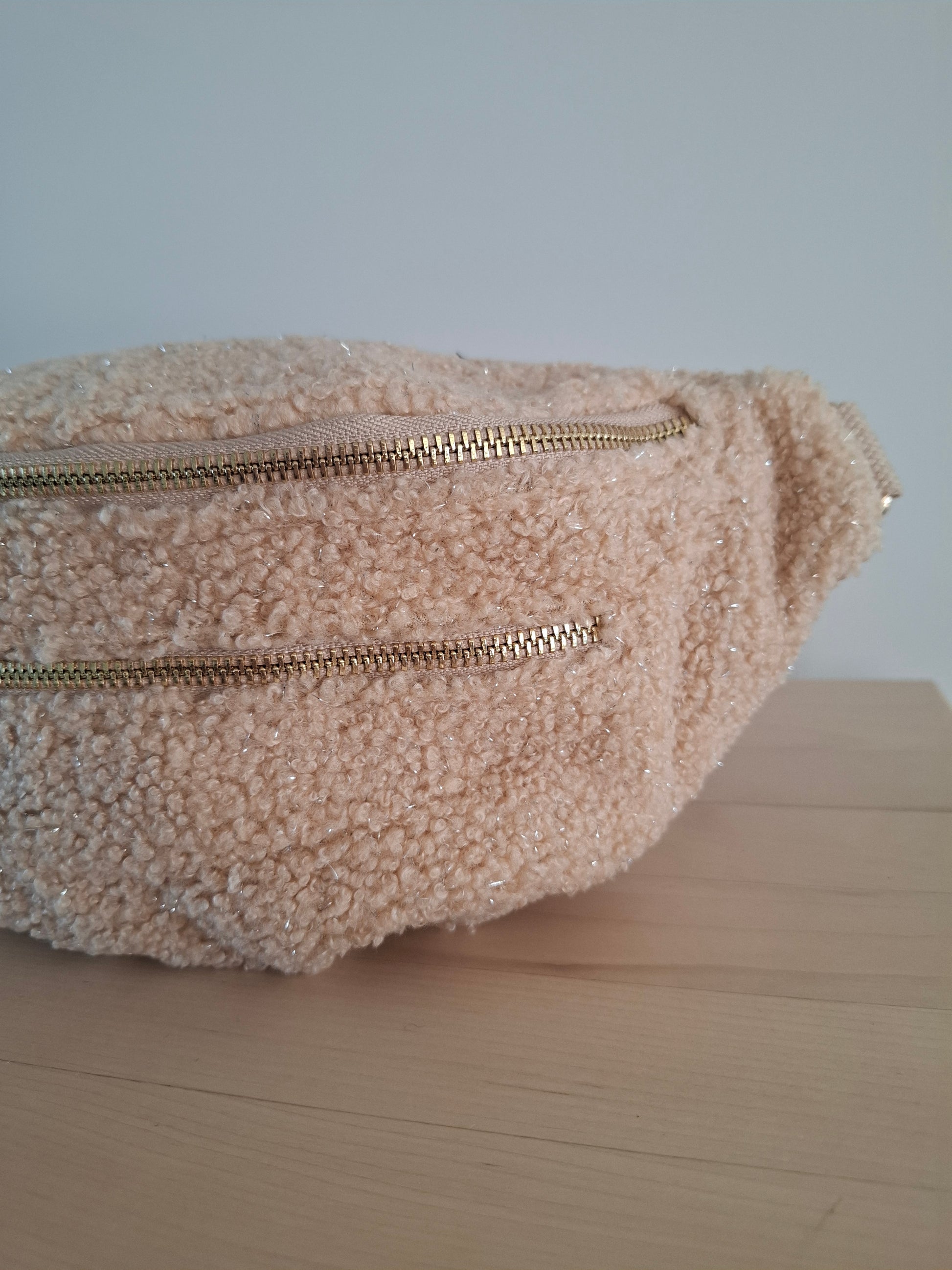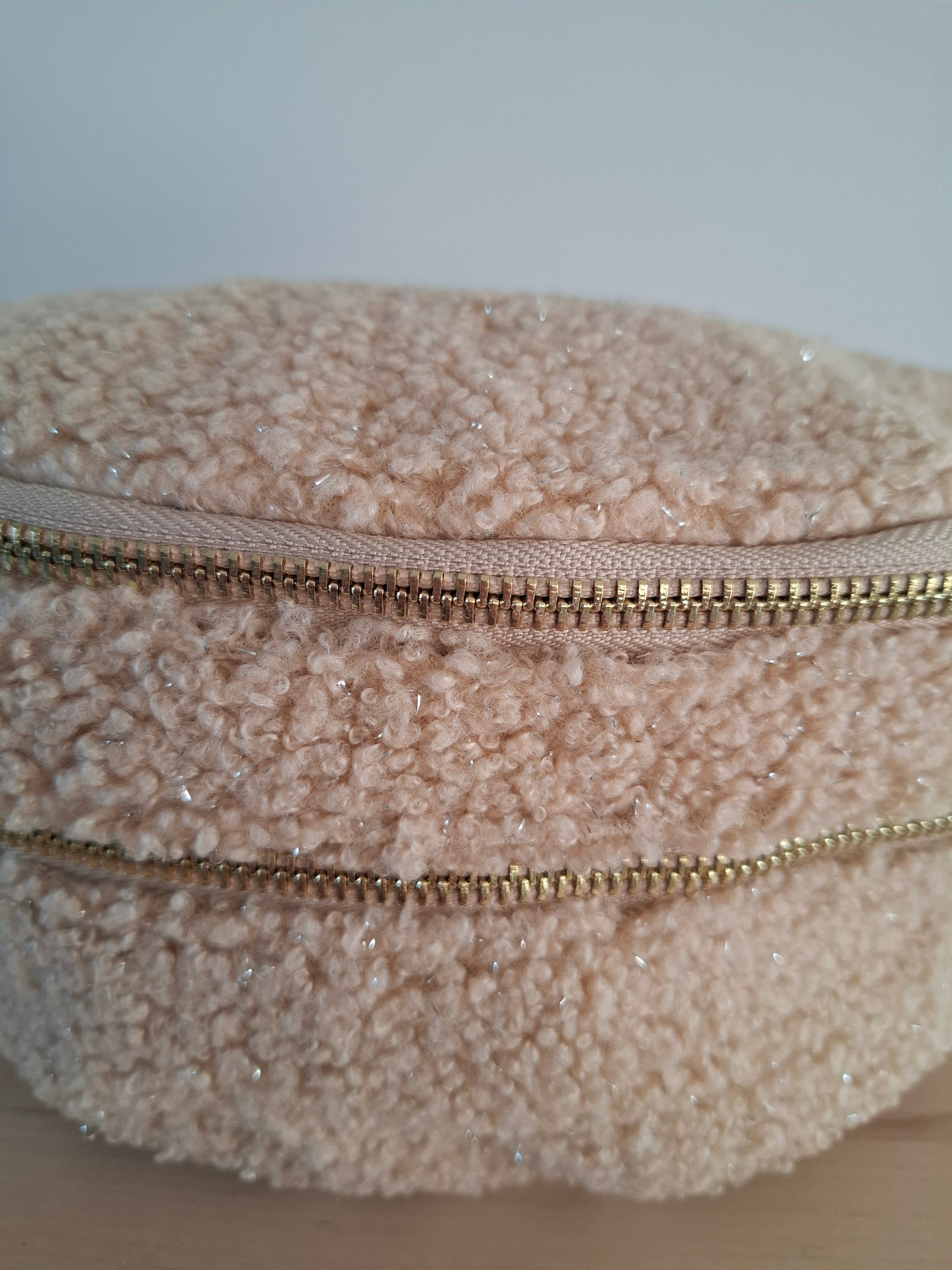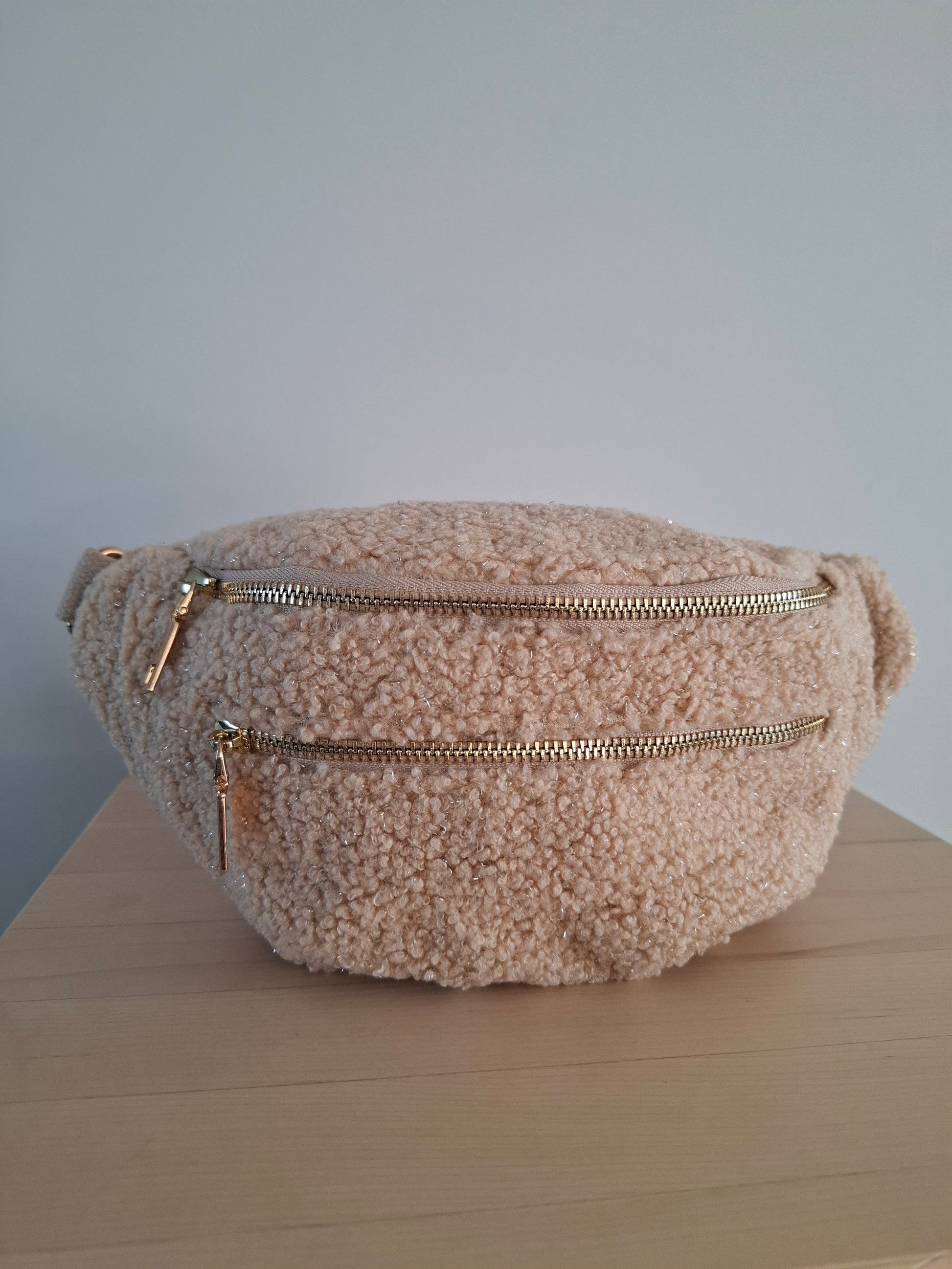 La matière moumoute du sac lui confère une texture douce et confortable.
