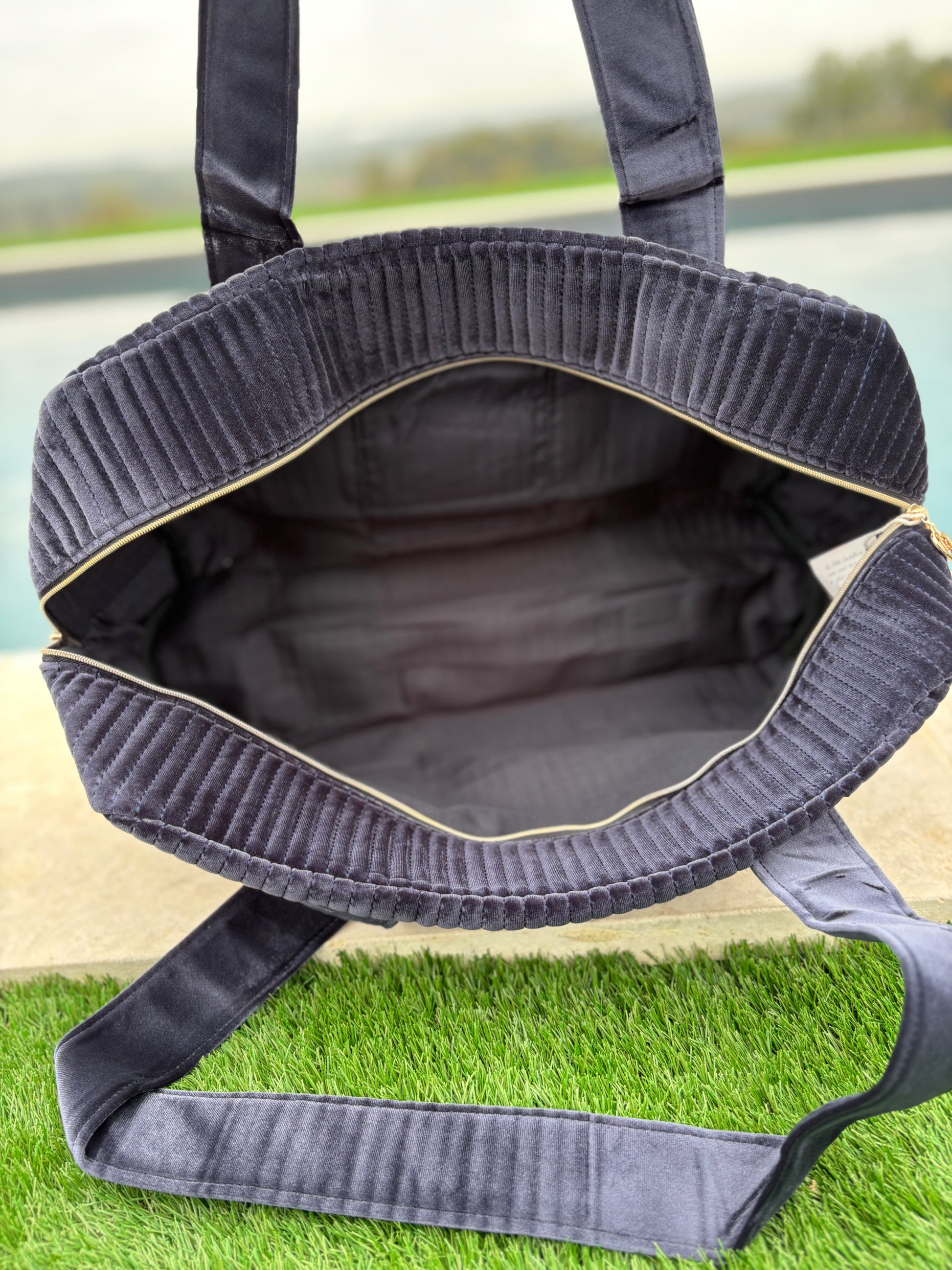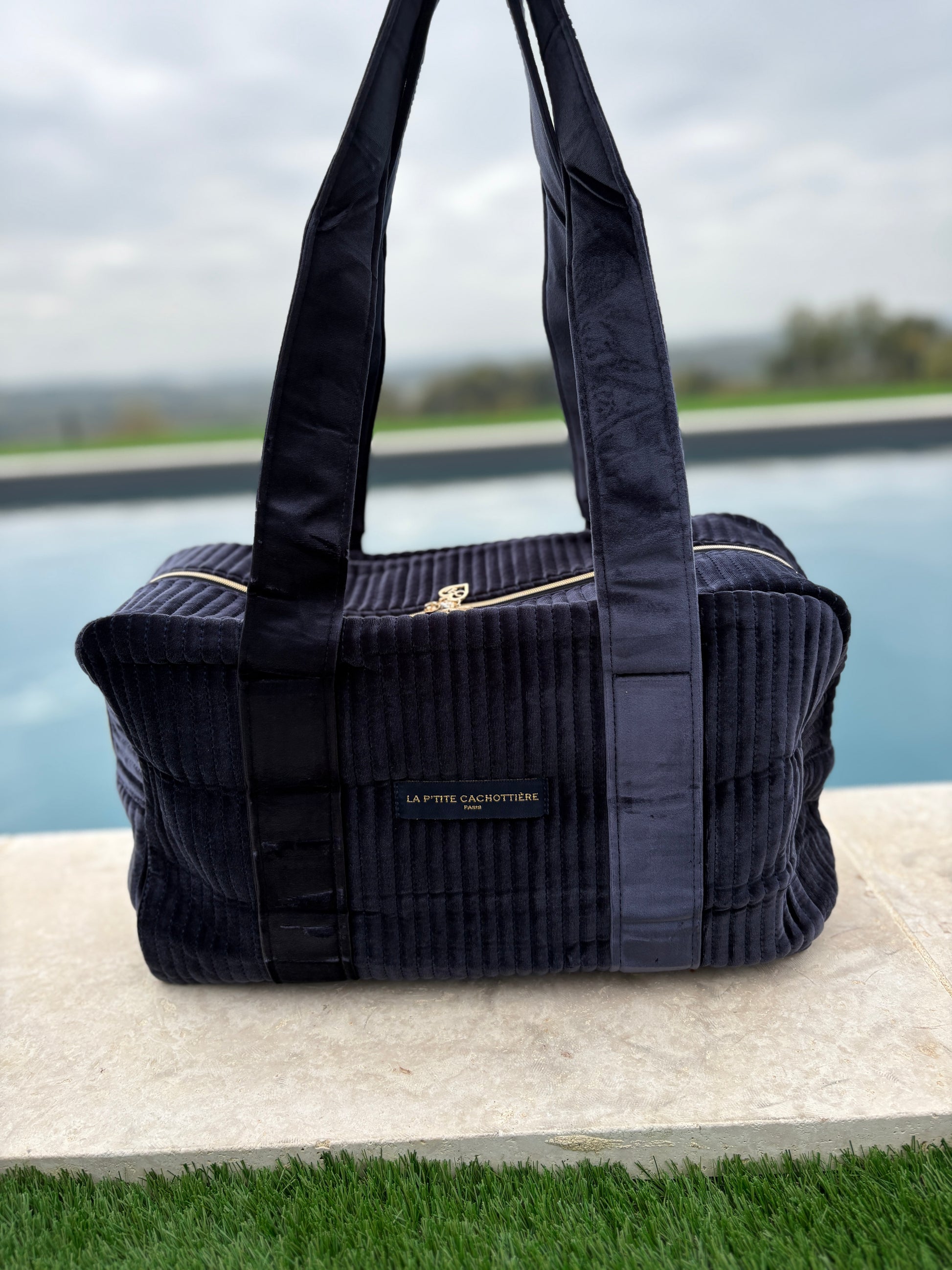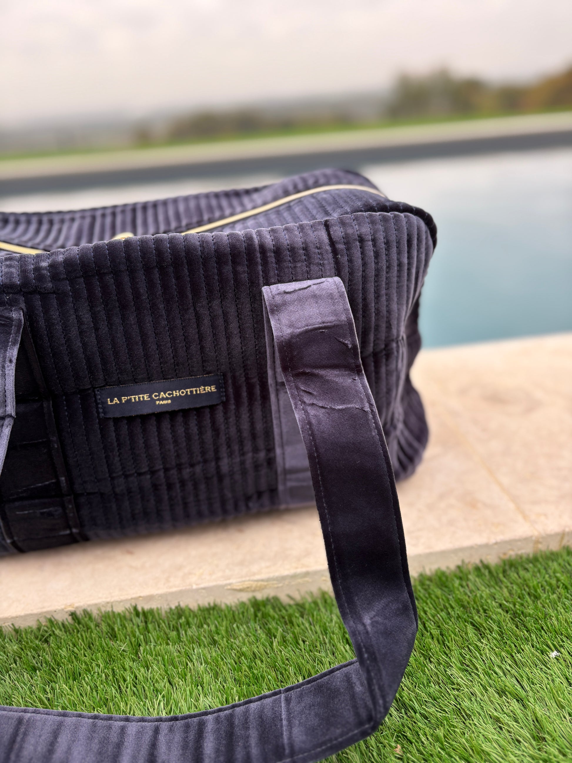 Sac week-end de voyage polochon velours matelassé bleu marine