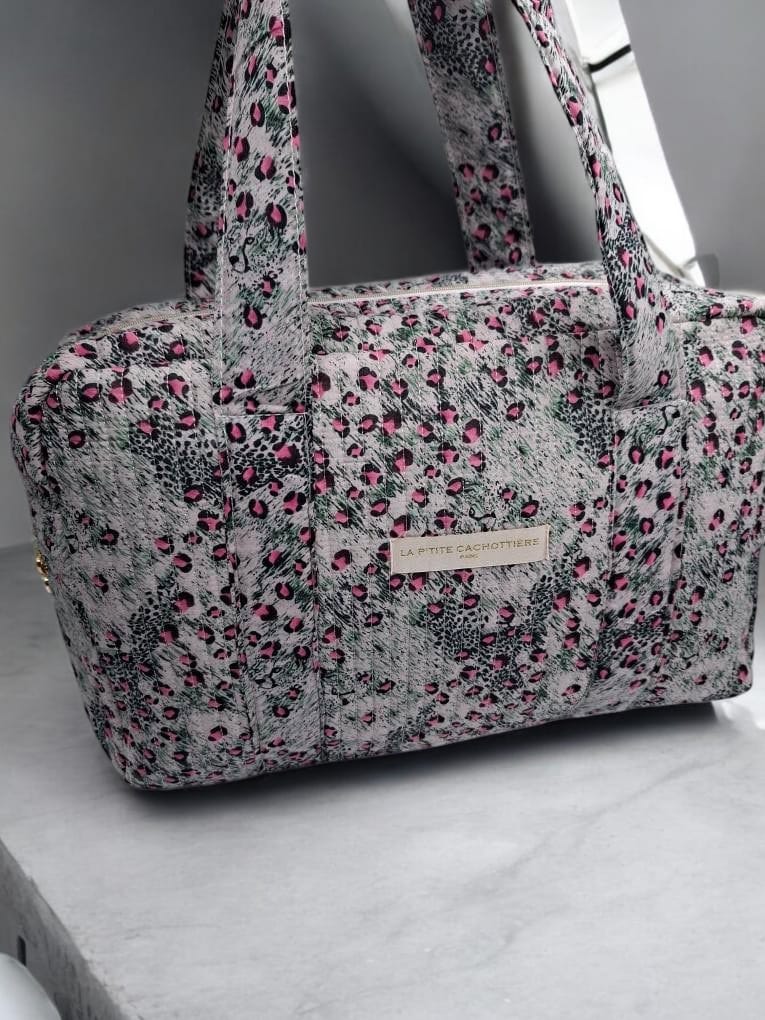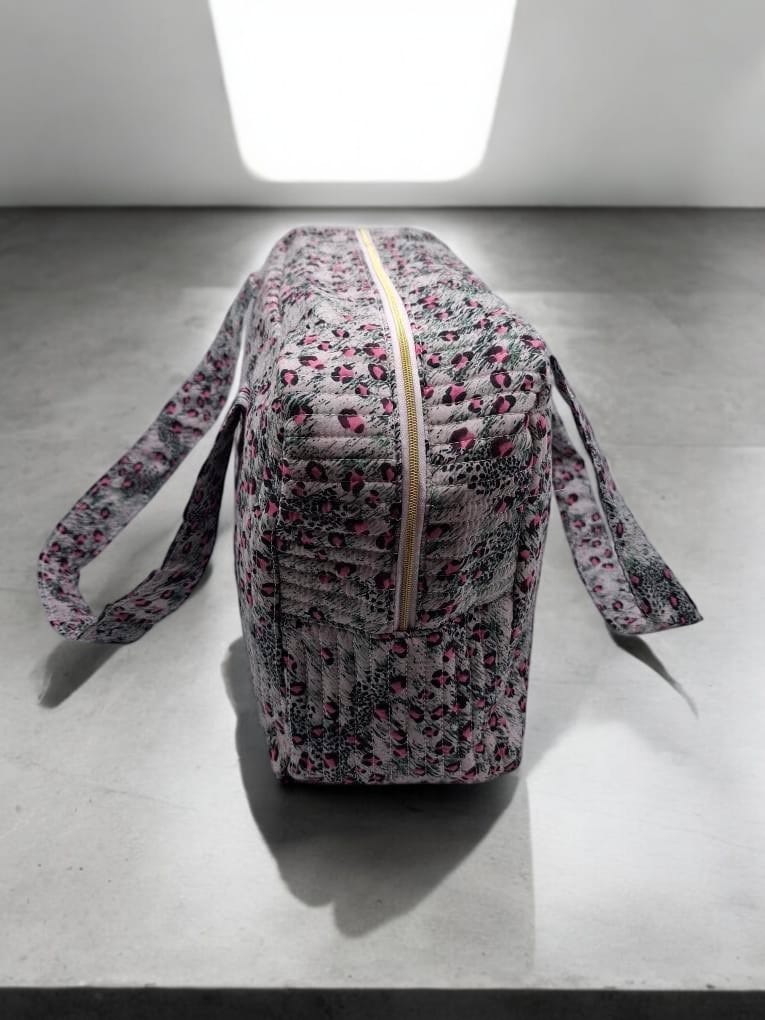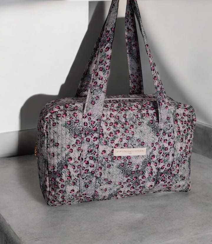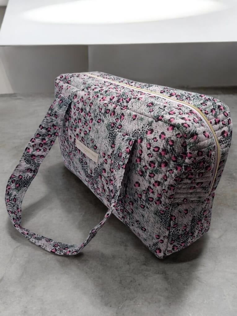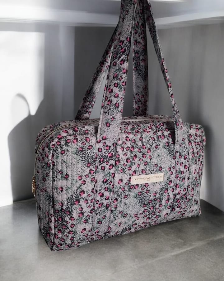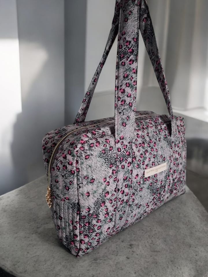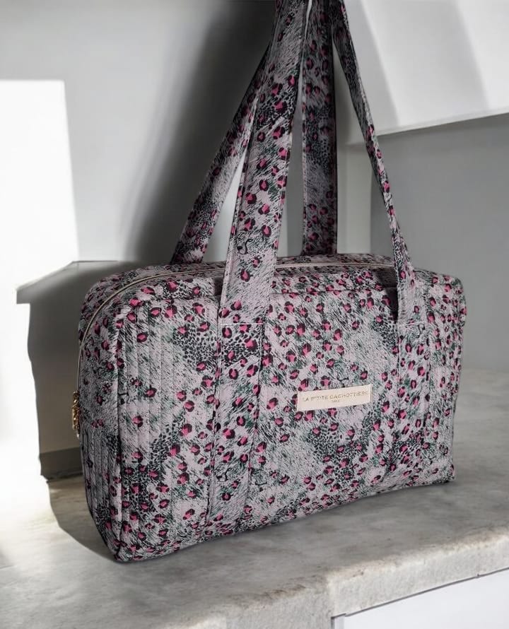 Sac week-end de voyage polochon velours matelassé fleuri animalier