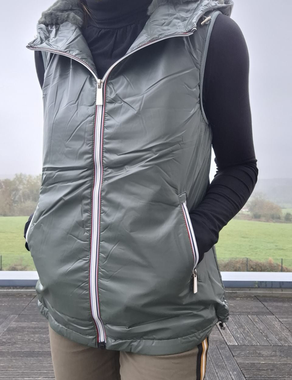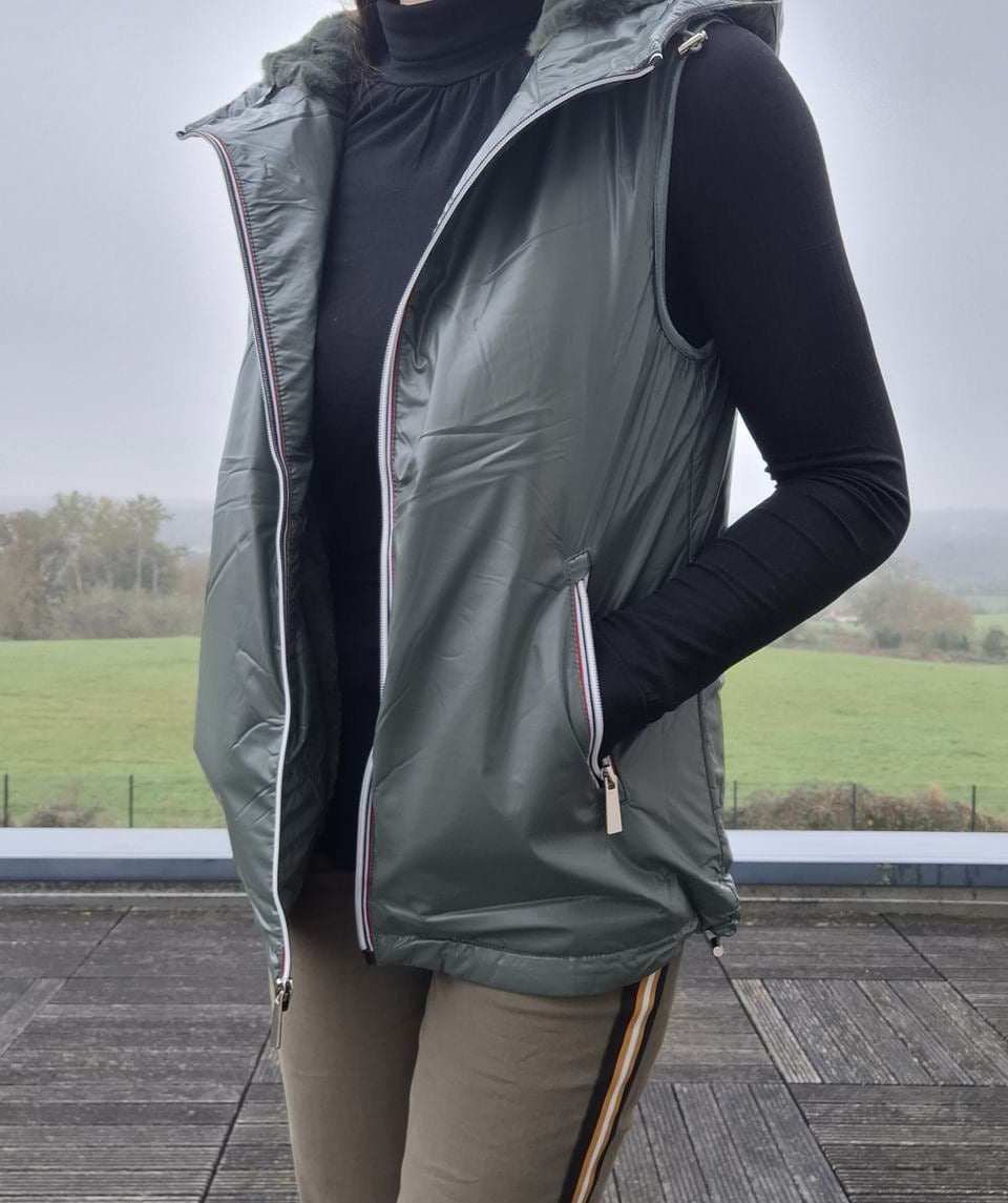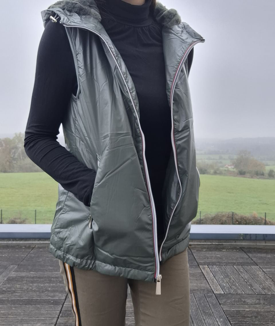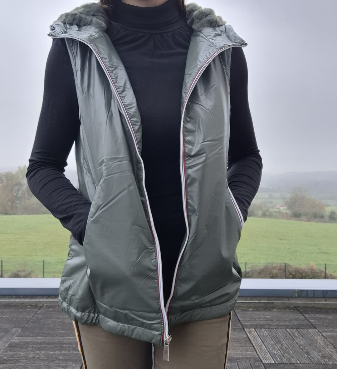 Attrait Paris - Veste sans manche fourré et imperméable avec capuche kaki