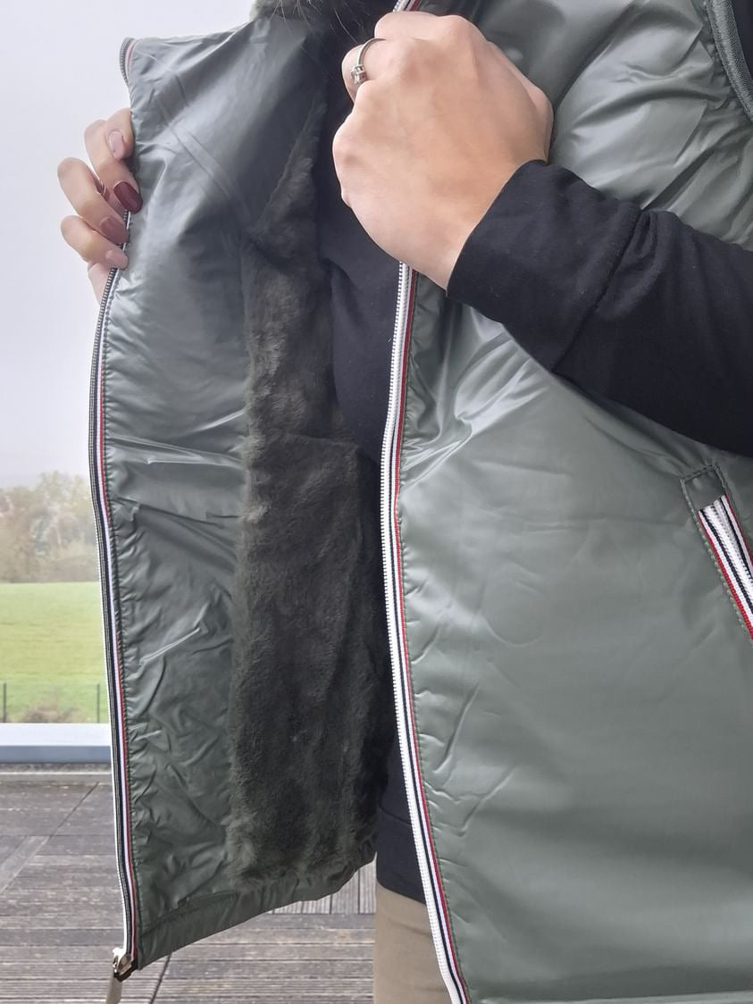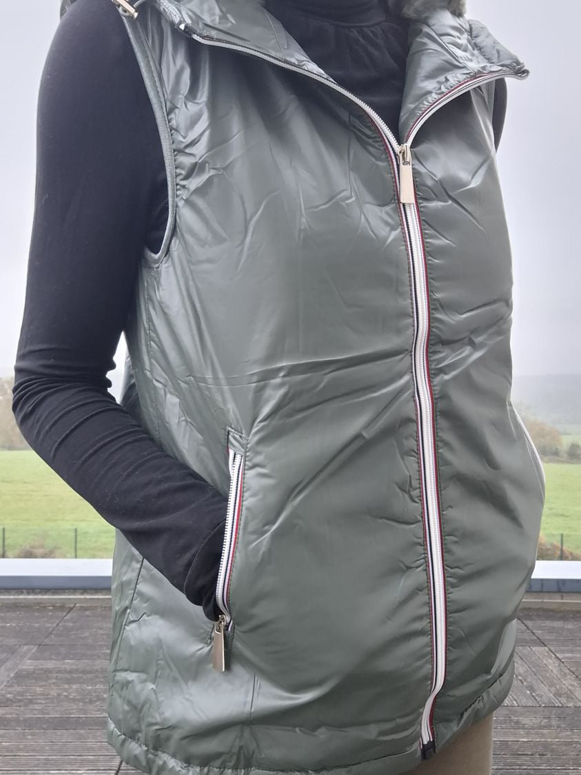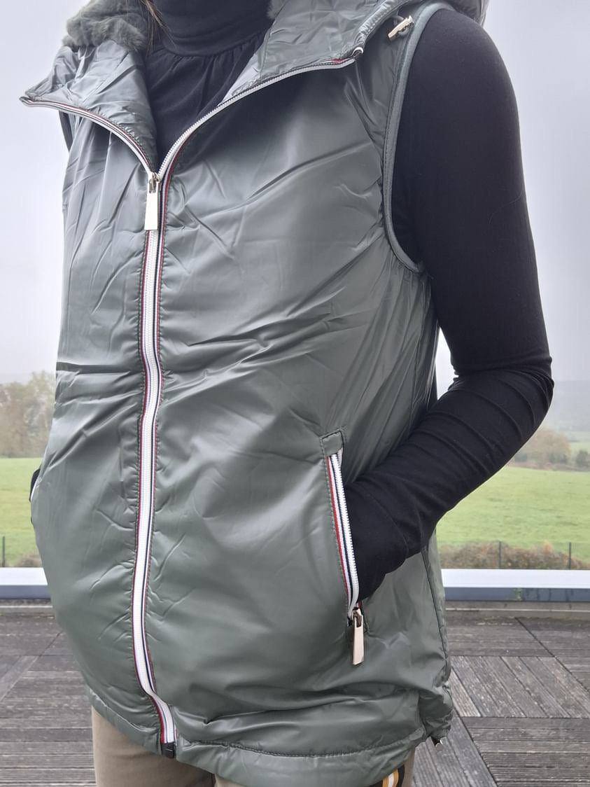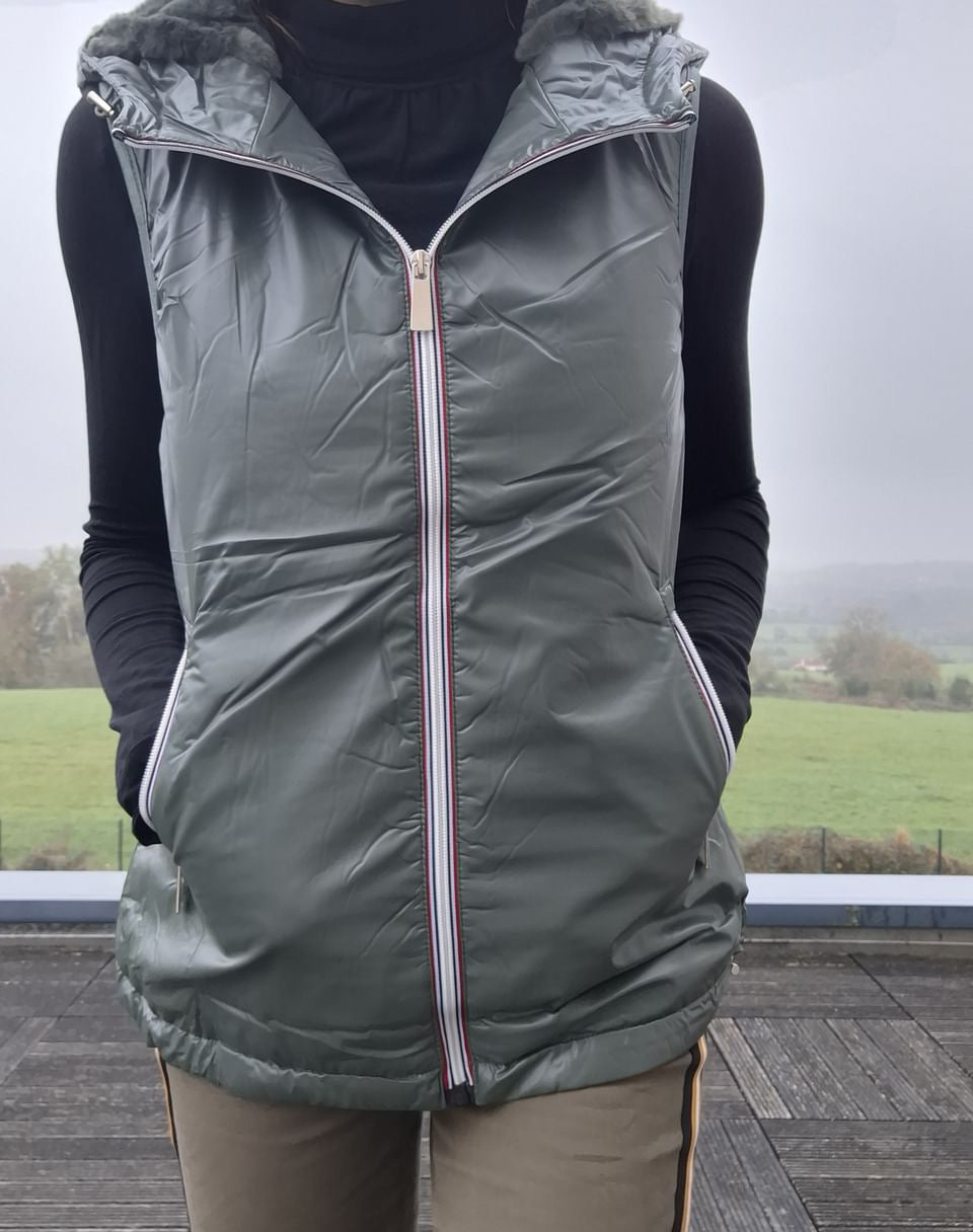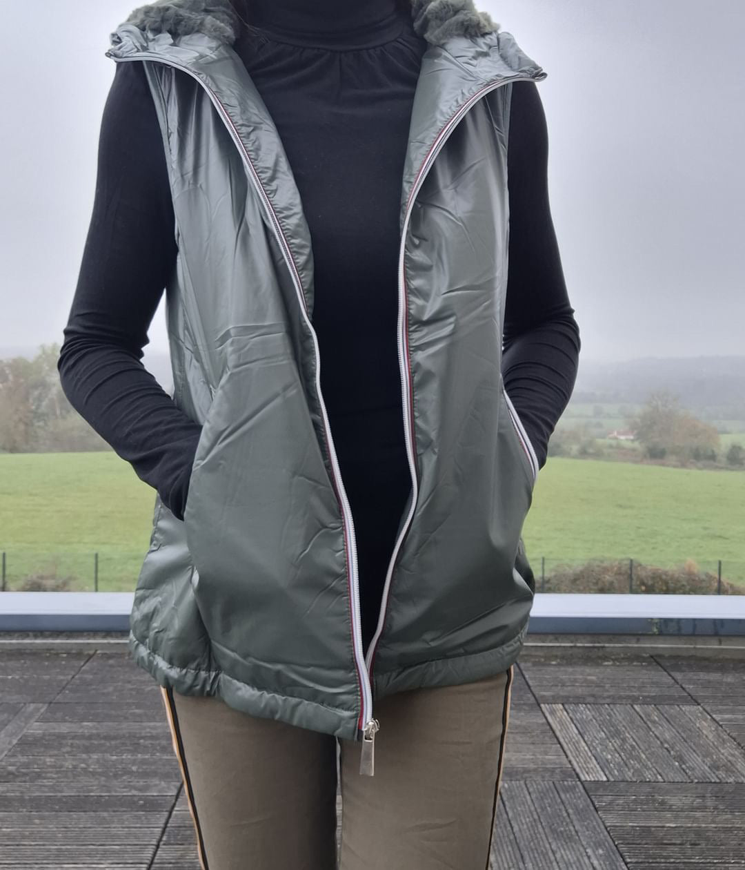 Attrait Paris - Veste sans manche fourré et imperméable avec capuche kaki