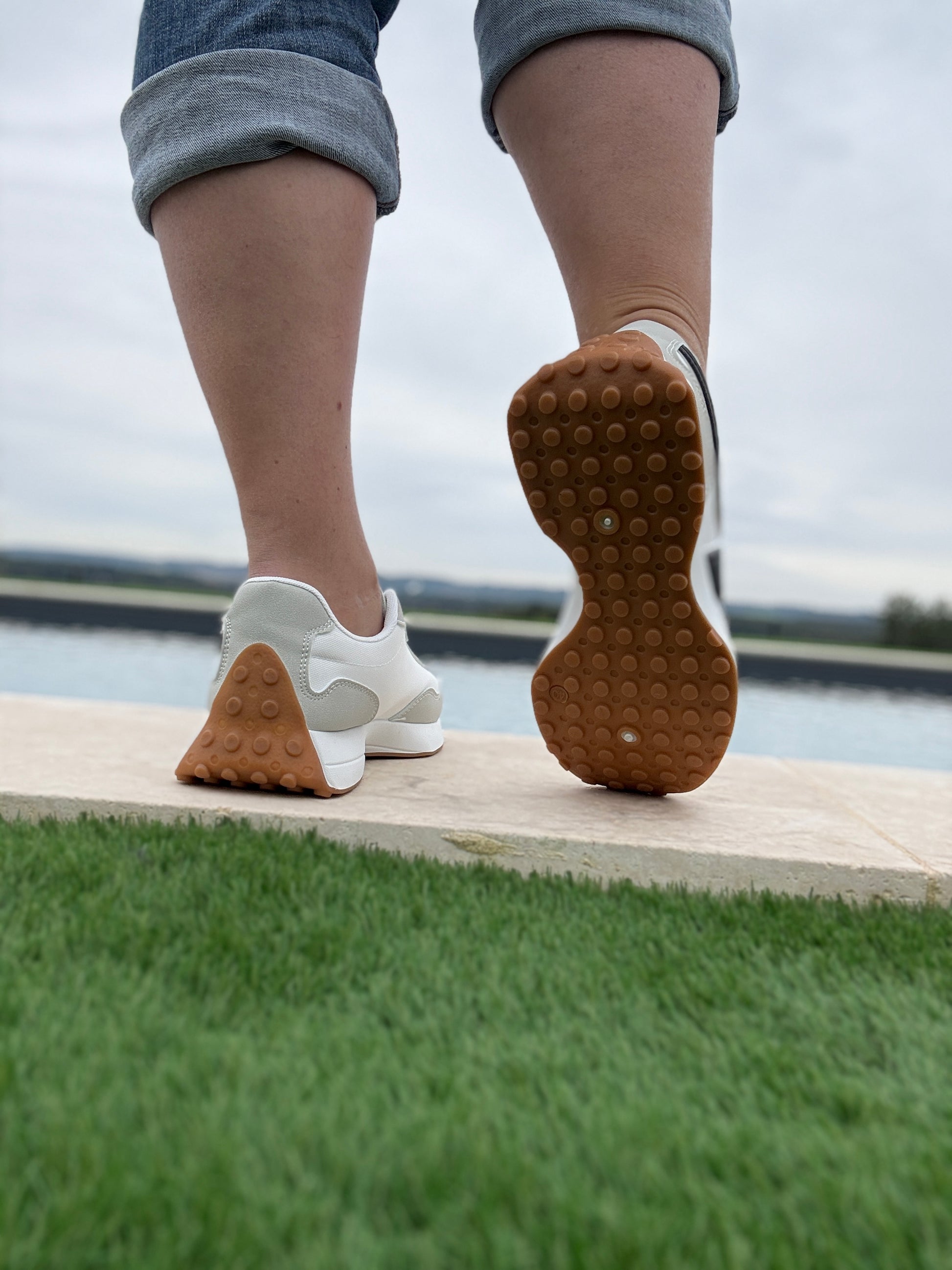 Les lacets blancs contrastent agréablement avec le reste de la chaussure, ajoutant une touche de fraîcheur.