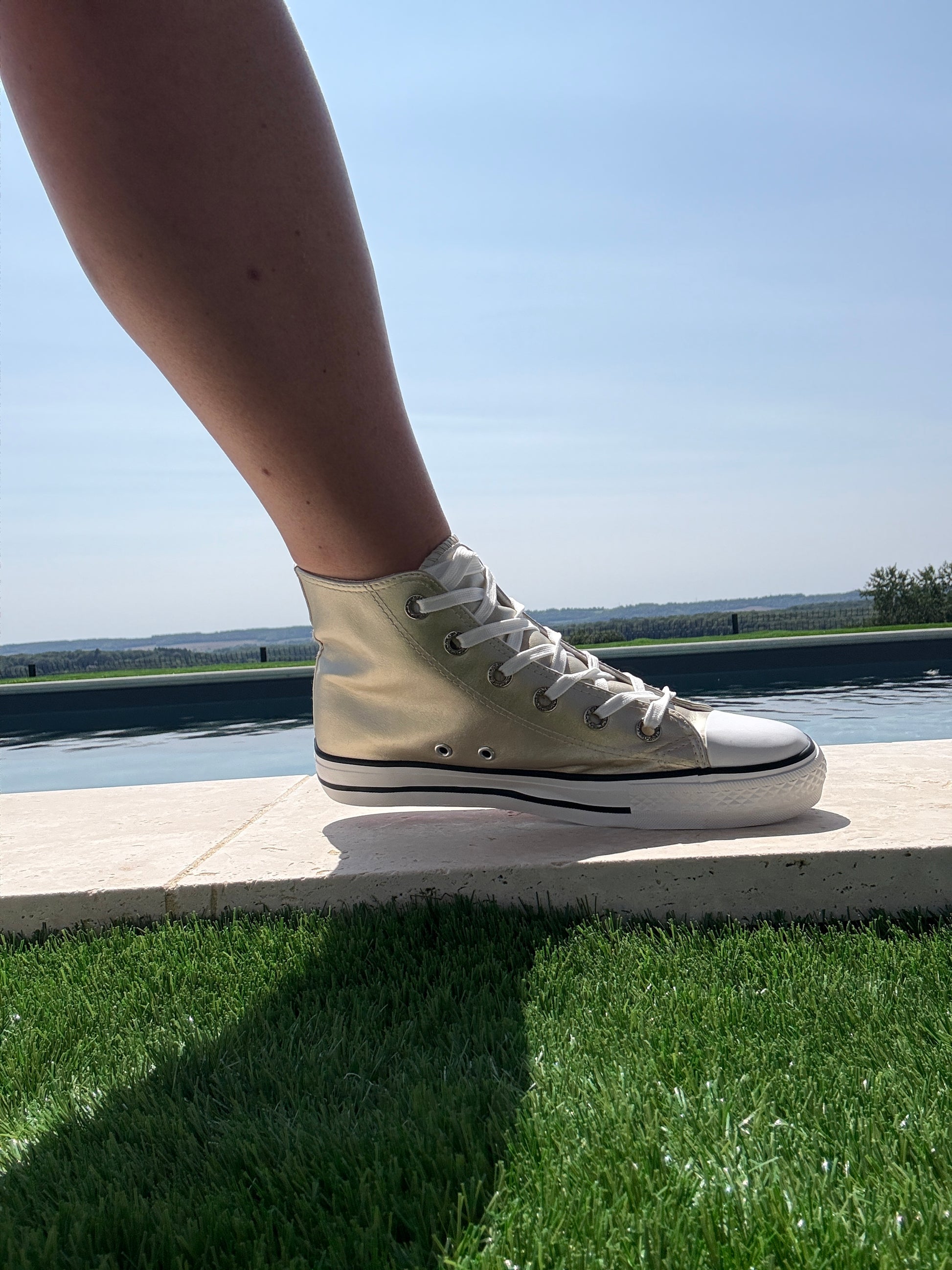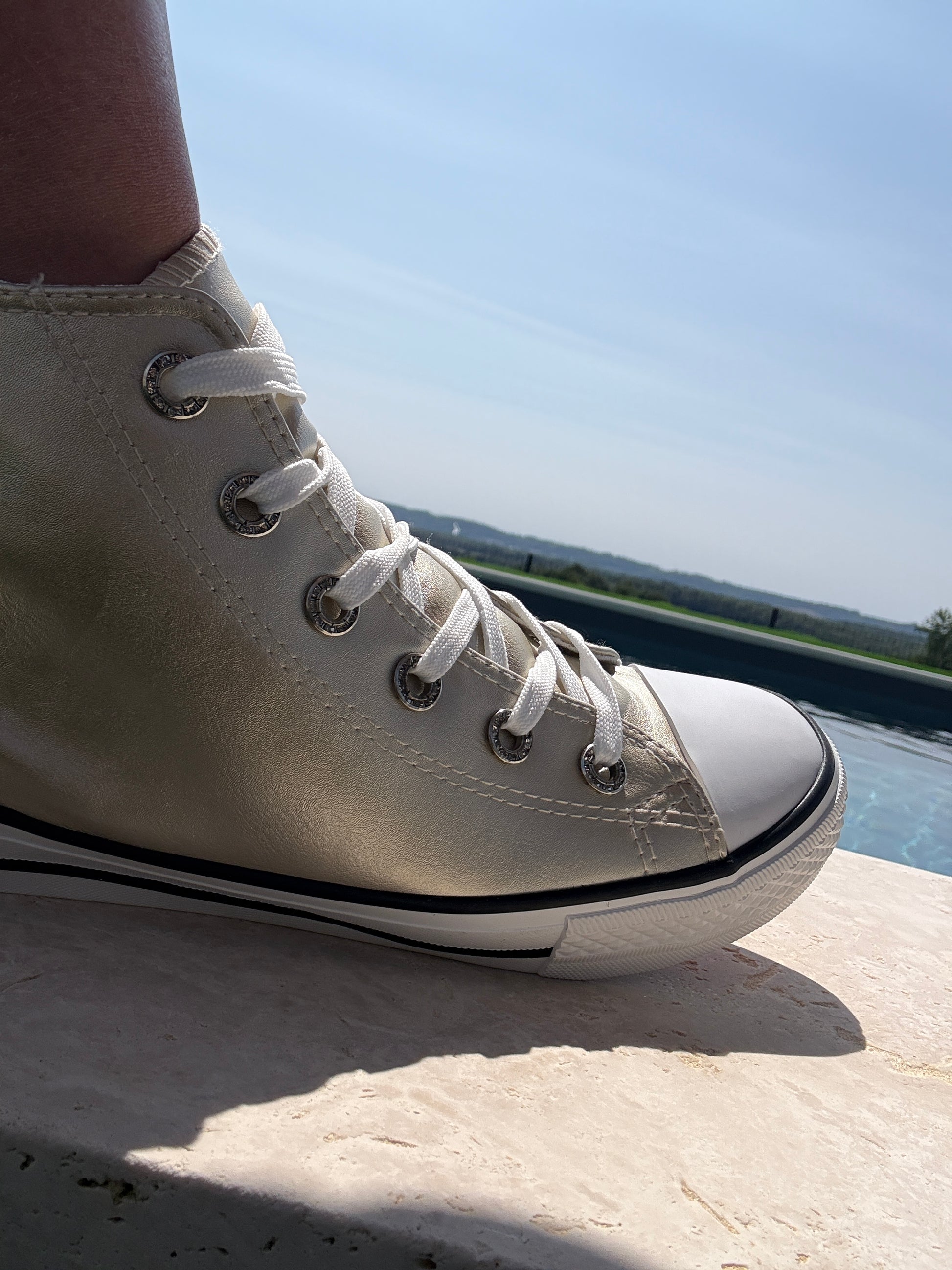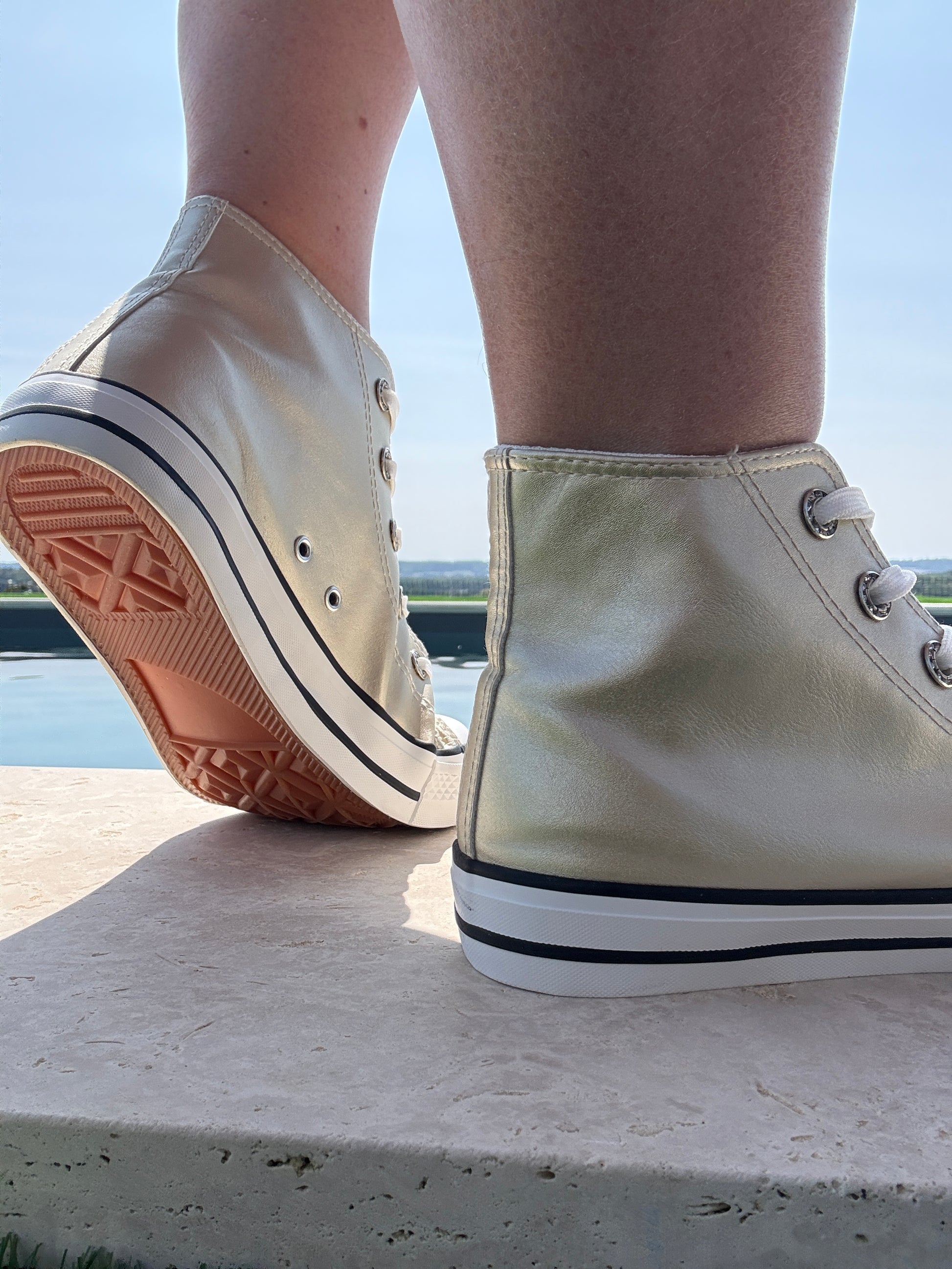 Les baskets montantes dorées et blanches déclaration de style et de confort.