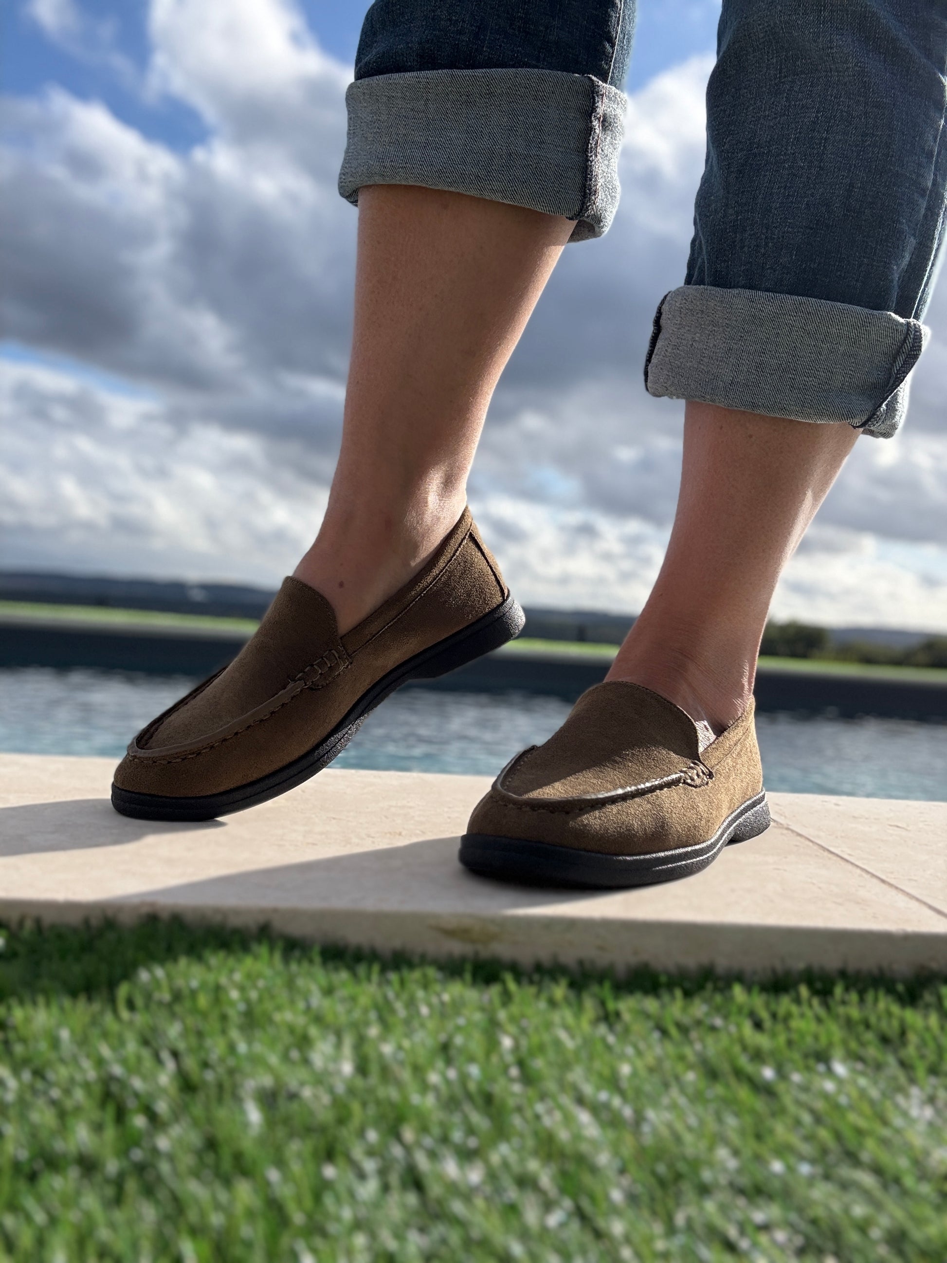Chaussures mocassins bateau toucher daim vert kaki