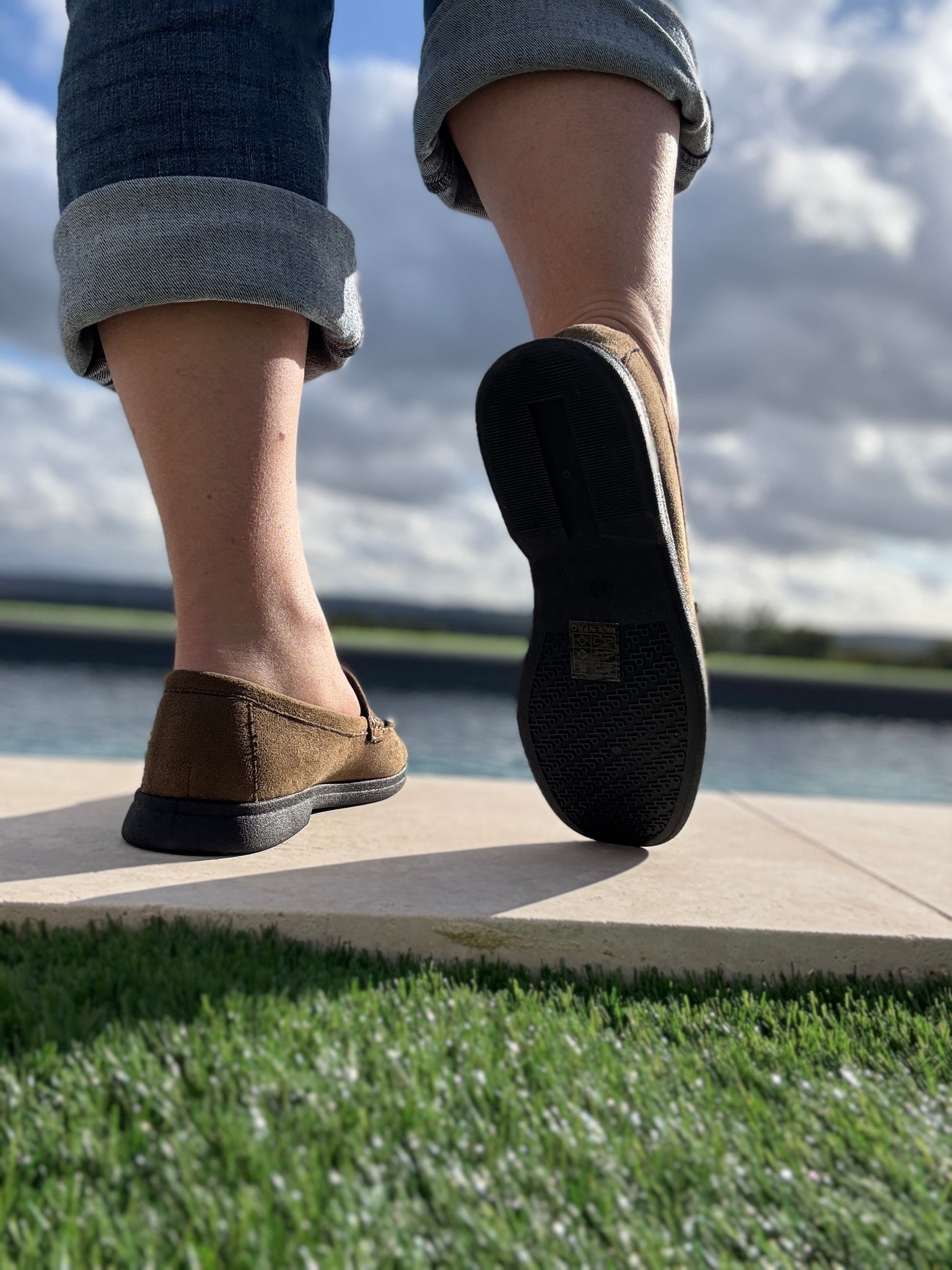 Les mocassins présentent une teinte vert kaki, ajoutant une touche de couleur subtile.