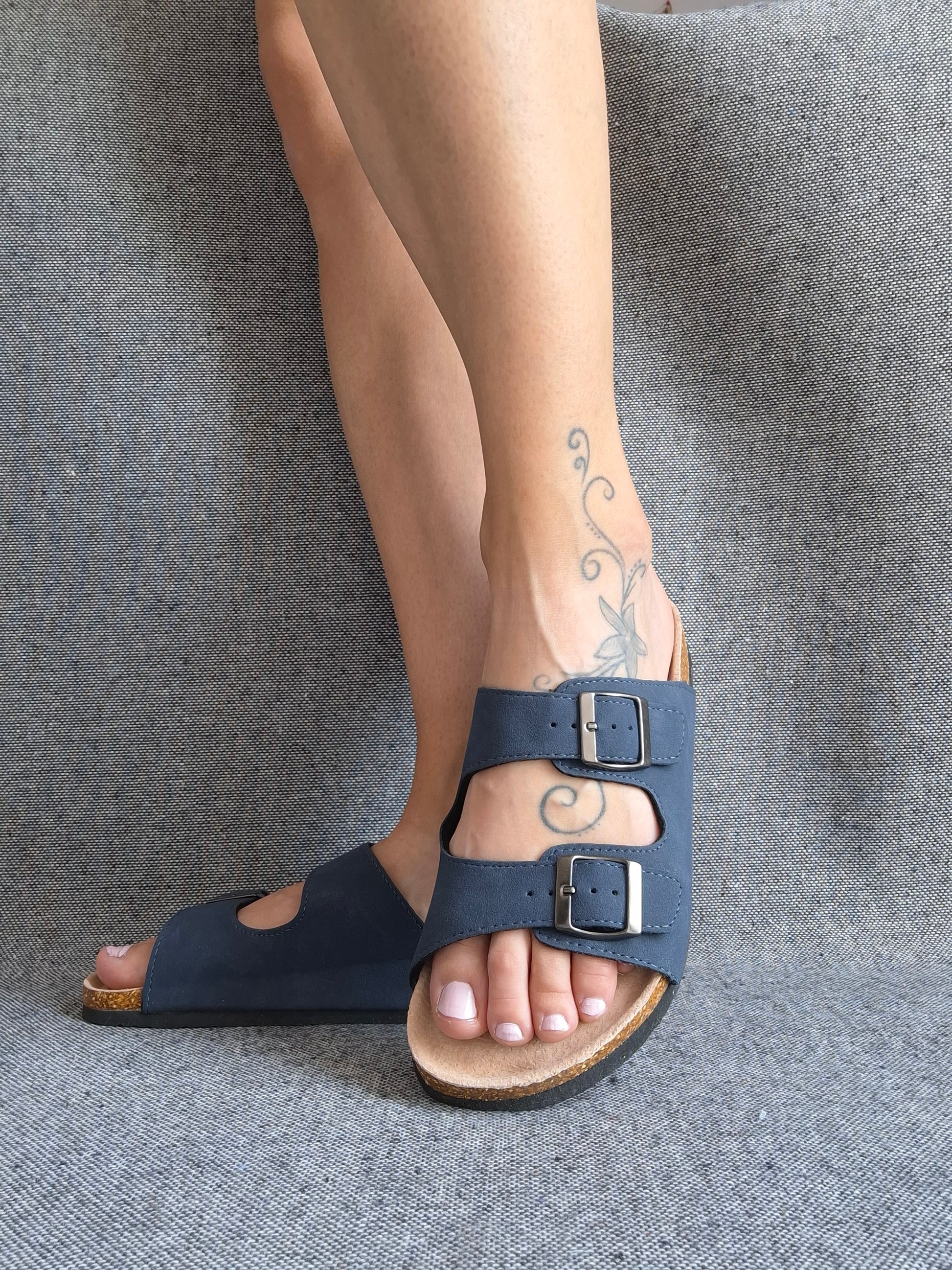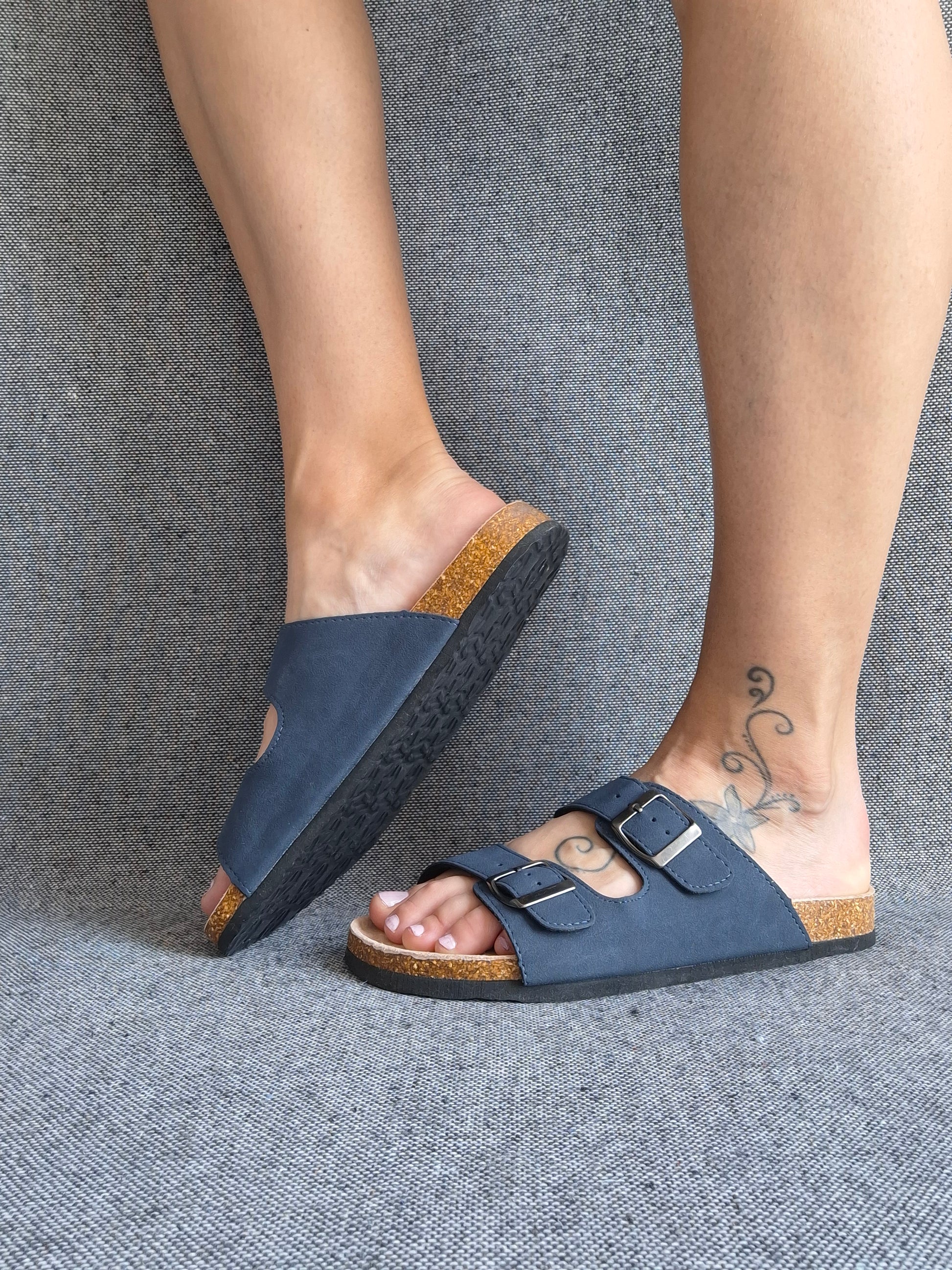 Chaussures sandales intérieur cuir bleu marine style Birk