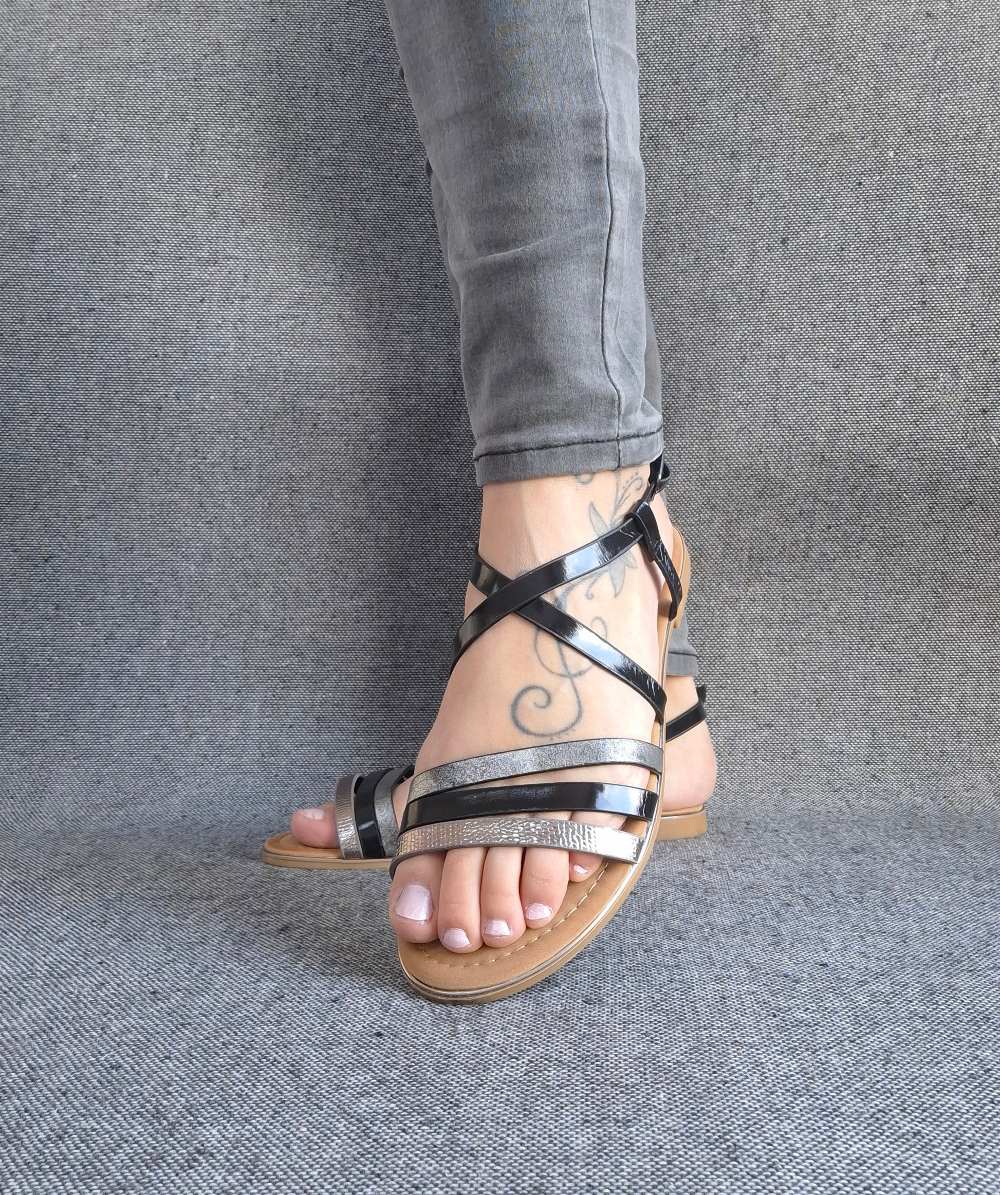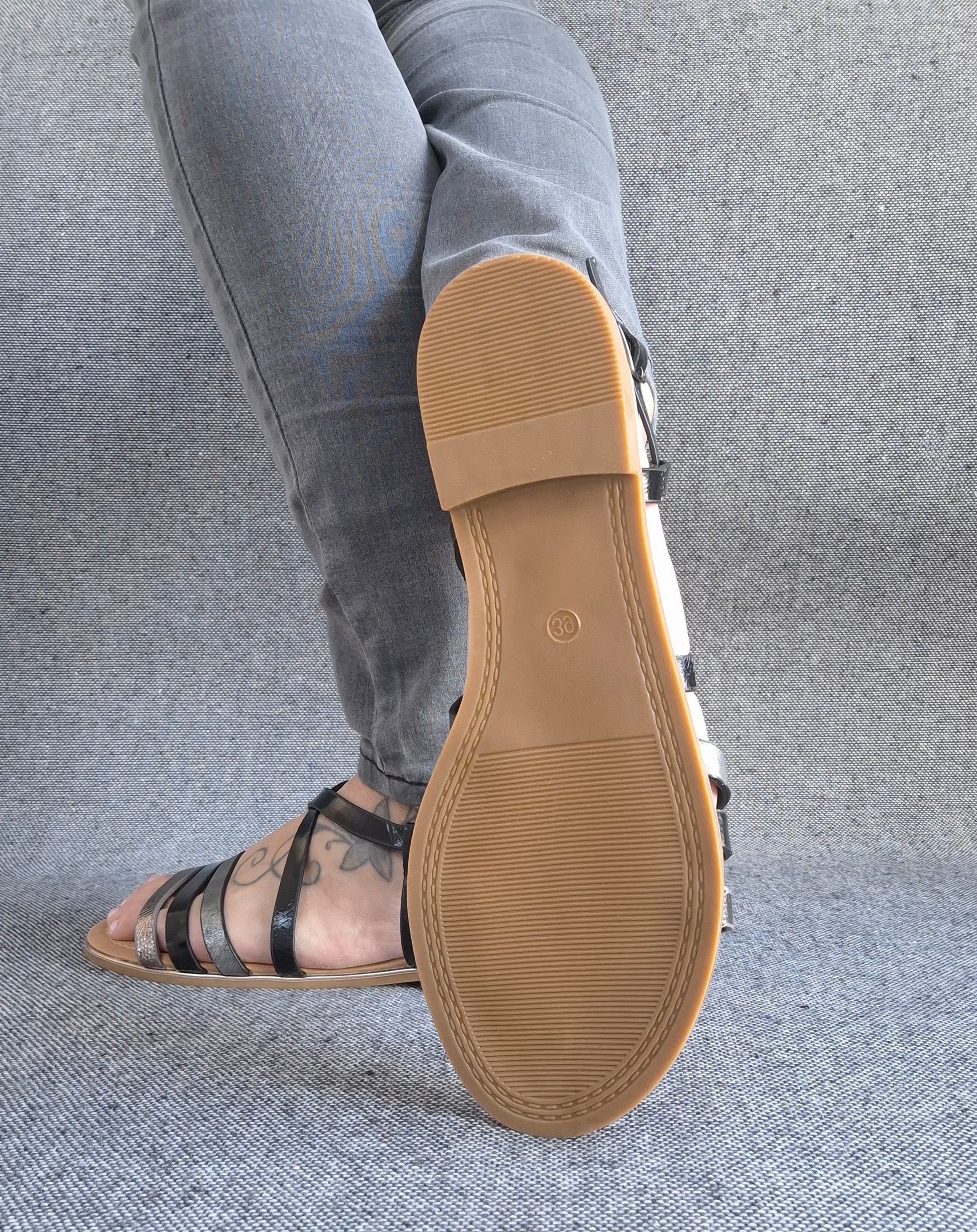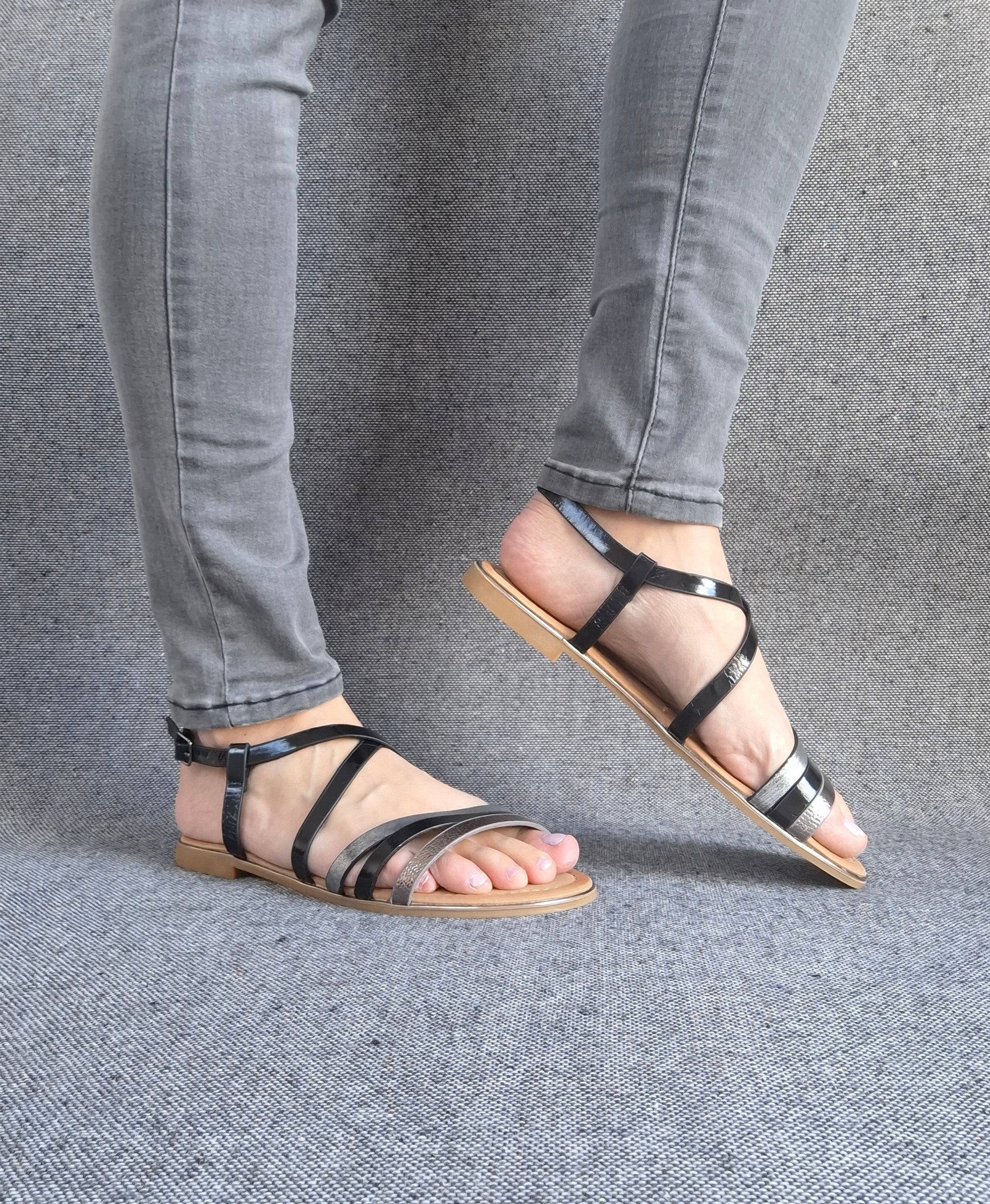 Les sandales plates se caractérisent par une silhouette raffinée et des teintes gaies.