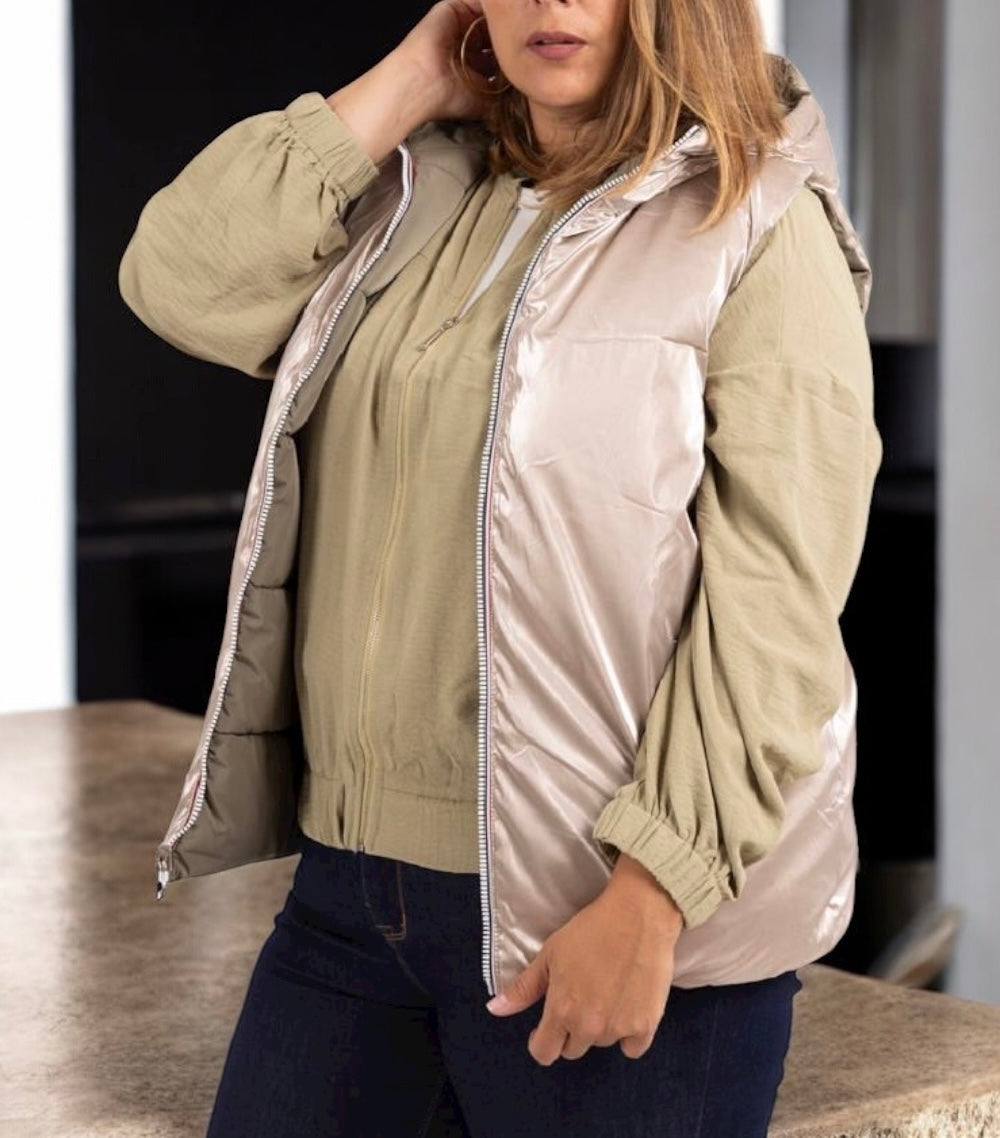 Doudoune matelassé sans manches mat kaki réversible dorée - Curvy