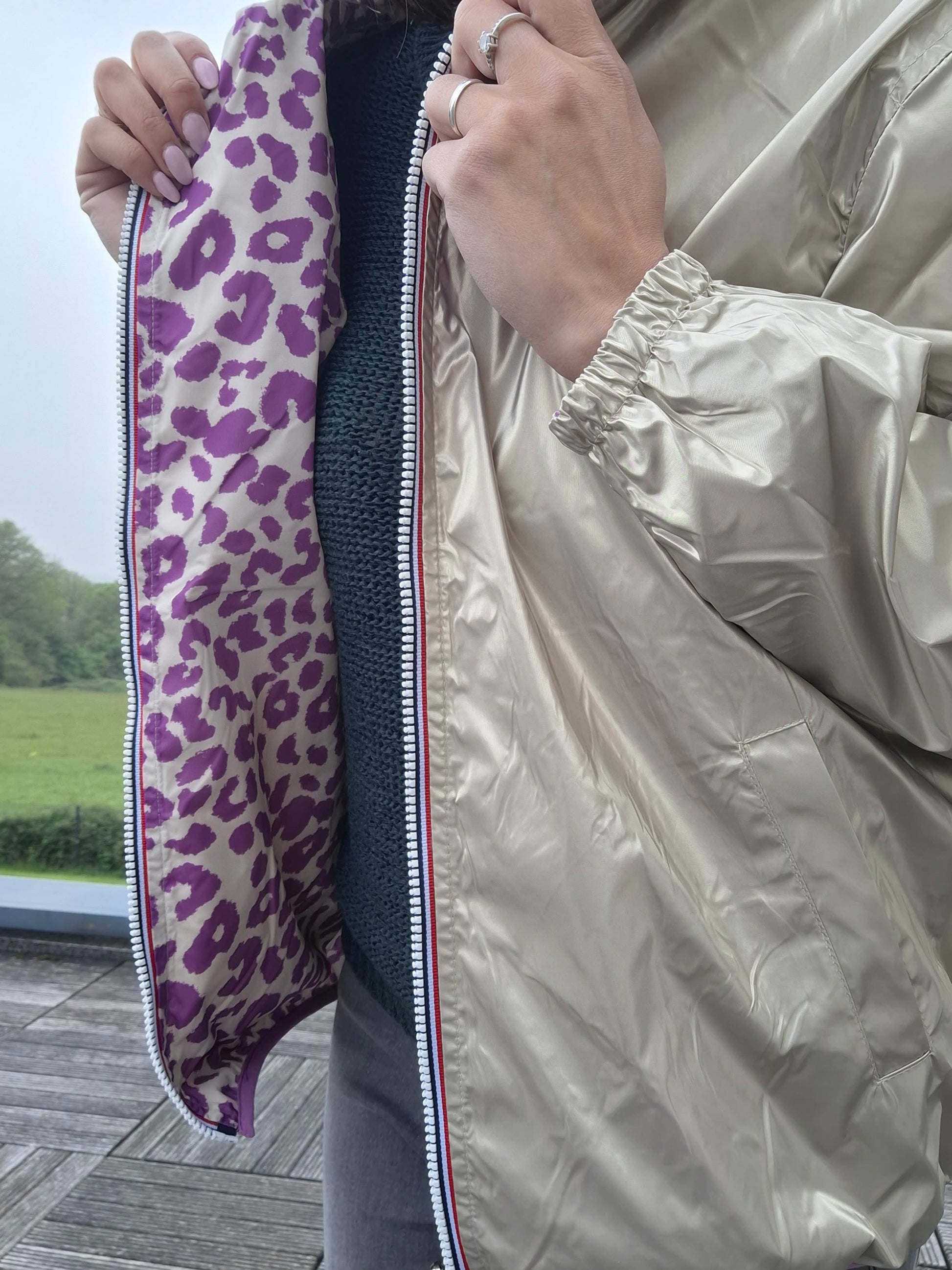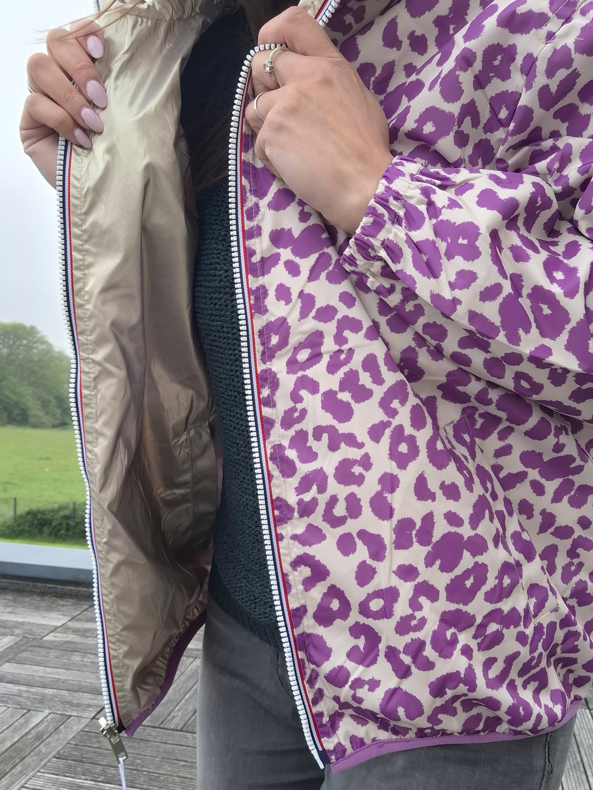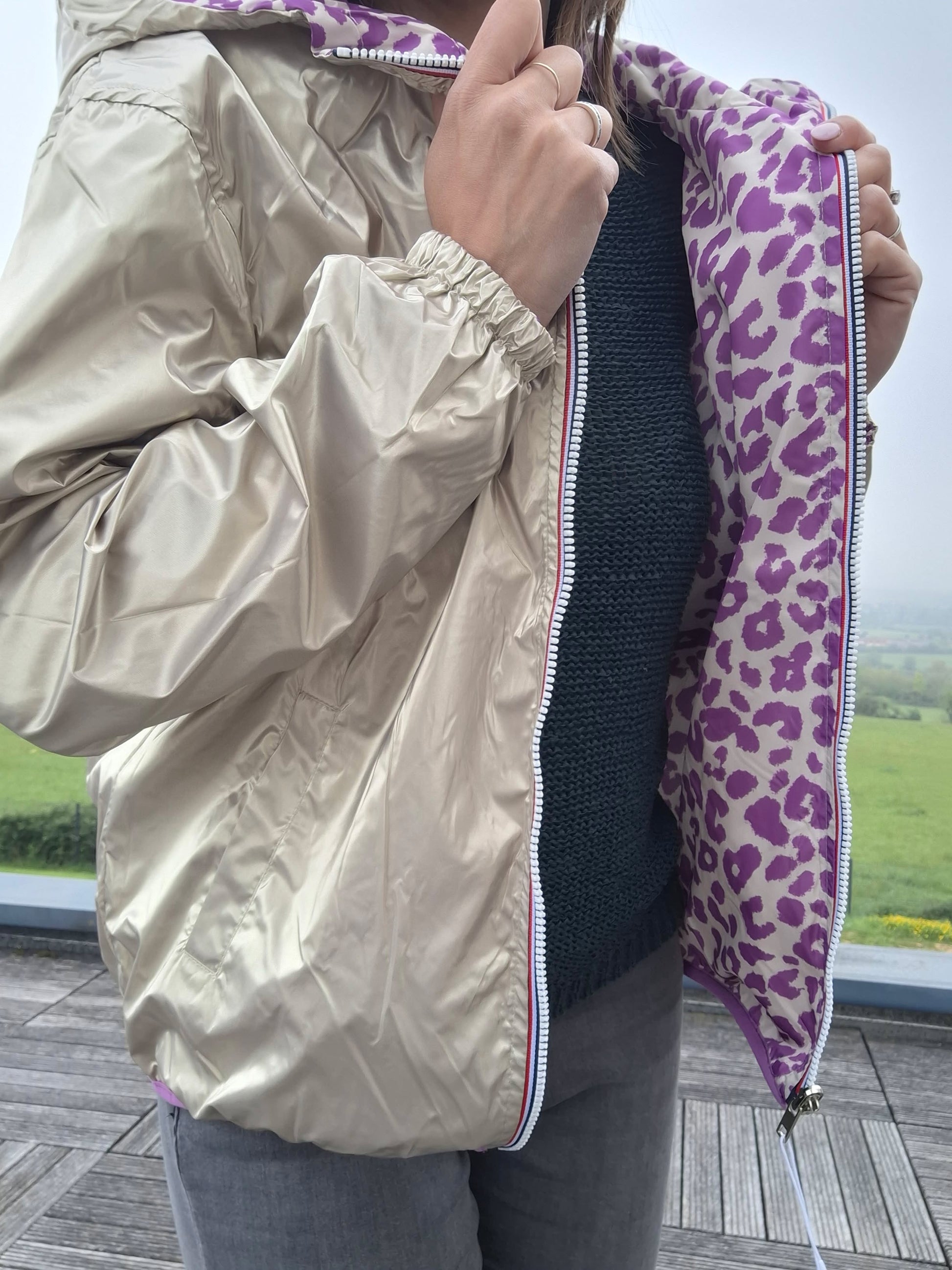 Escandelle - Parka imperméable courte Léopard violet réversible doré