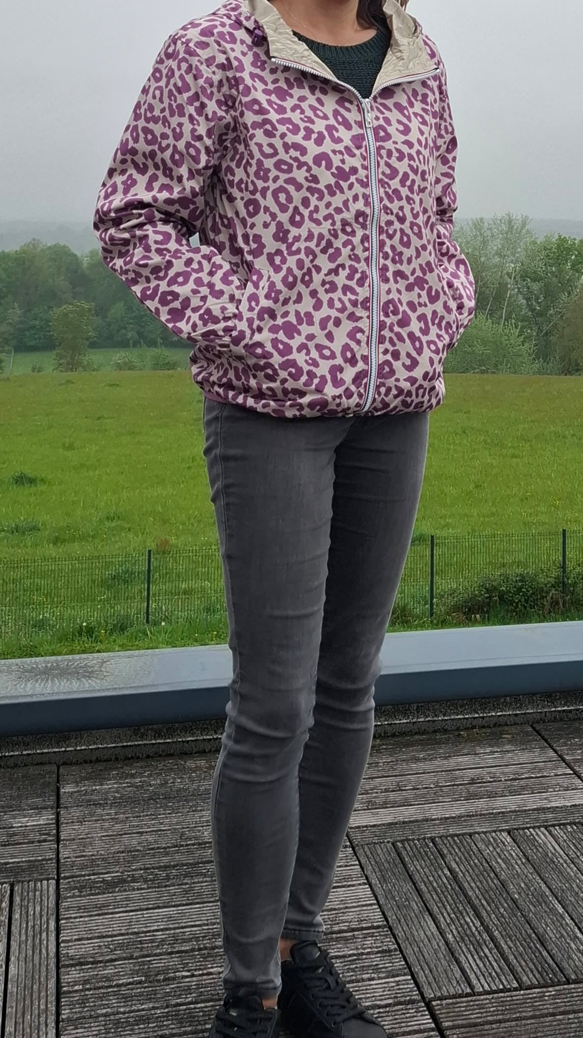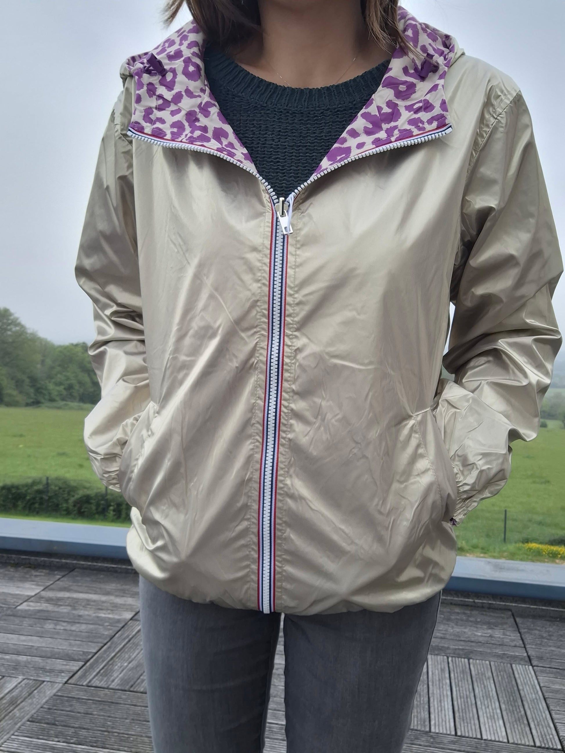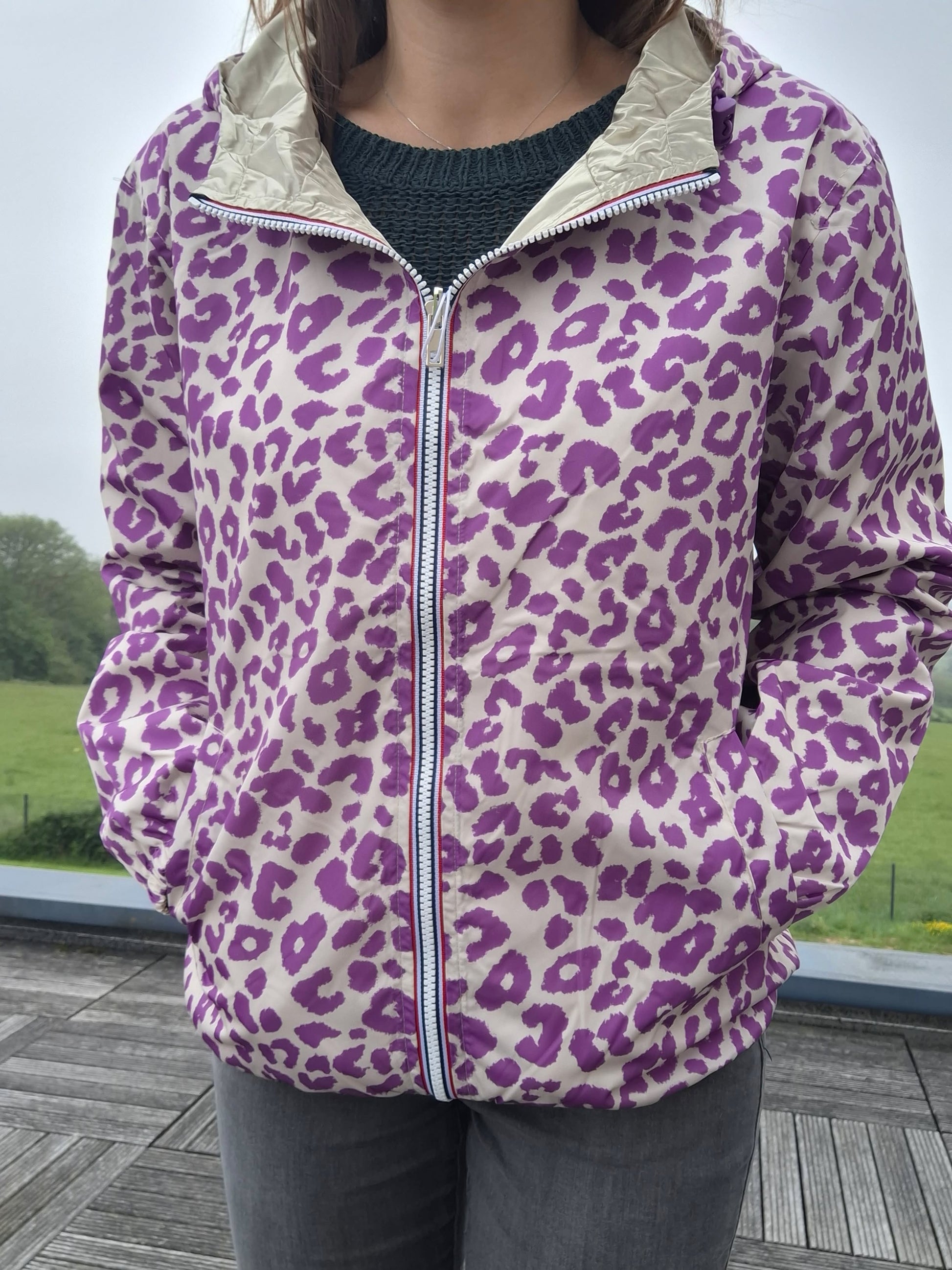 Escandelle - Parka imperméable courte Léopard violet réversible doré