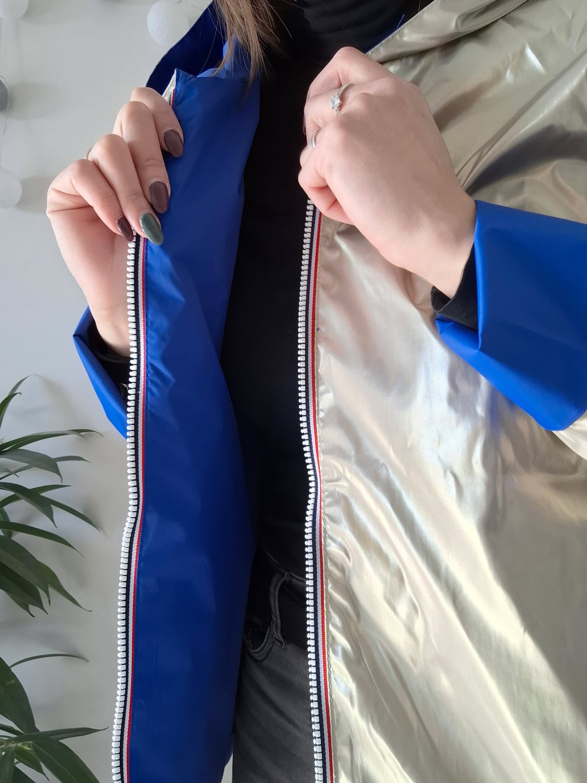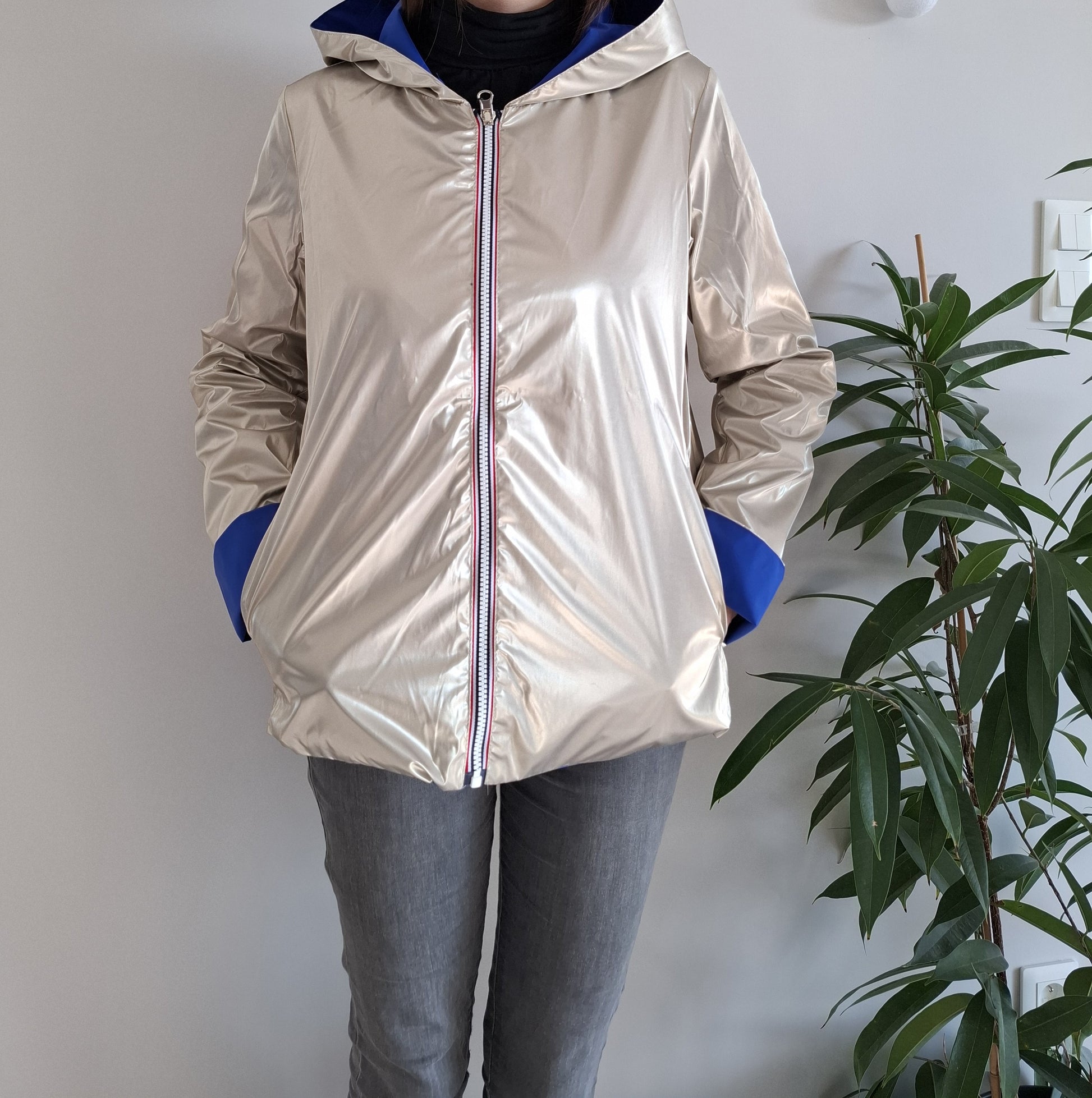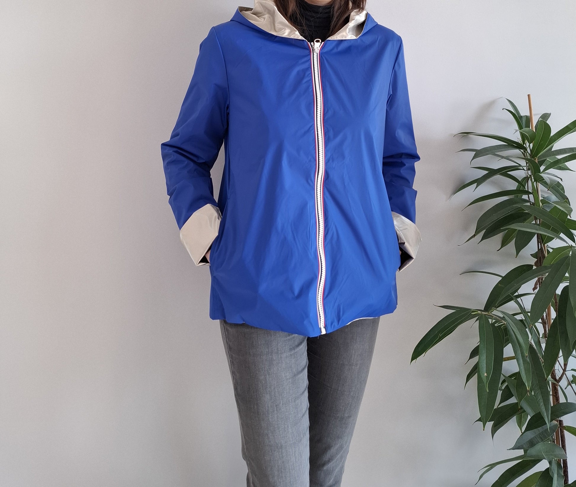 Laura Jo - Imperméable réversible court sans garnissage ouate couleur bleu électrique doré