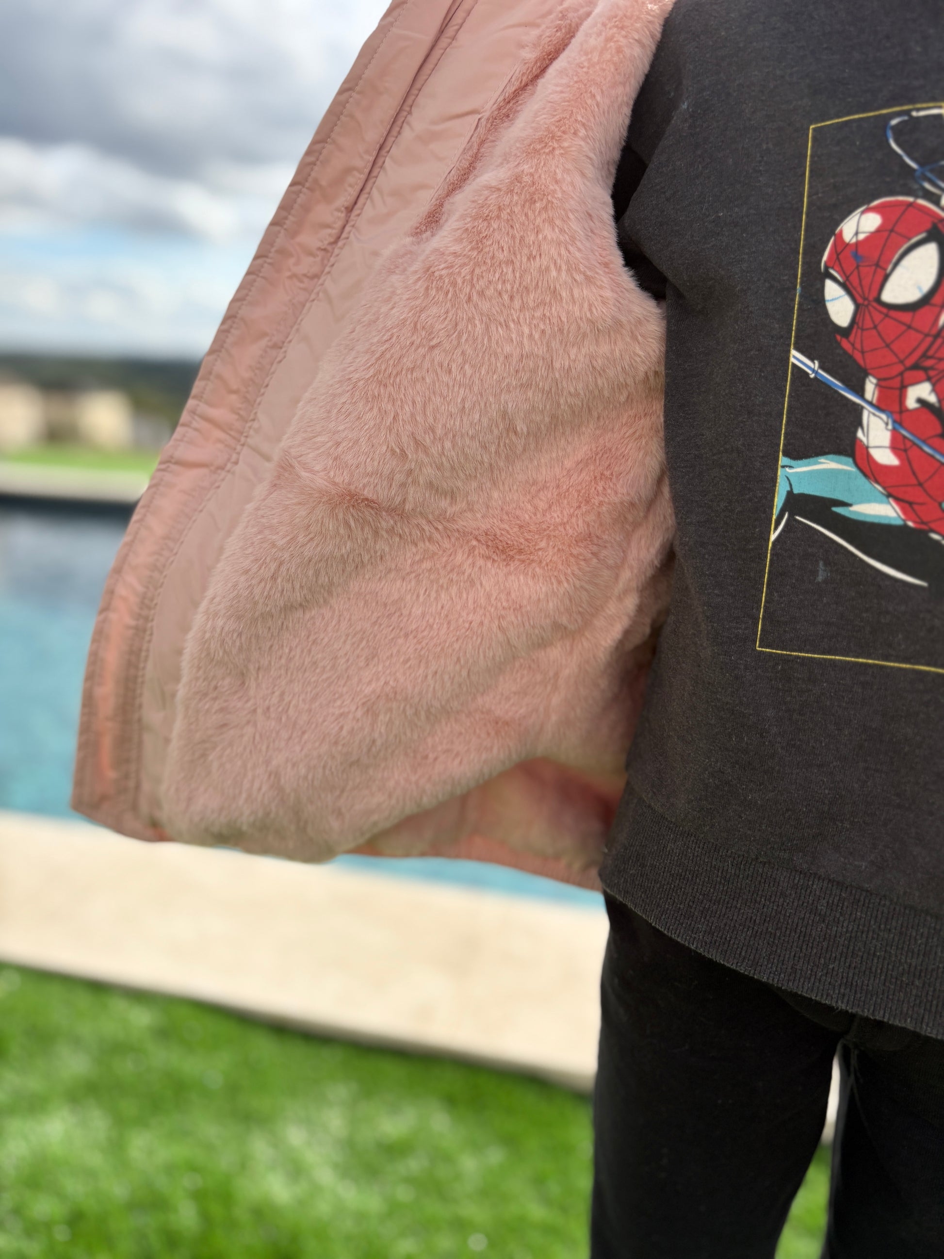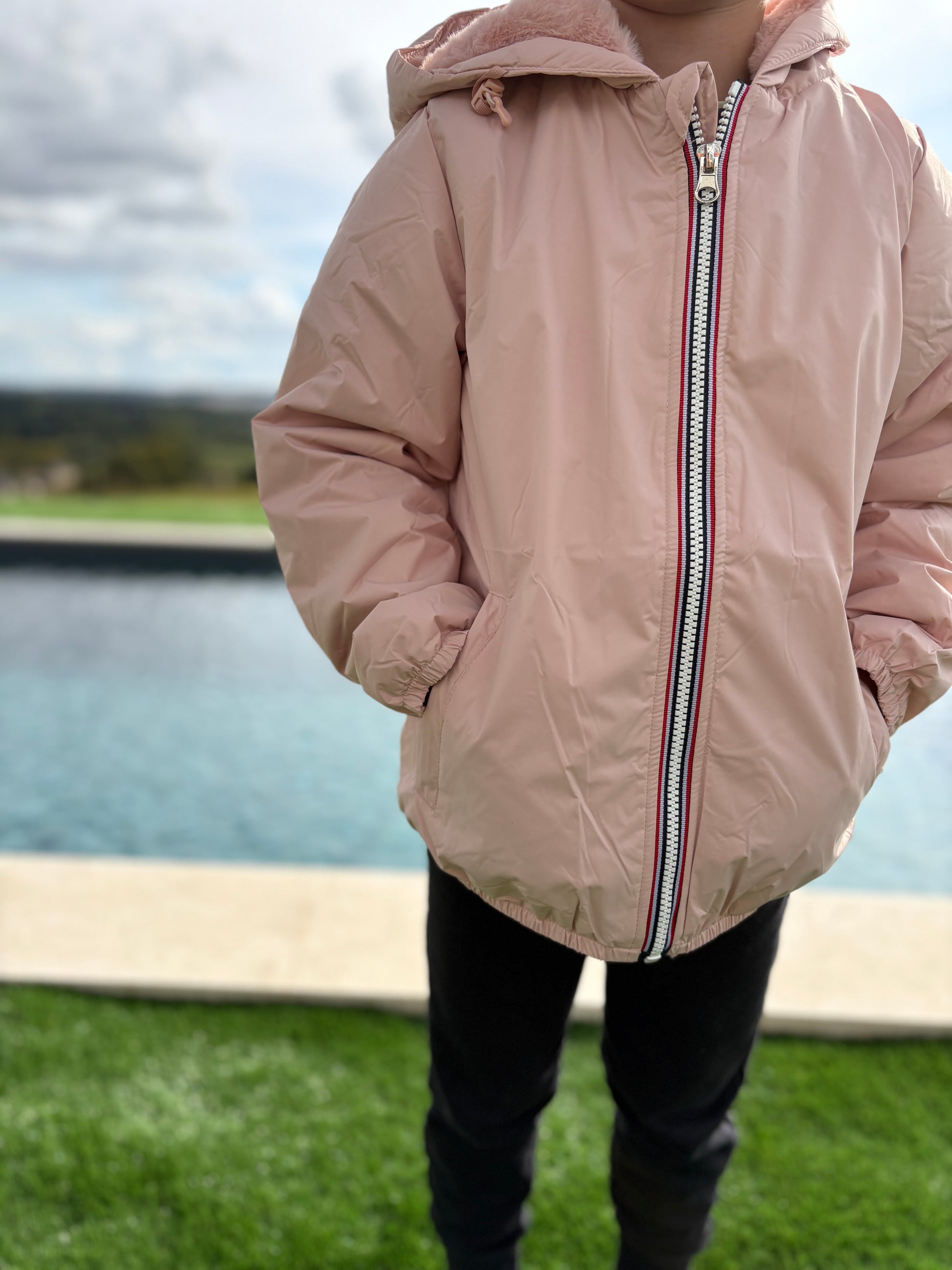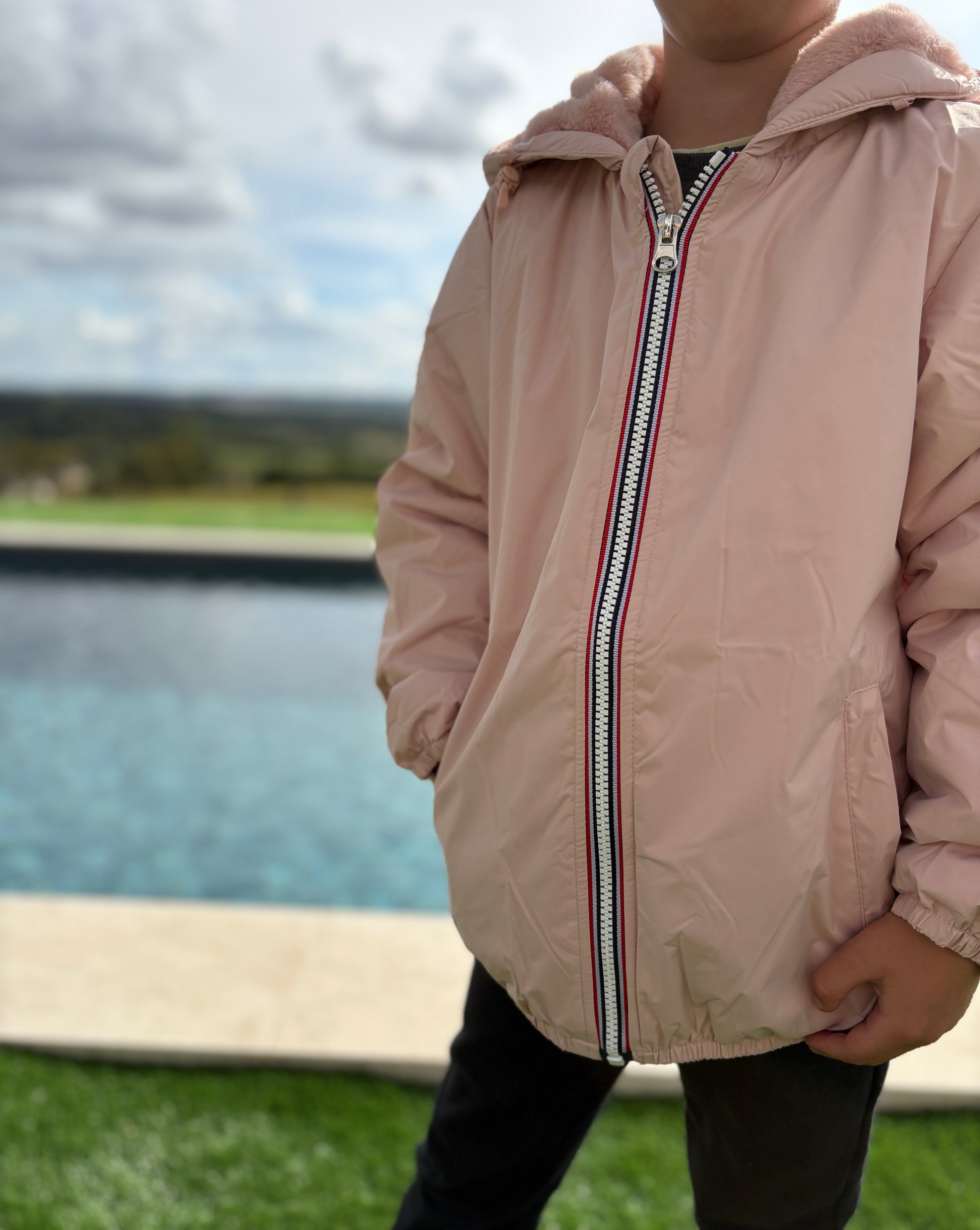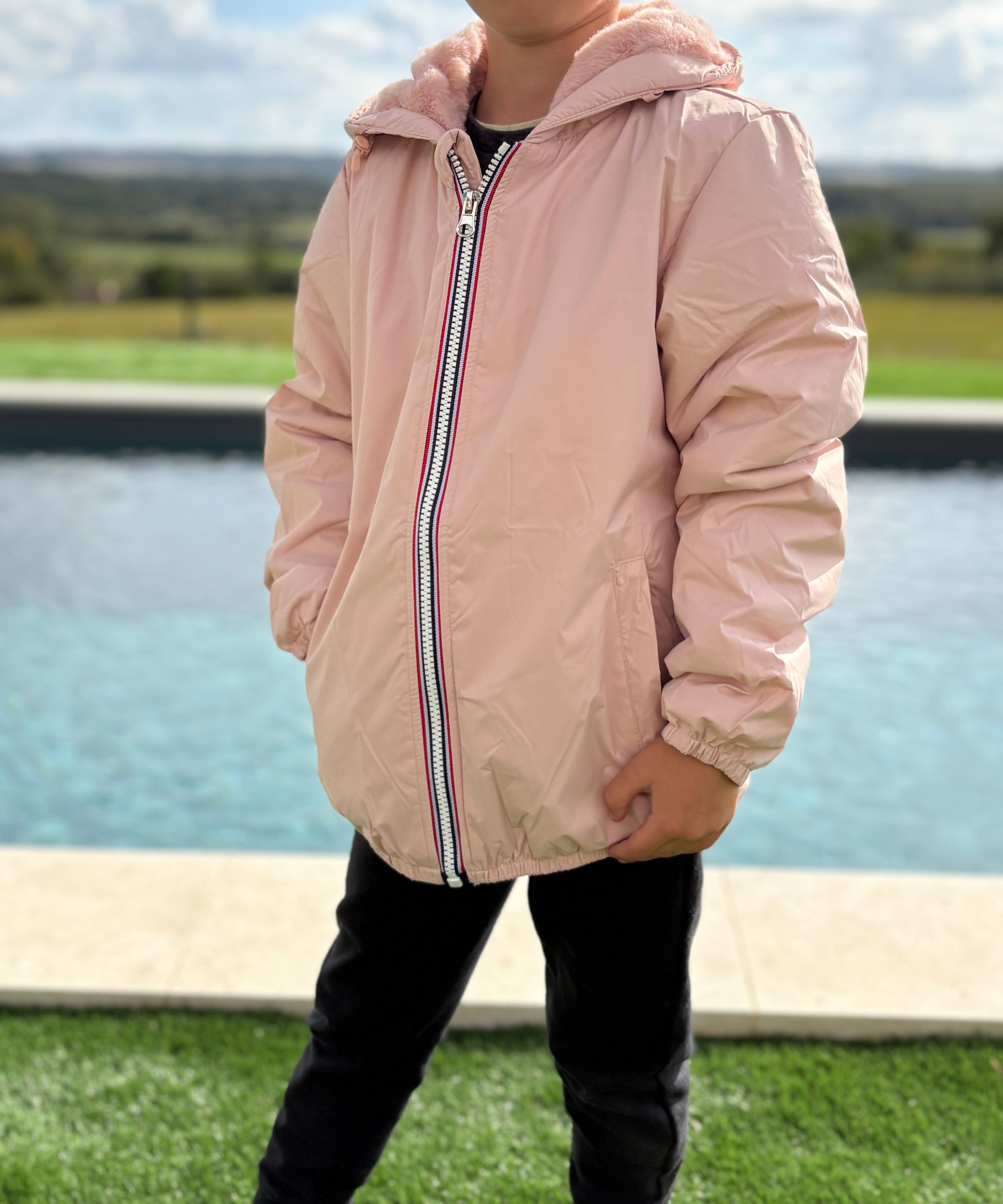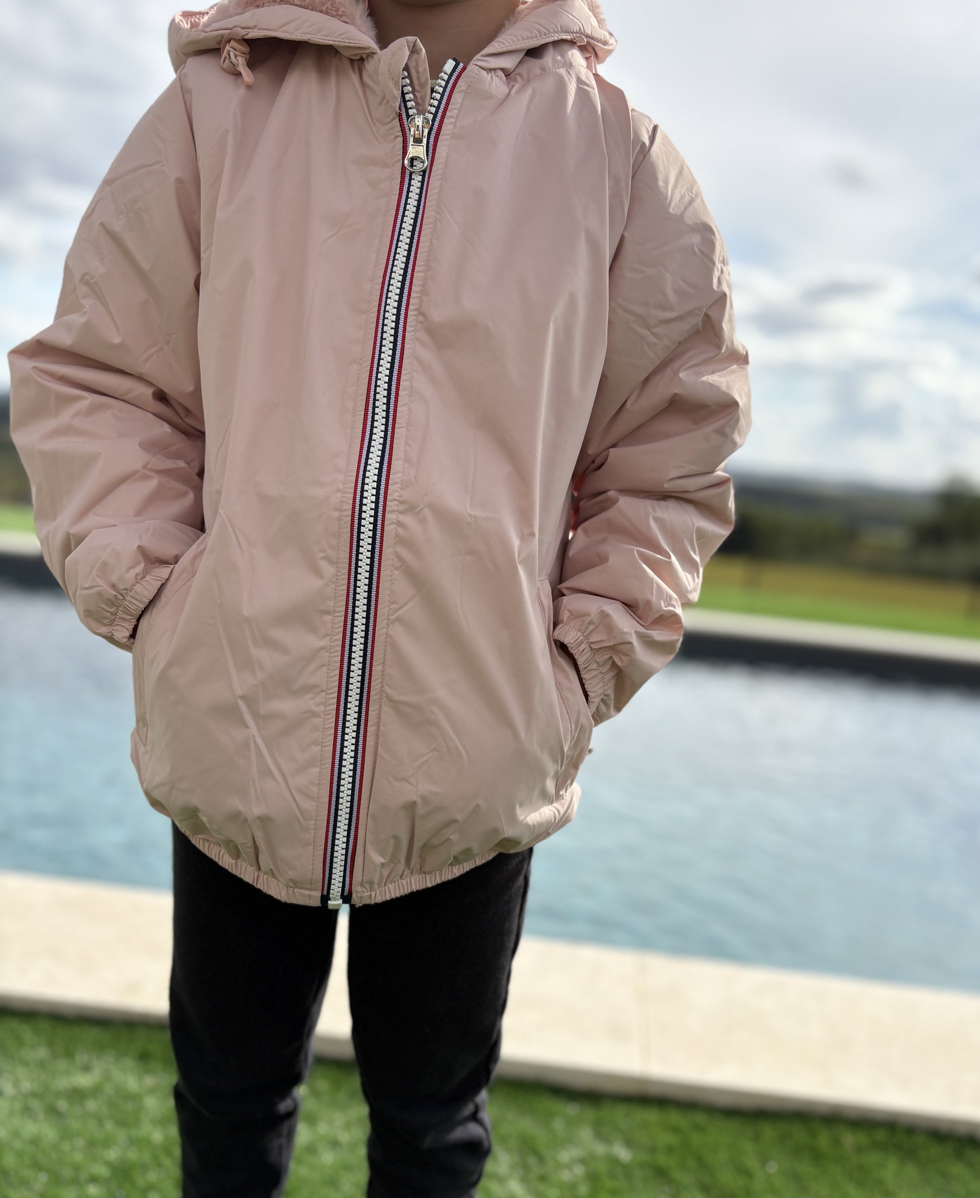 Laura Jo - ENFANT (Fille) Imperméable court doublé en fausse fourrure rose