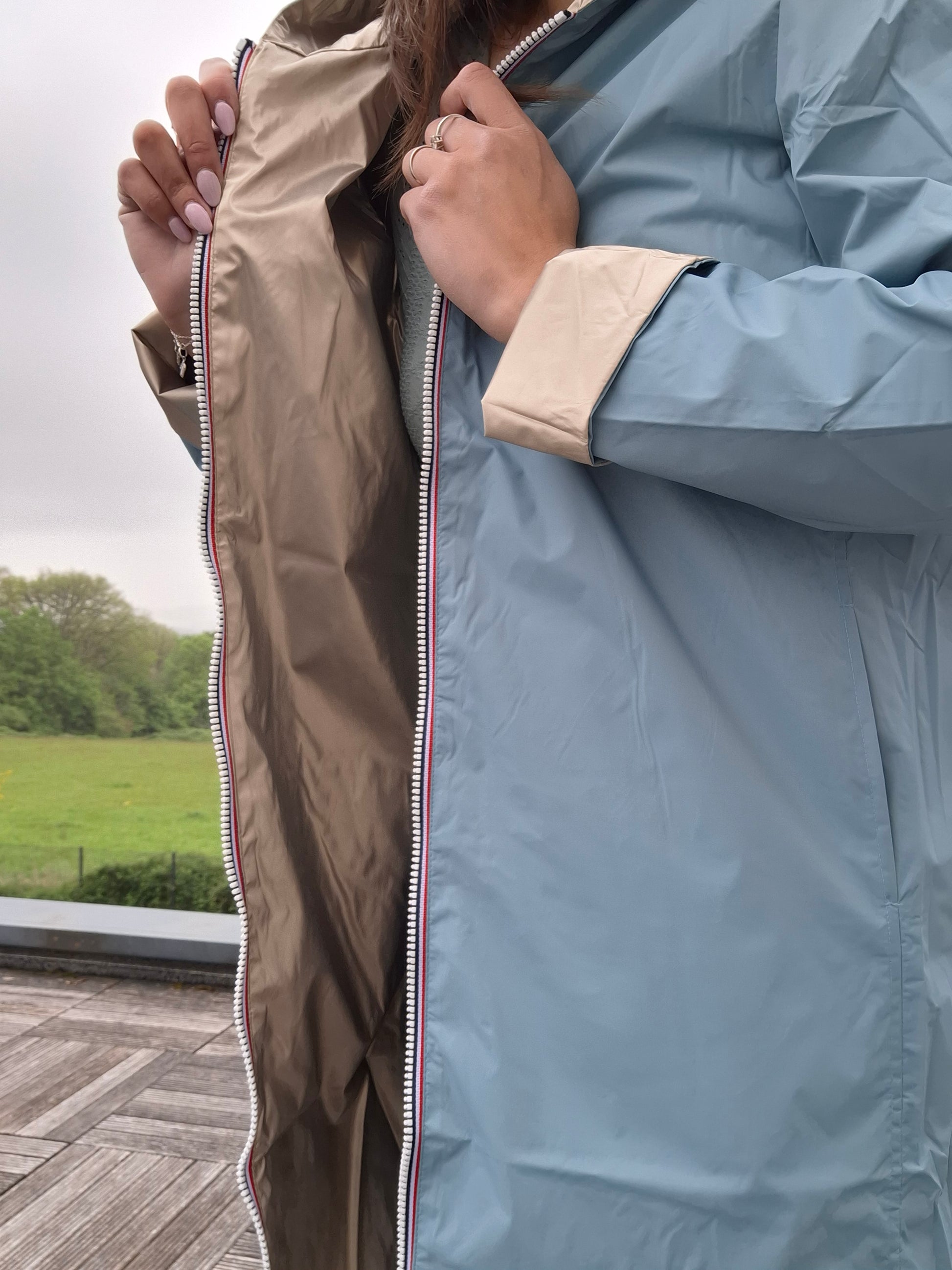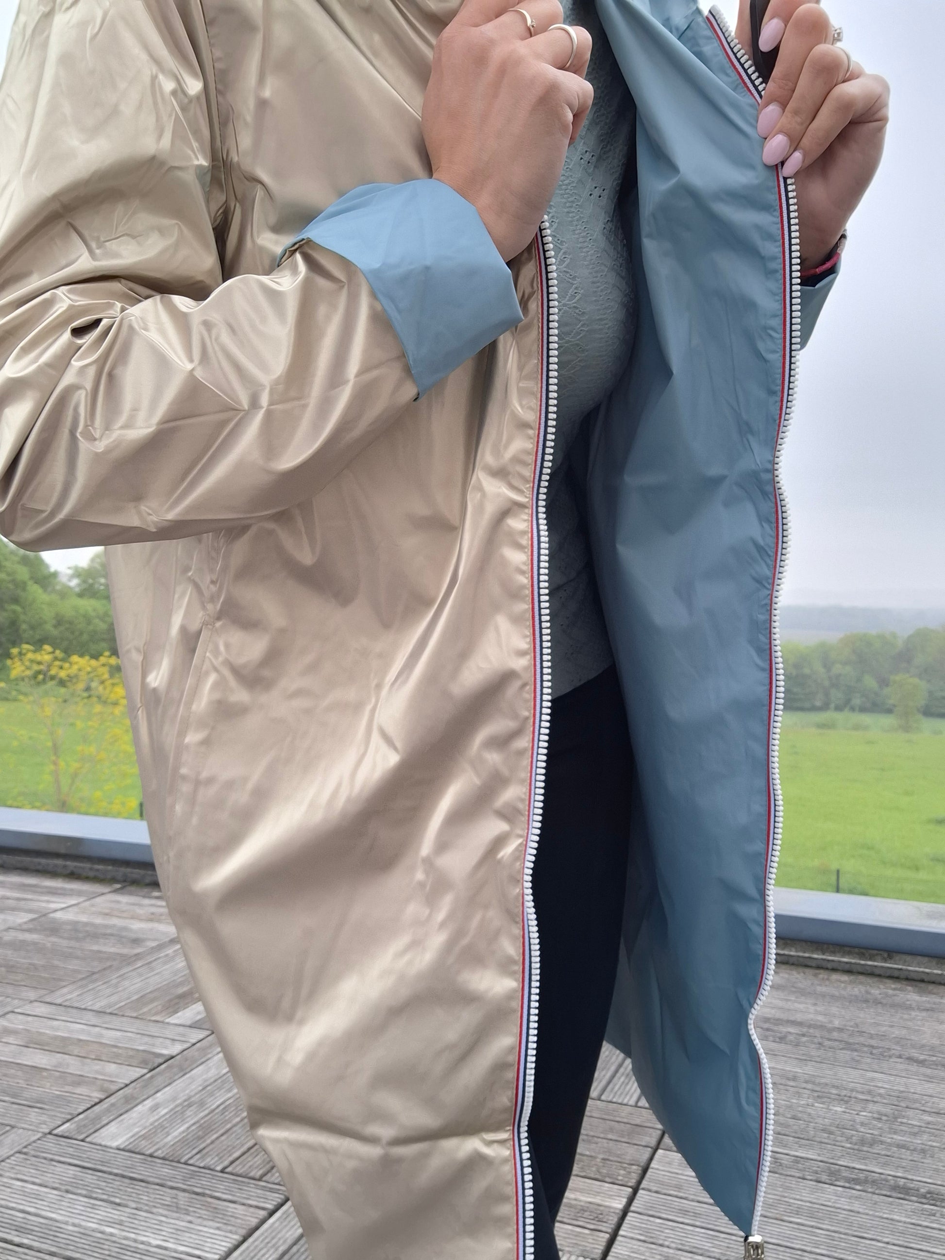 Laura Jo - Imperméable réversible long sans garnissage ouate couleur bleu ciel/doré