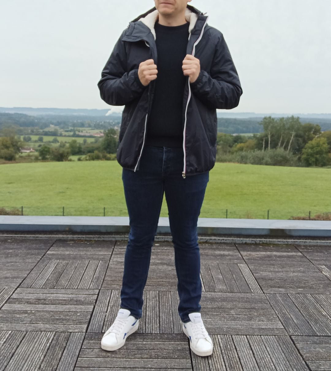 La fermeture éclair centrale assure une protection optimale contre le froid.
