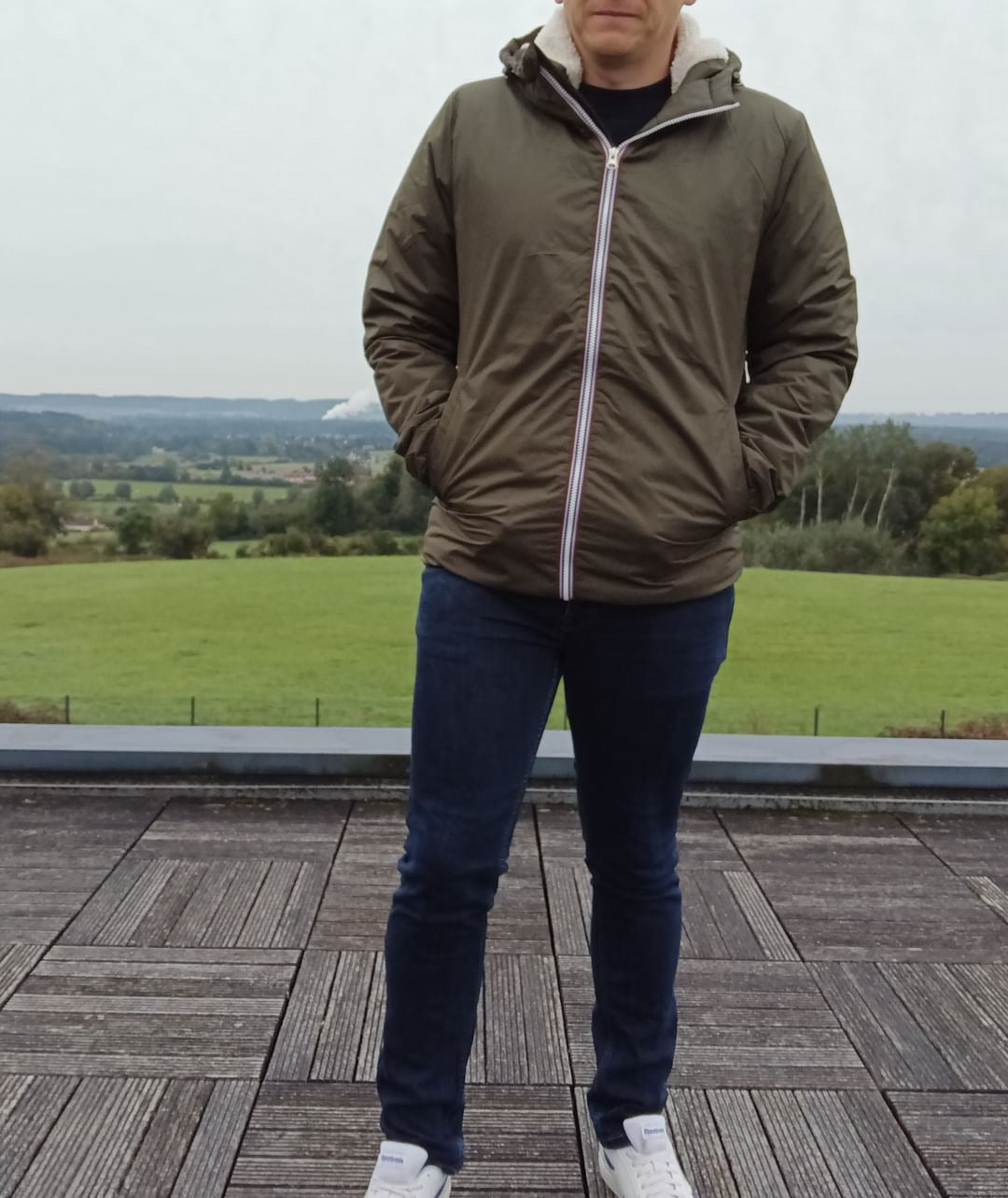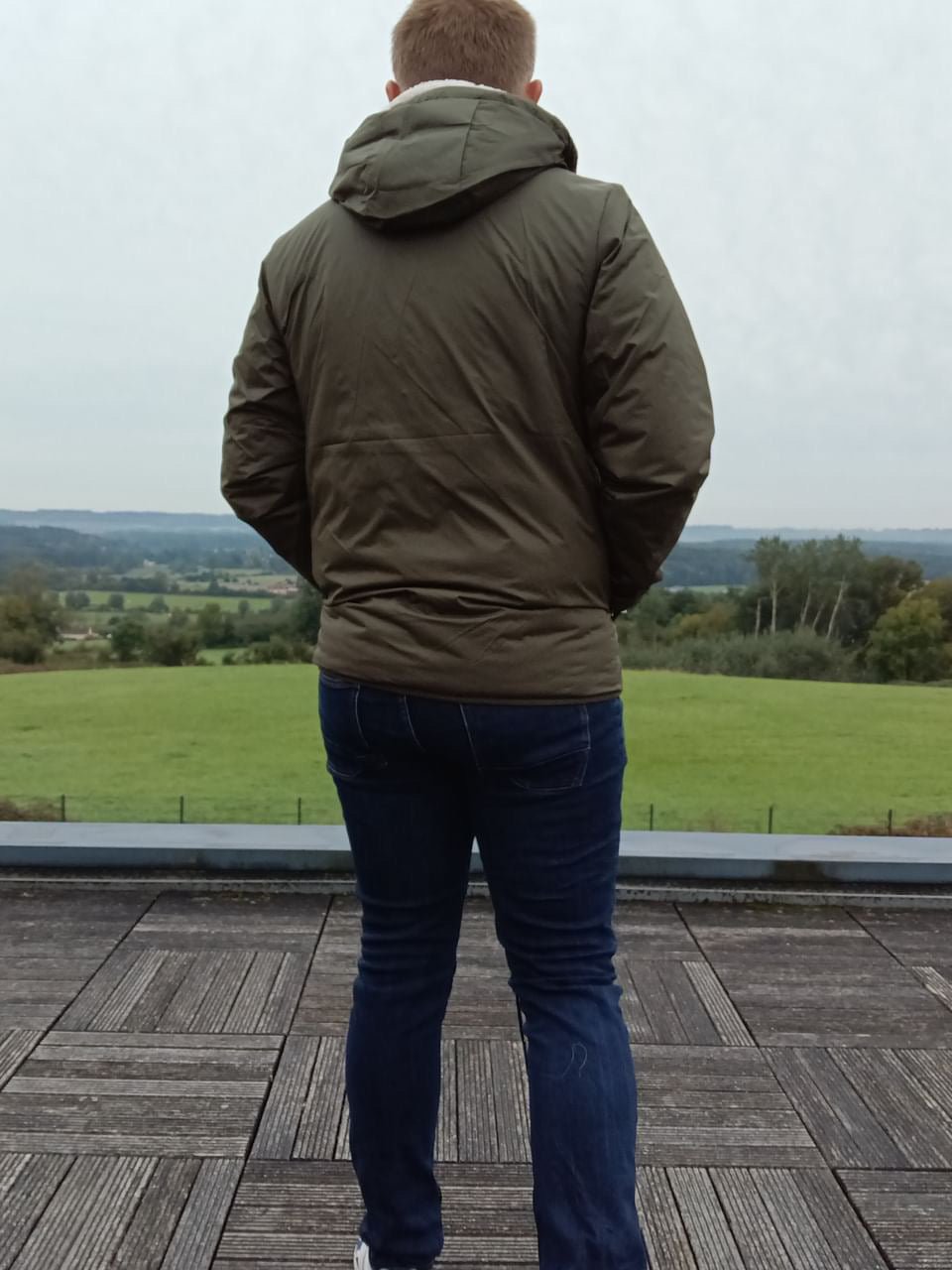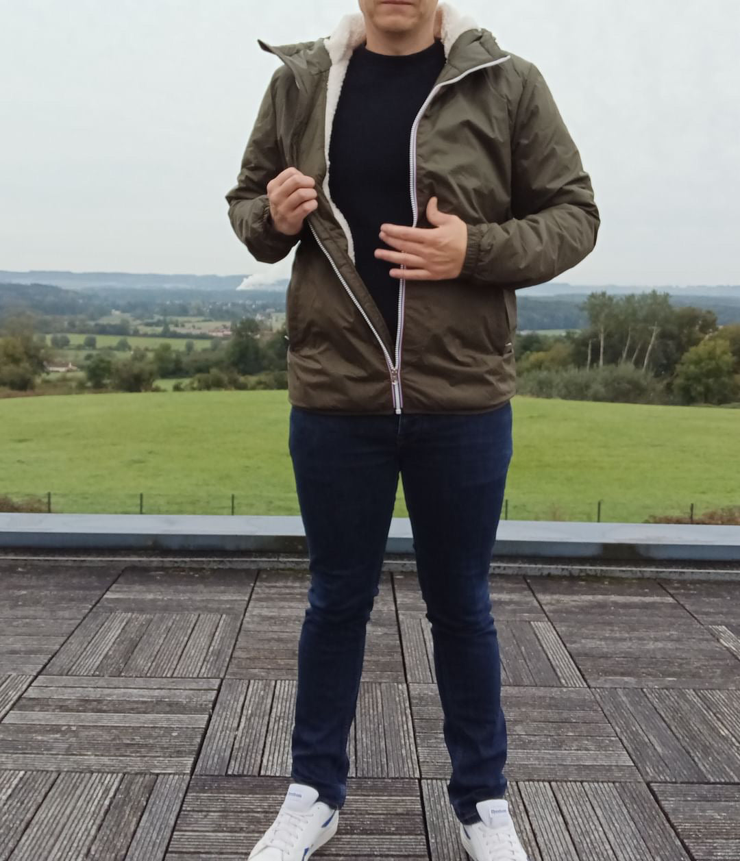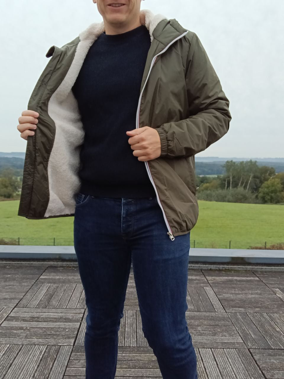 Laura Jo - Manteau imperméable kaki HOMME fourré court, doublé en sherpa blanc