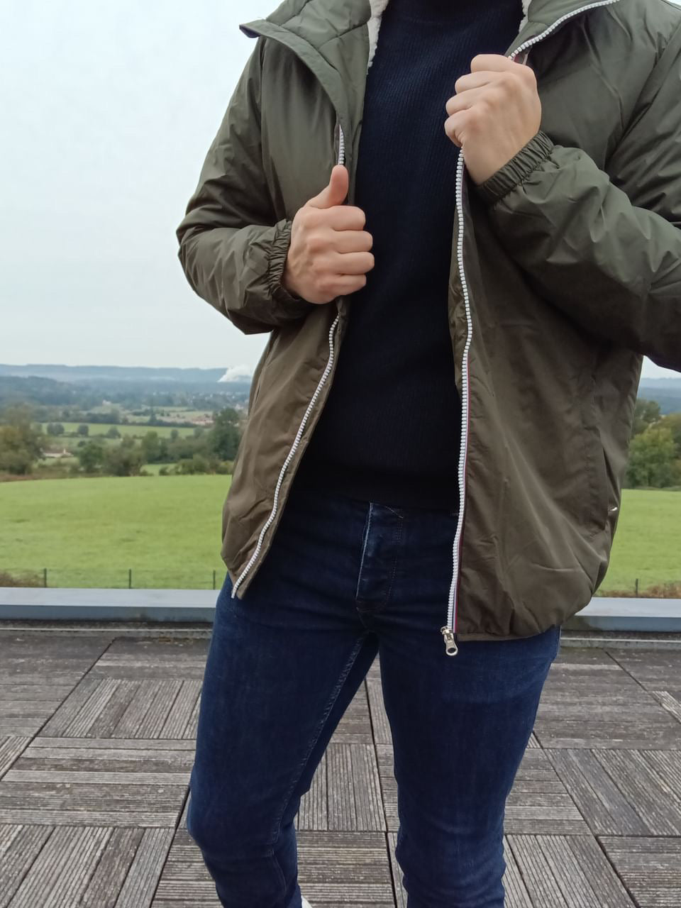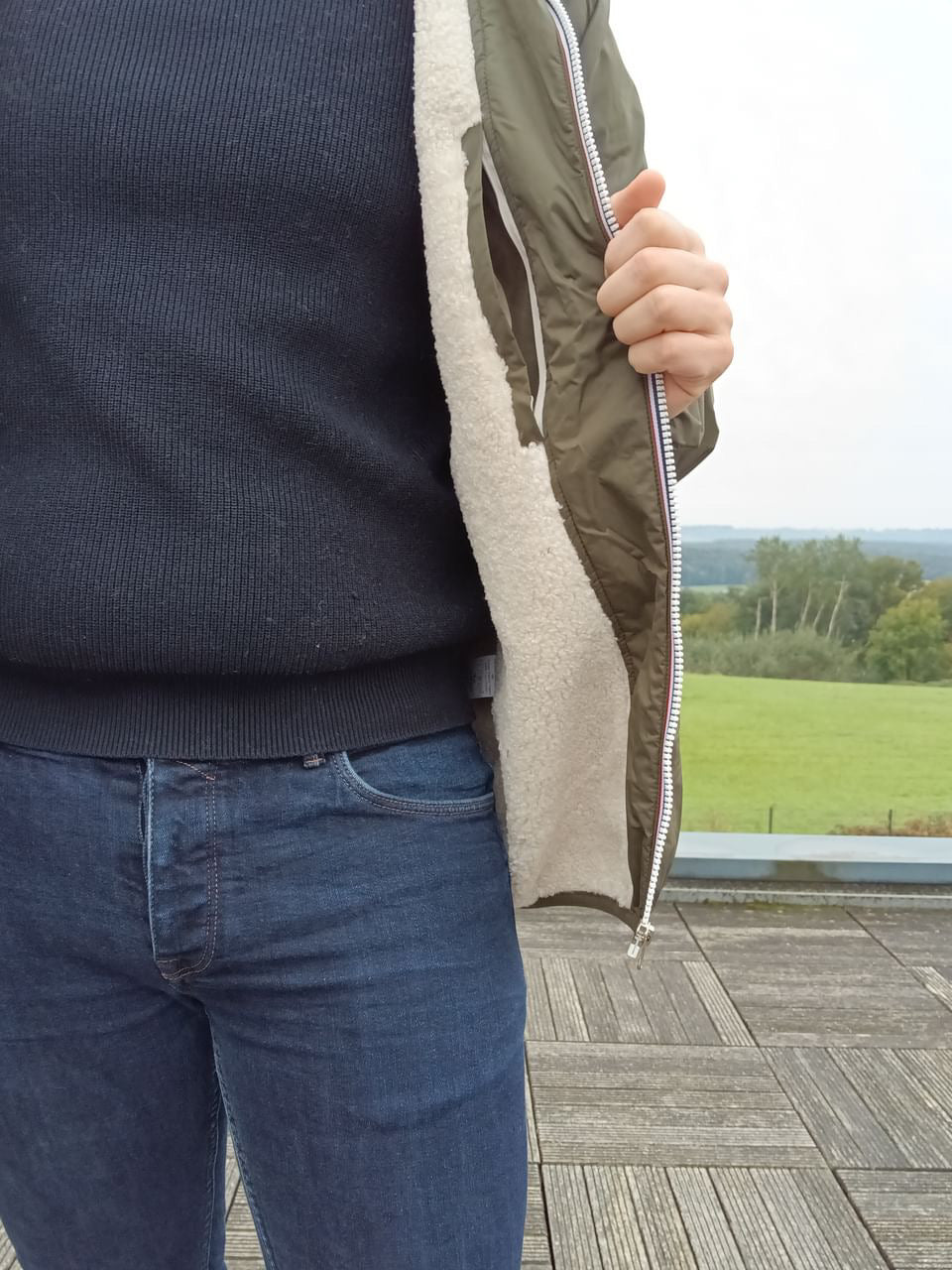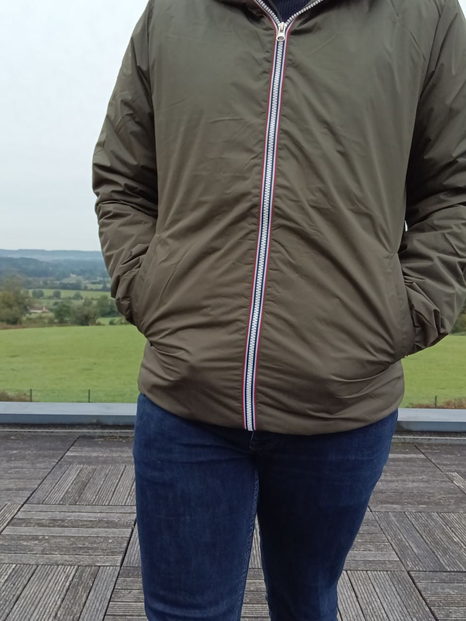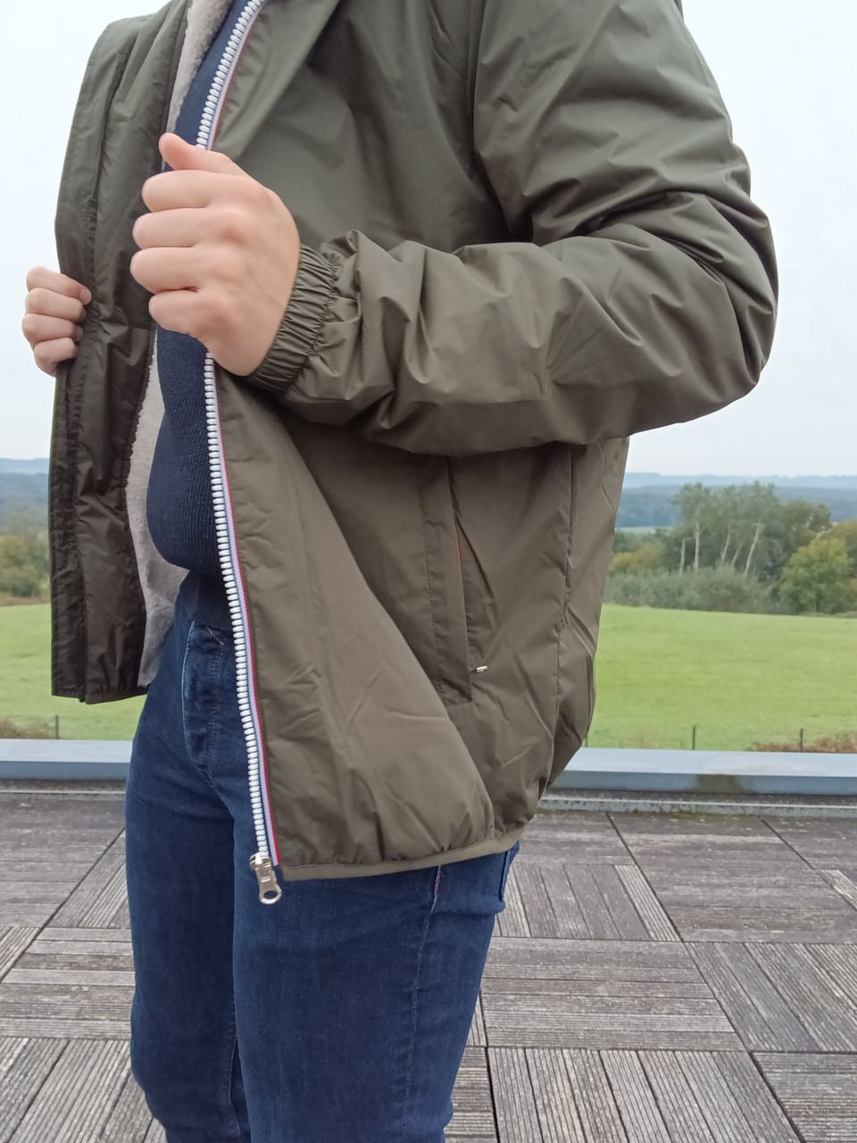 La fermeture éclair centrale assure une protection optimale contre le froid.