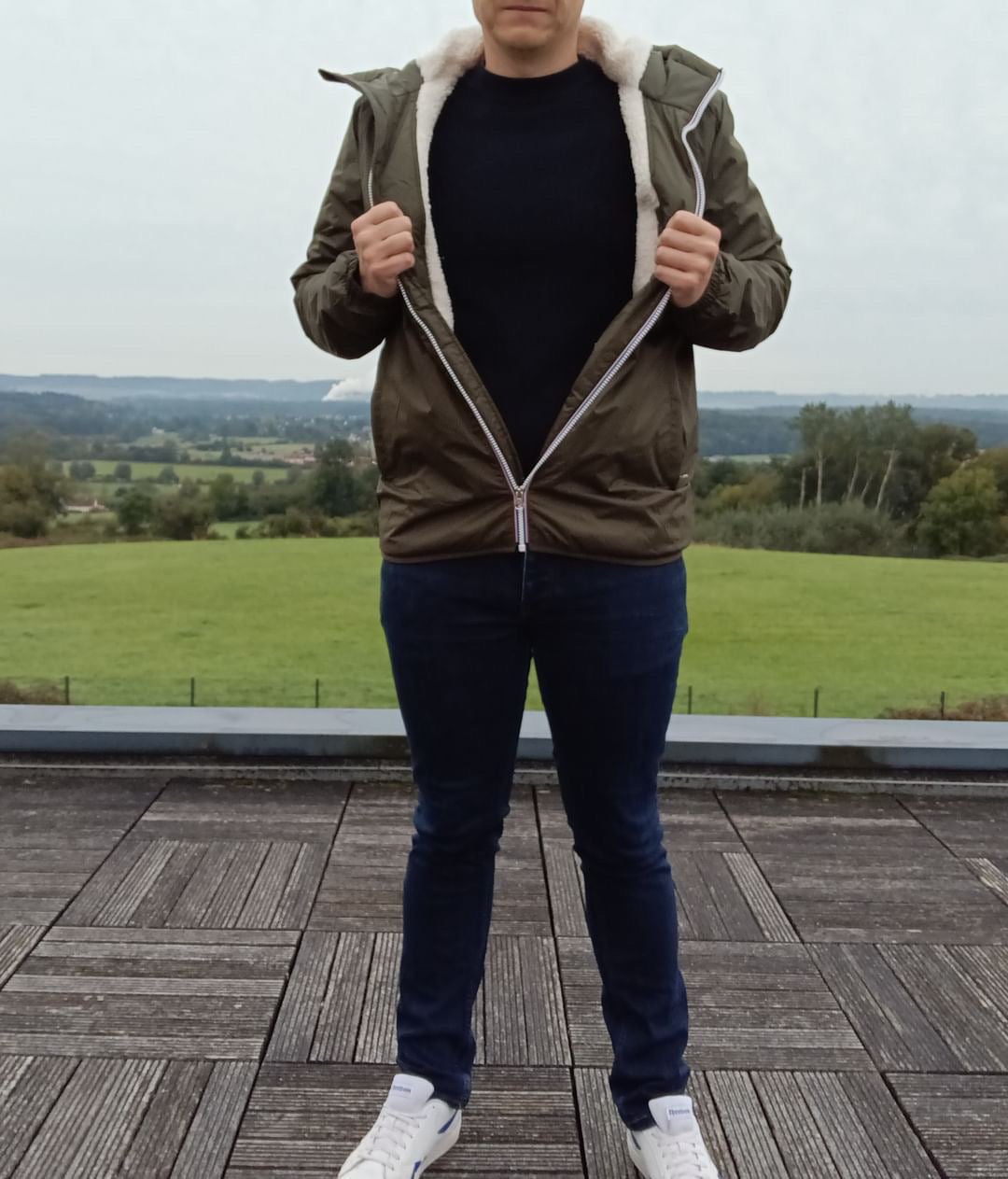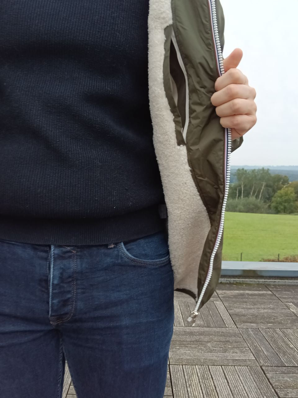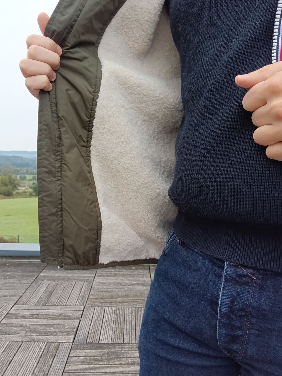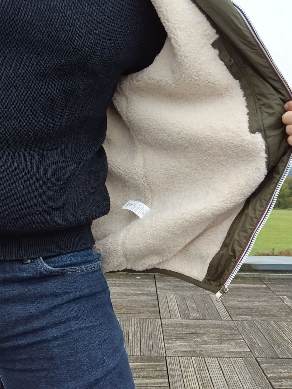 - Entièrement doublé en fausse fourrure sherpa blanc (sauf manches)