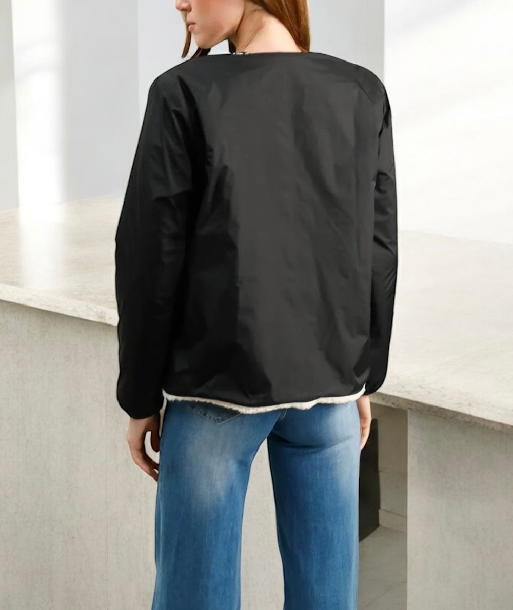 Laura Jo - Veste courte reversible noire avec doublure en sherpa beige