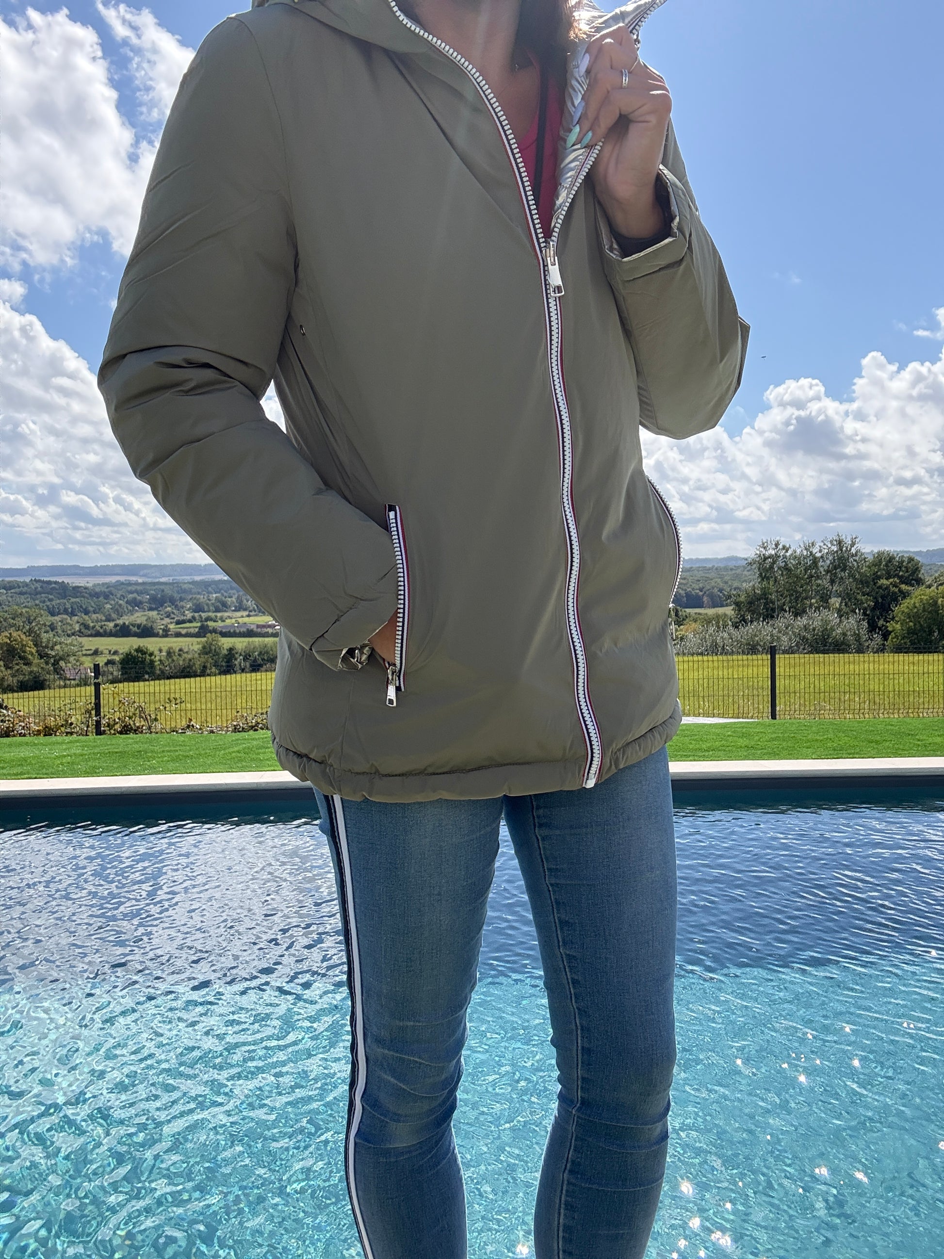 Melya Melody - Manteau court réversible et imperméable matelassé kaki/doré - Curvy