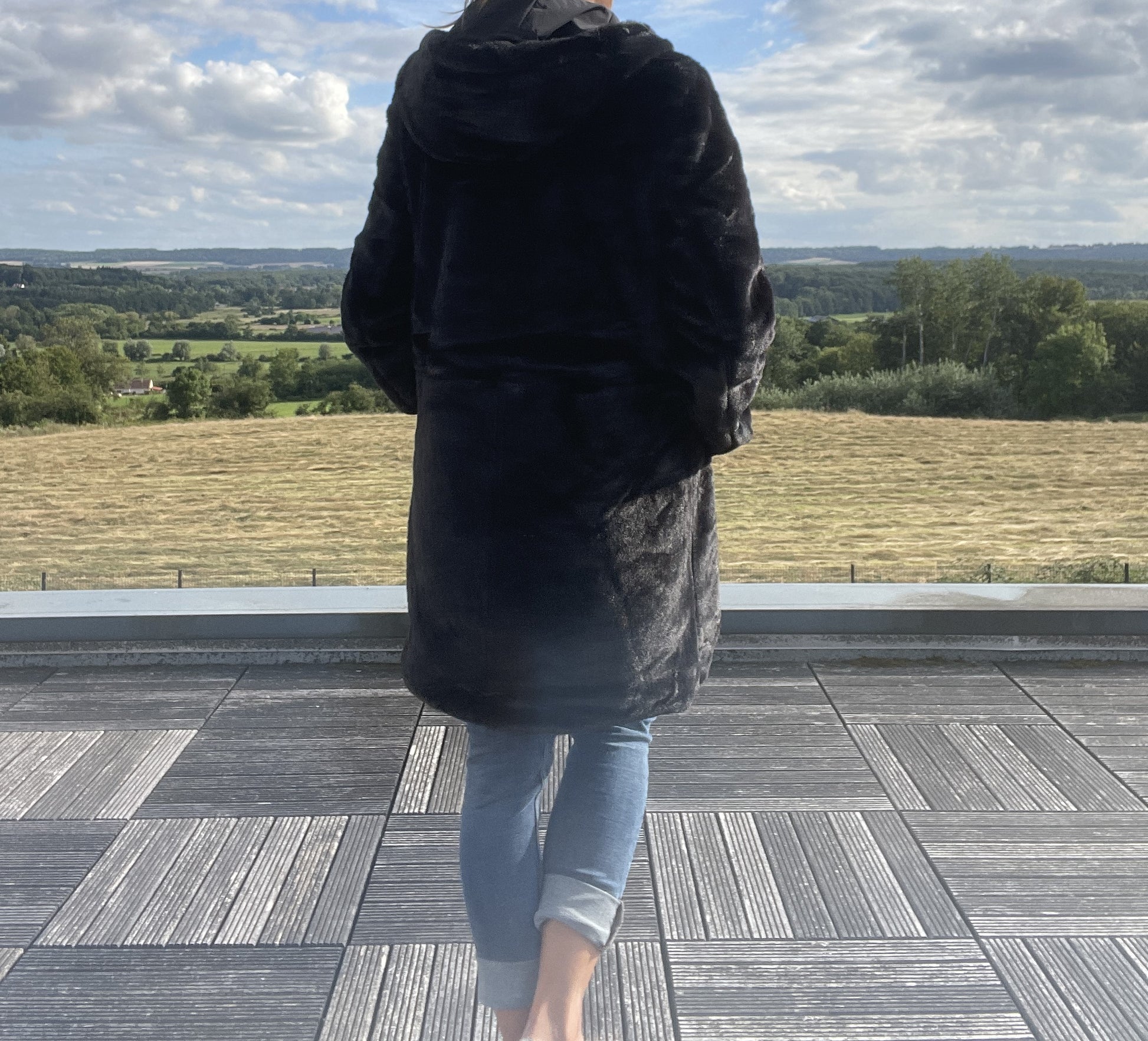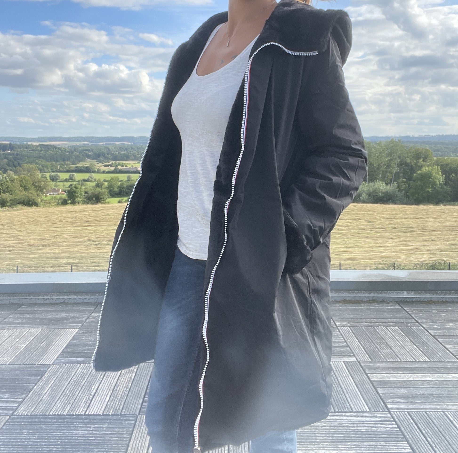 Melya Melody - Manteau long fourré fausse fourrure réversible imperméable noir - Curvy