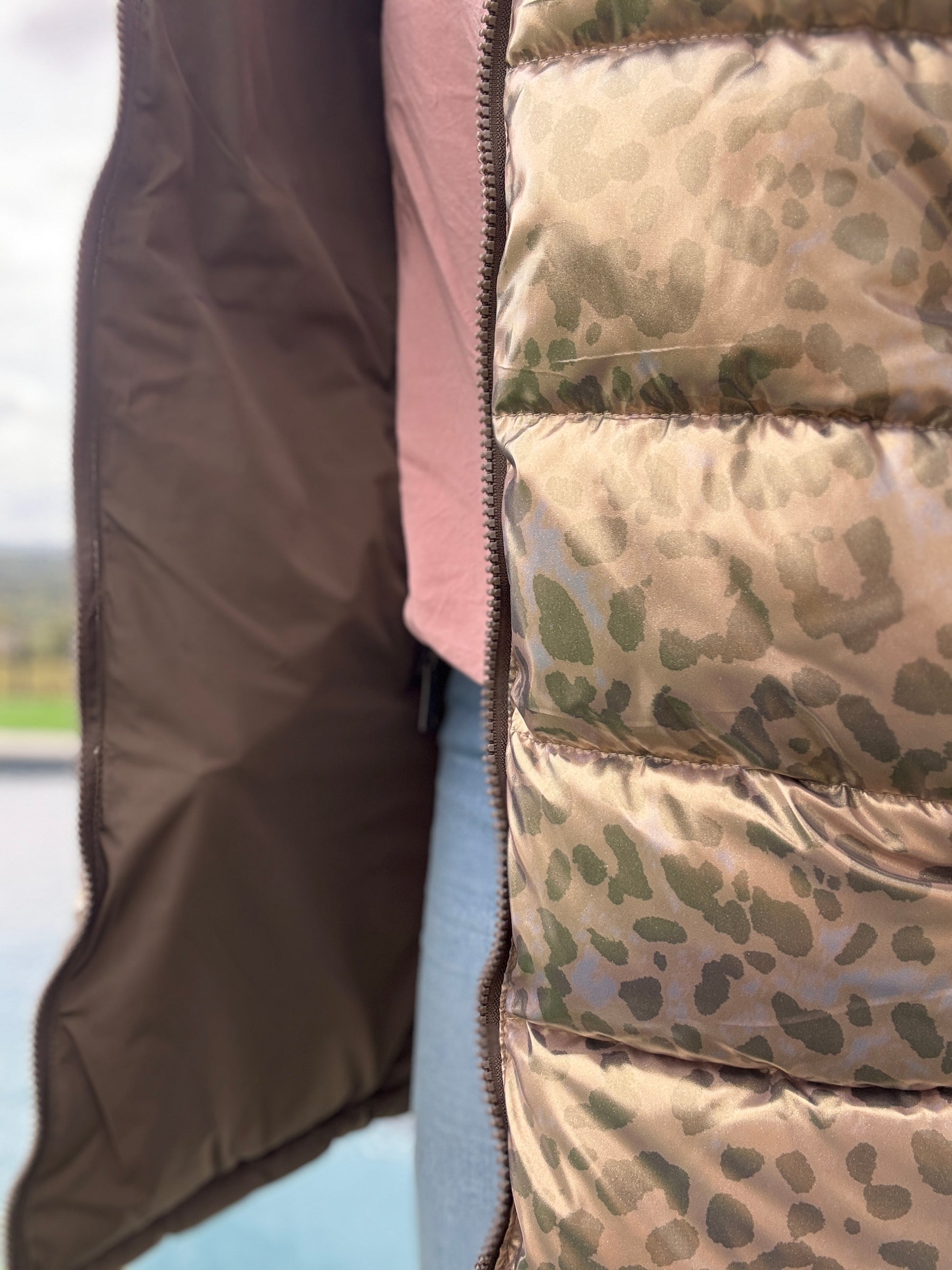 Melya Melody - Manteau long réversible et imperméable matelassé kaki marron/léopard