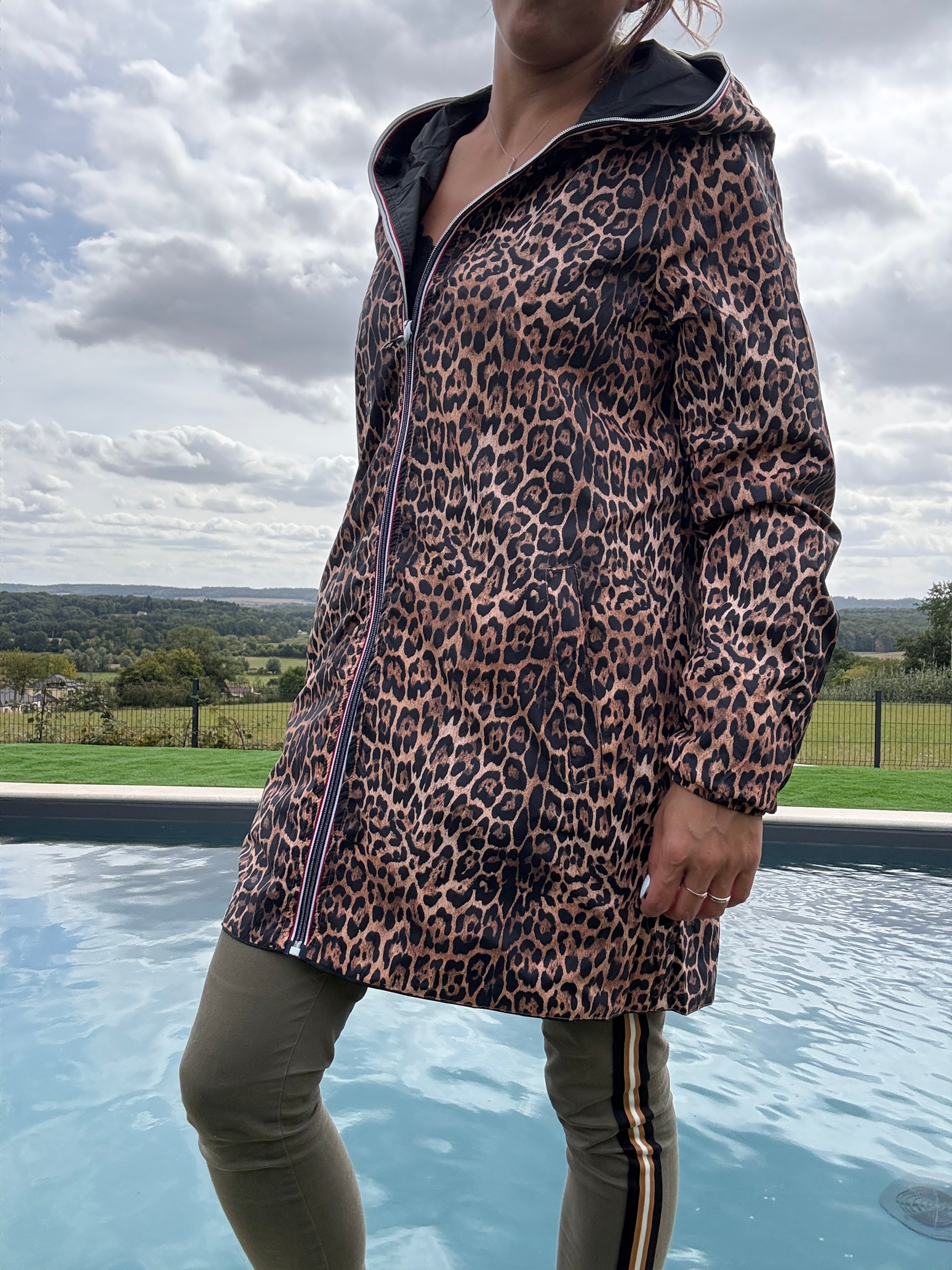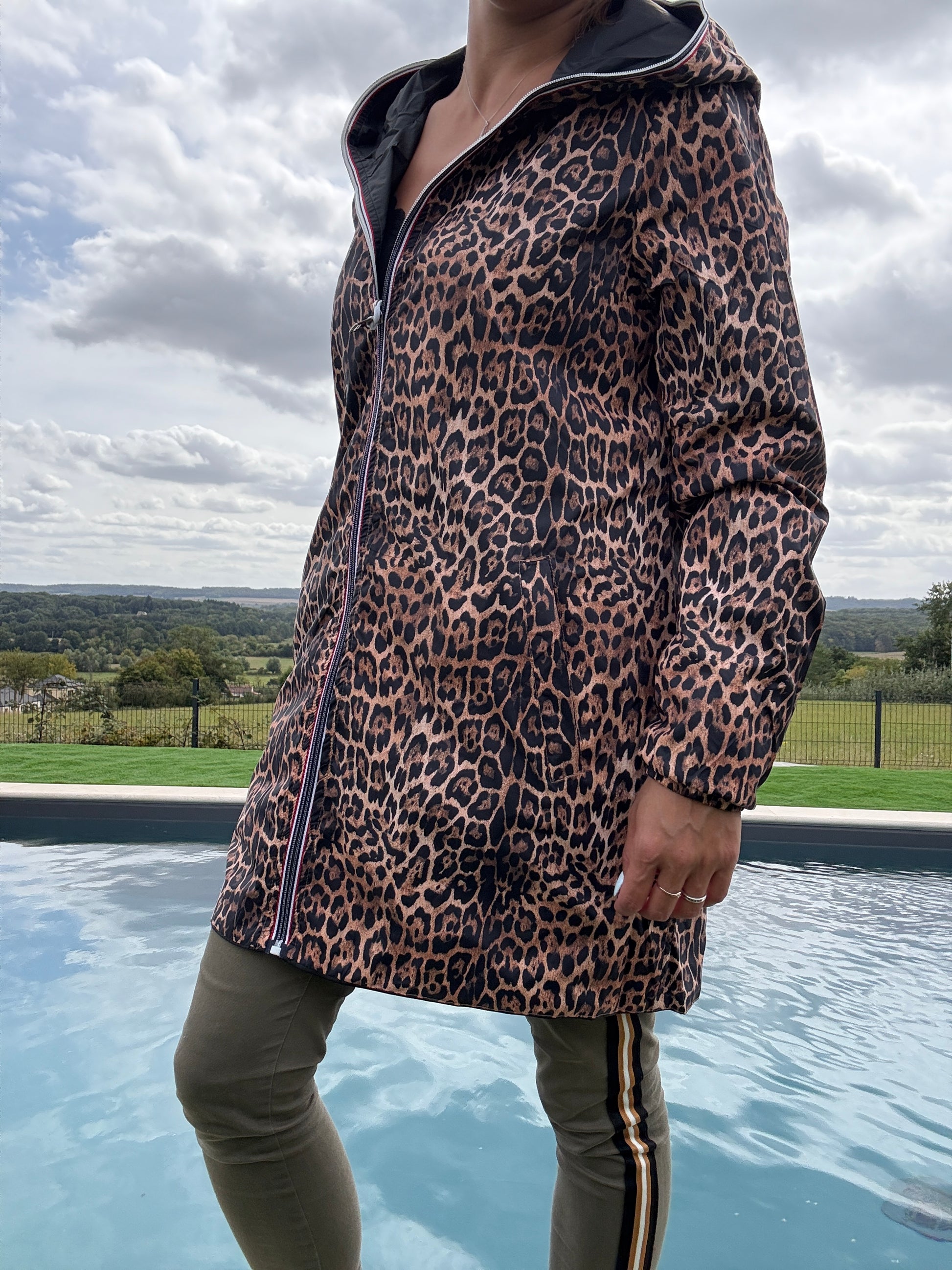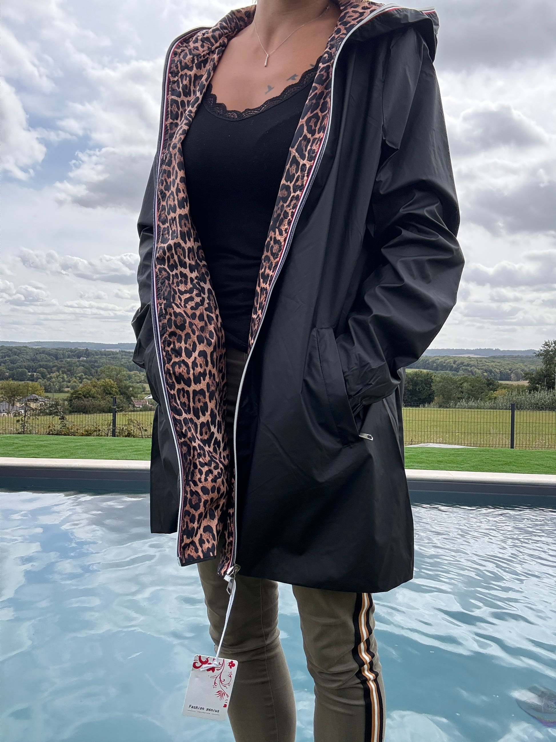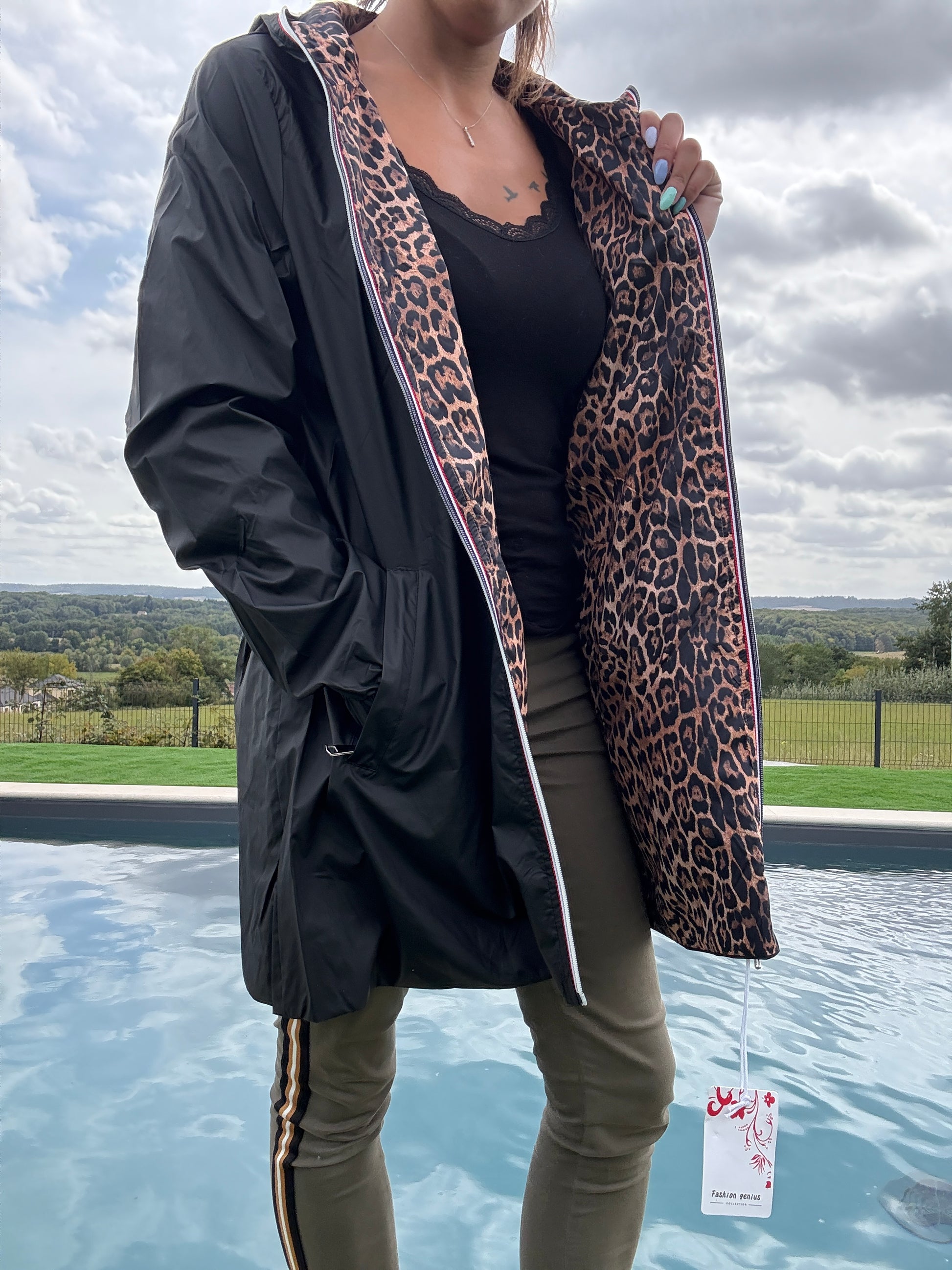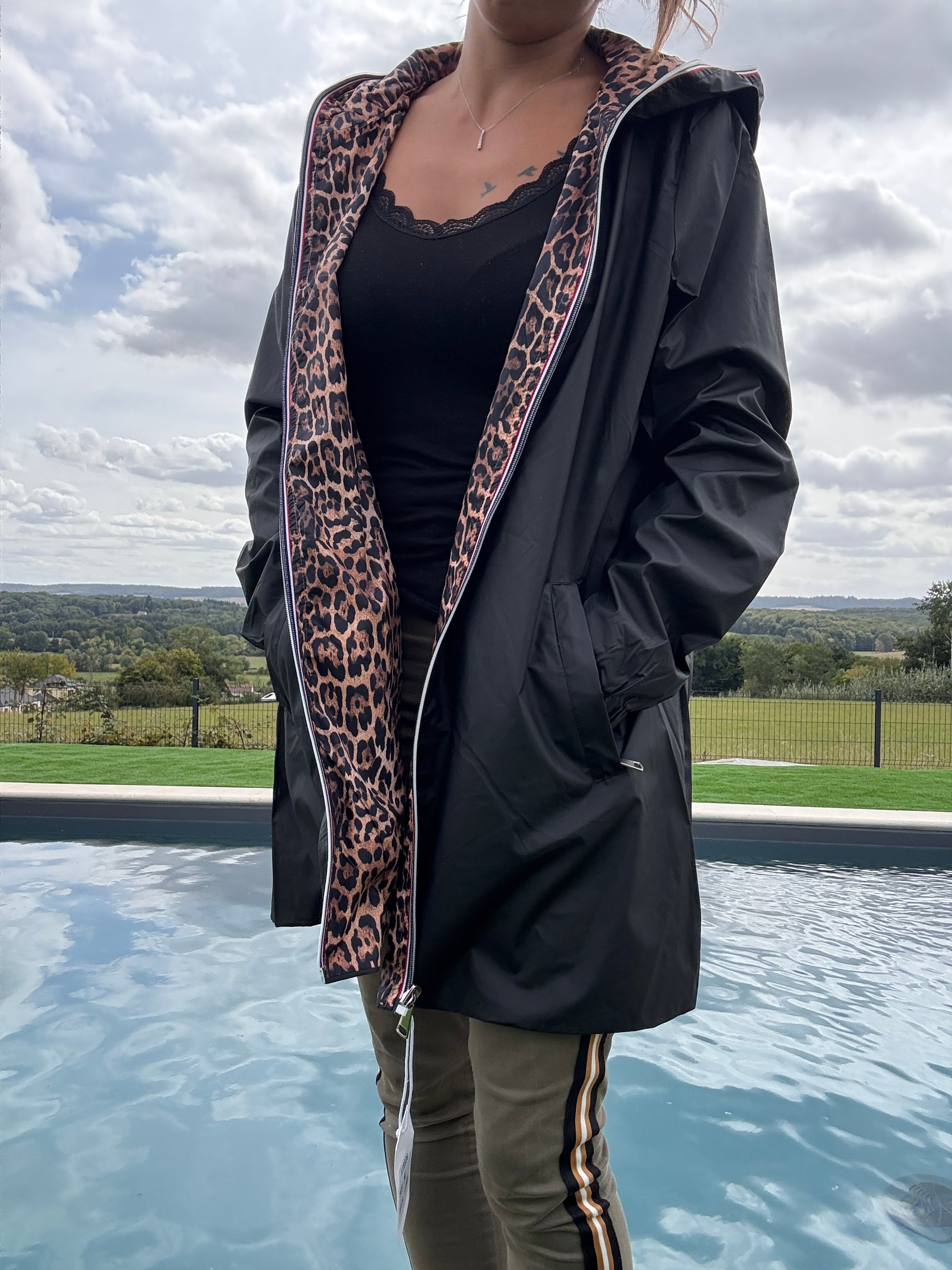 New Lolo - Imperméable réversible long sans garnissage ouate couleur noir/léopard