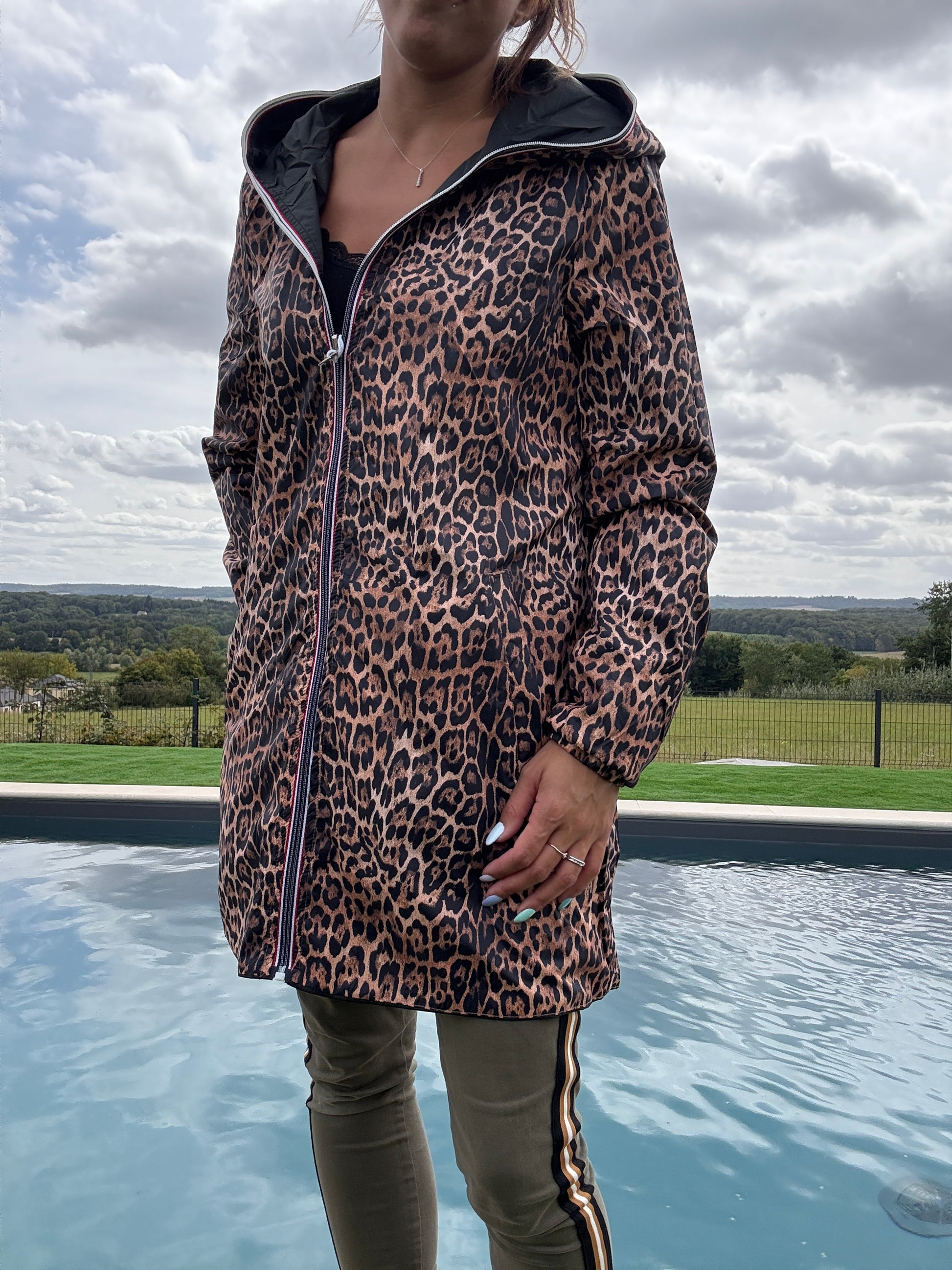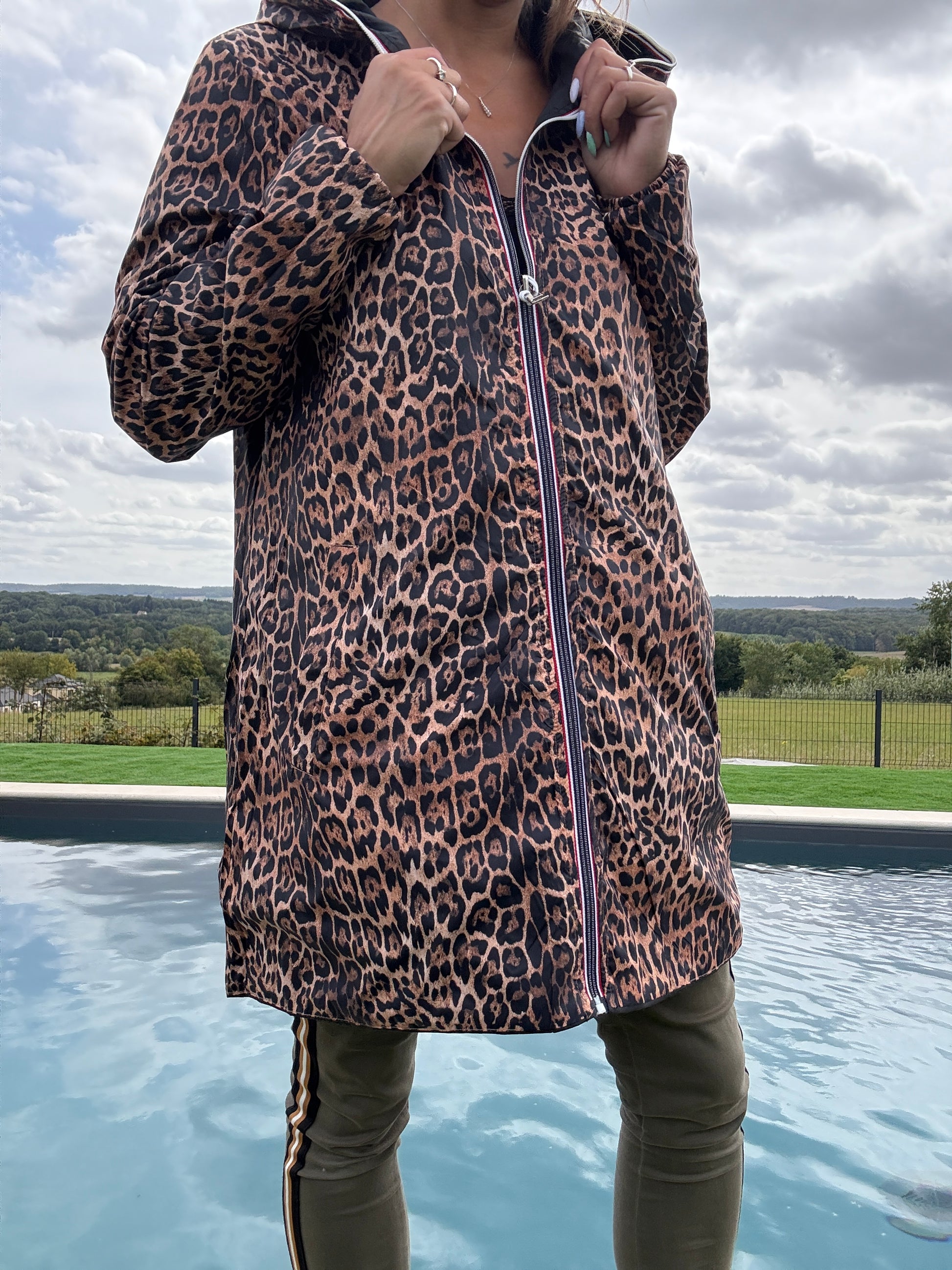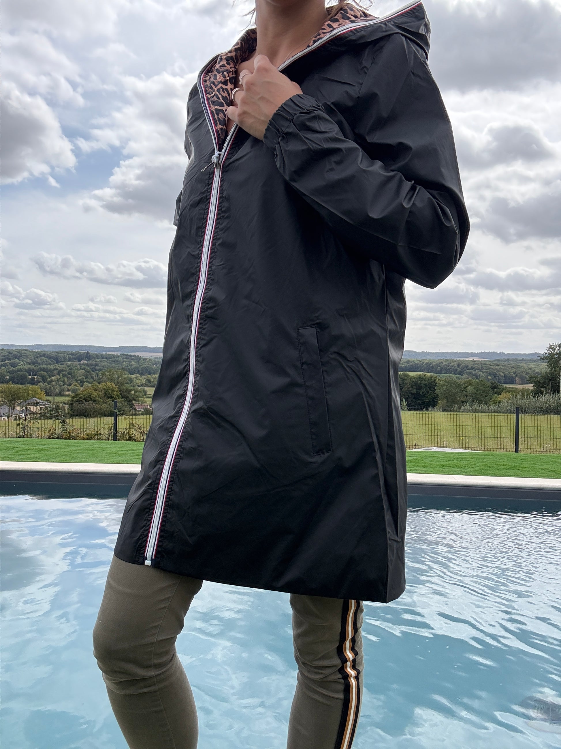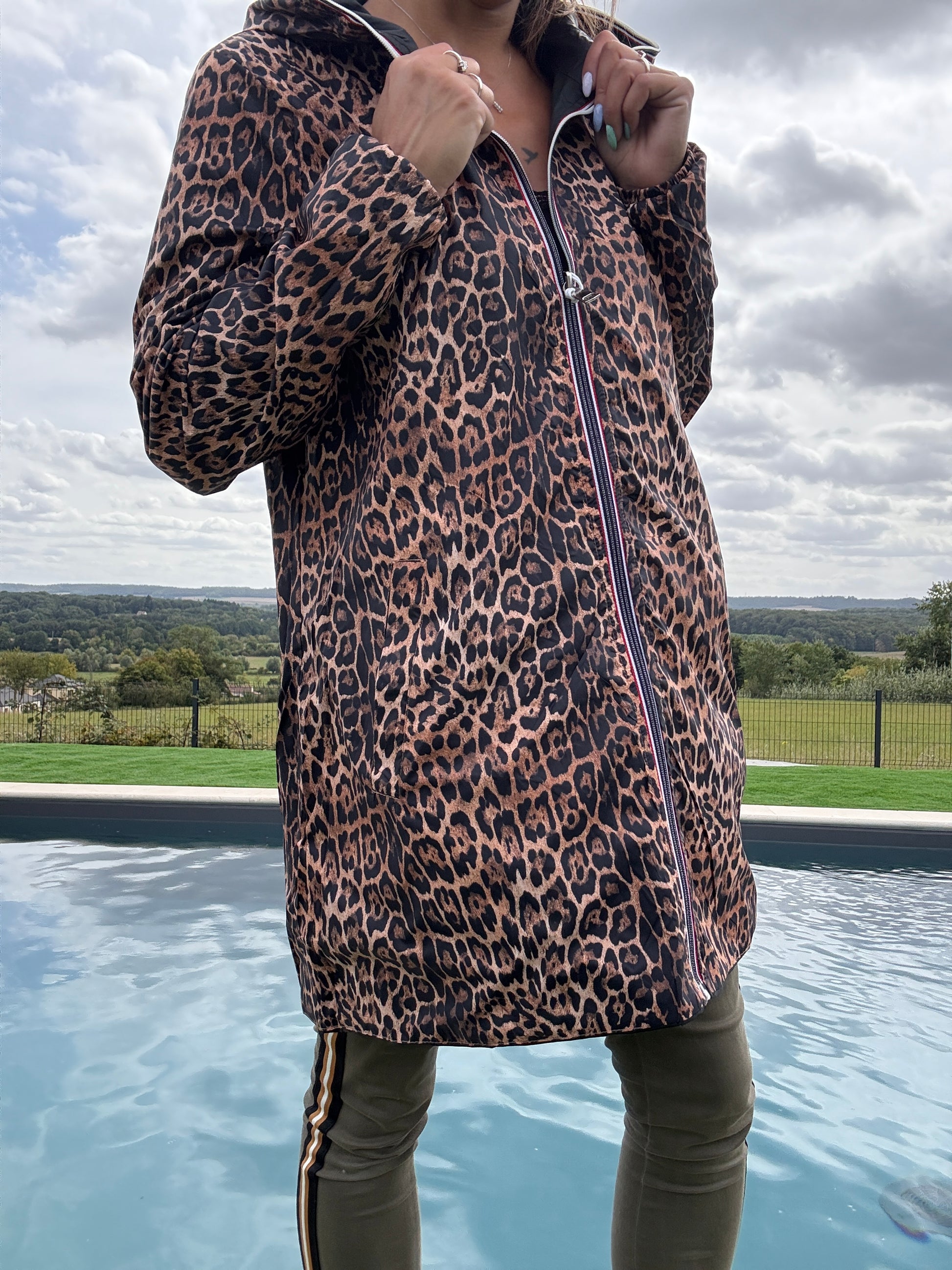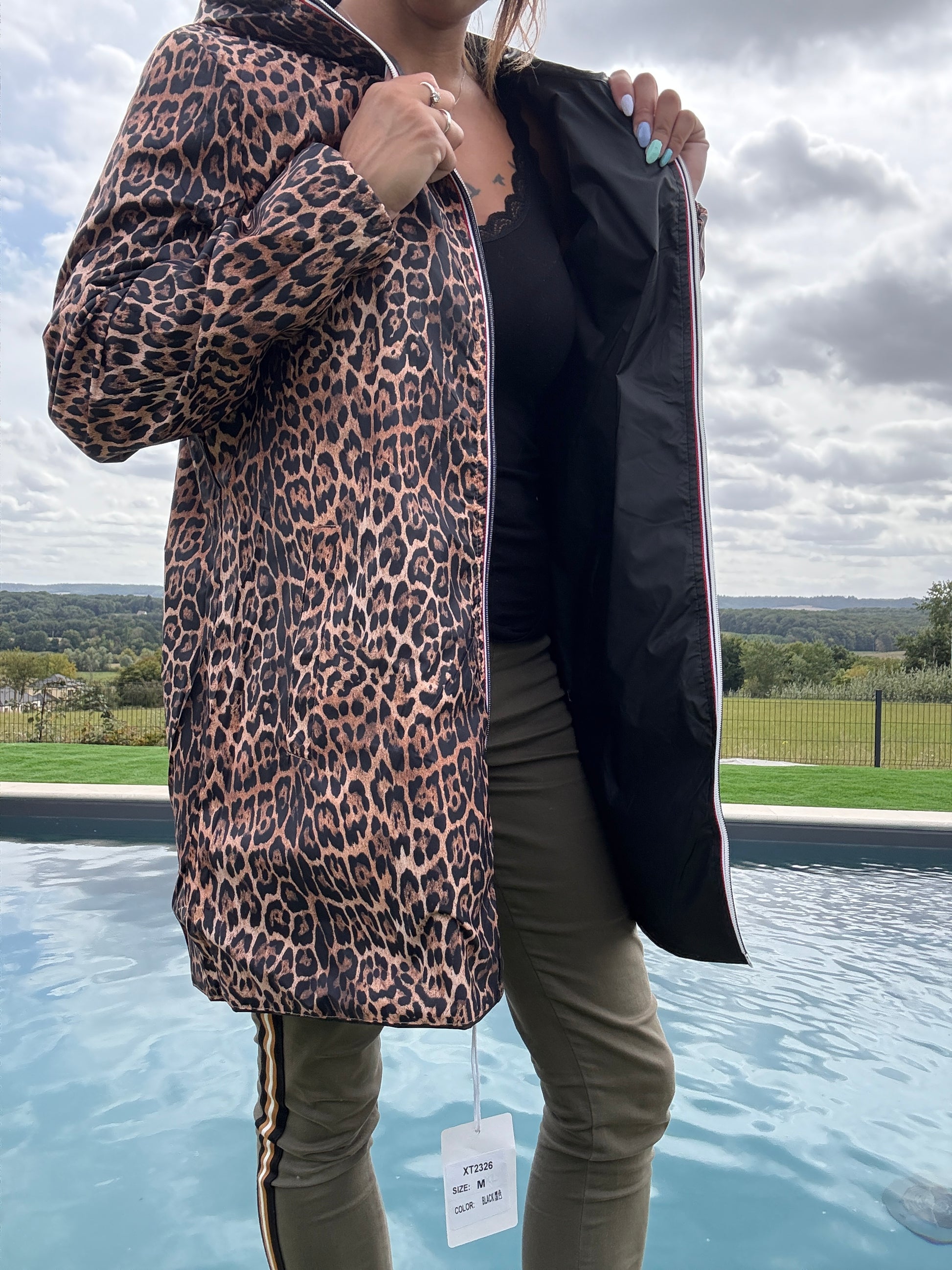 New Lolo - Imperméable réversible long sans garnissage ouate couleur noir/léopard