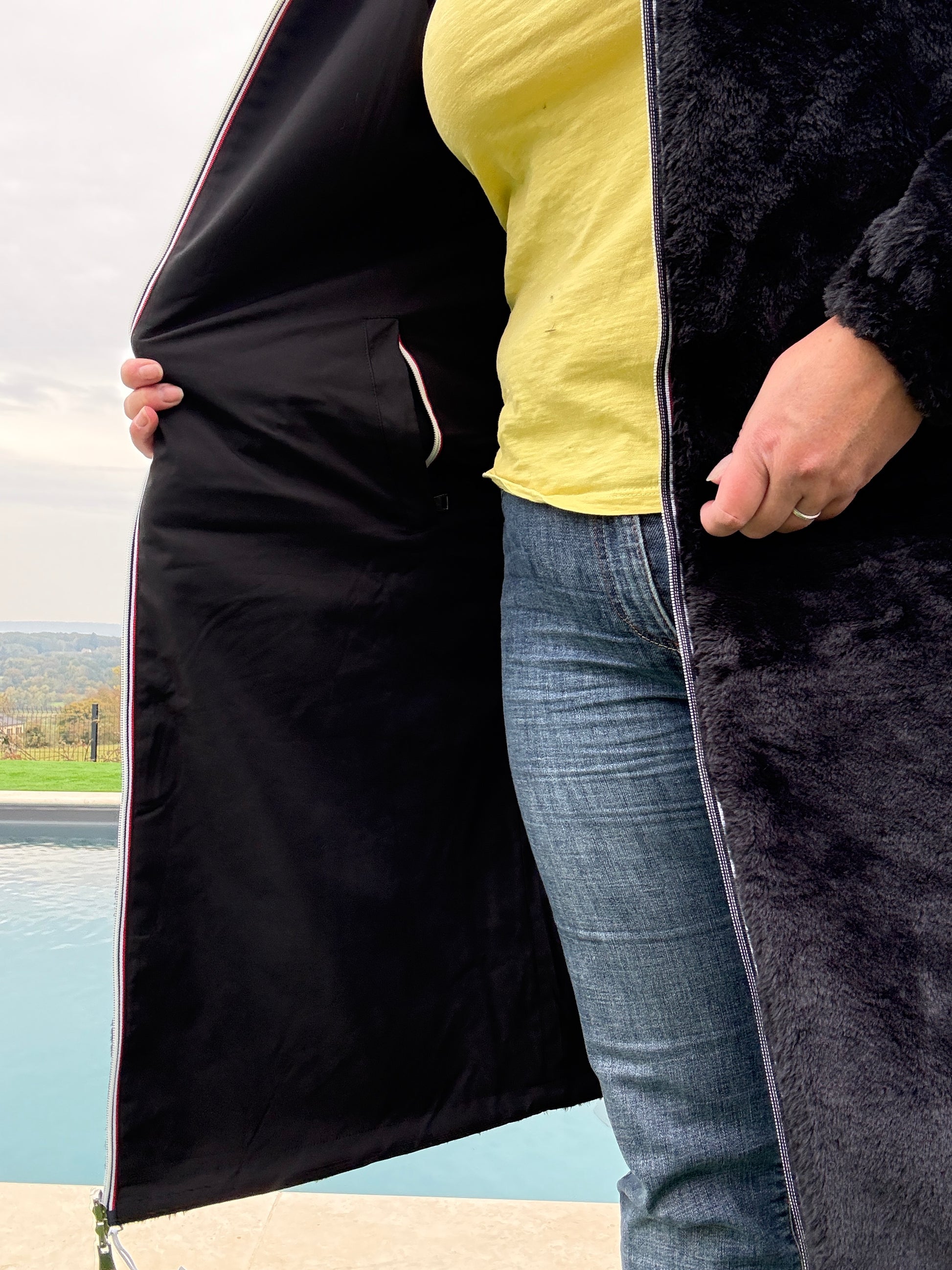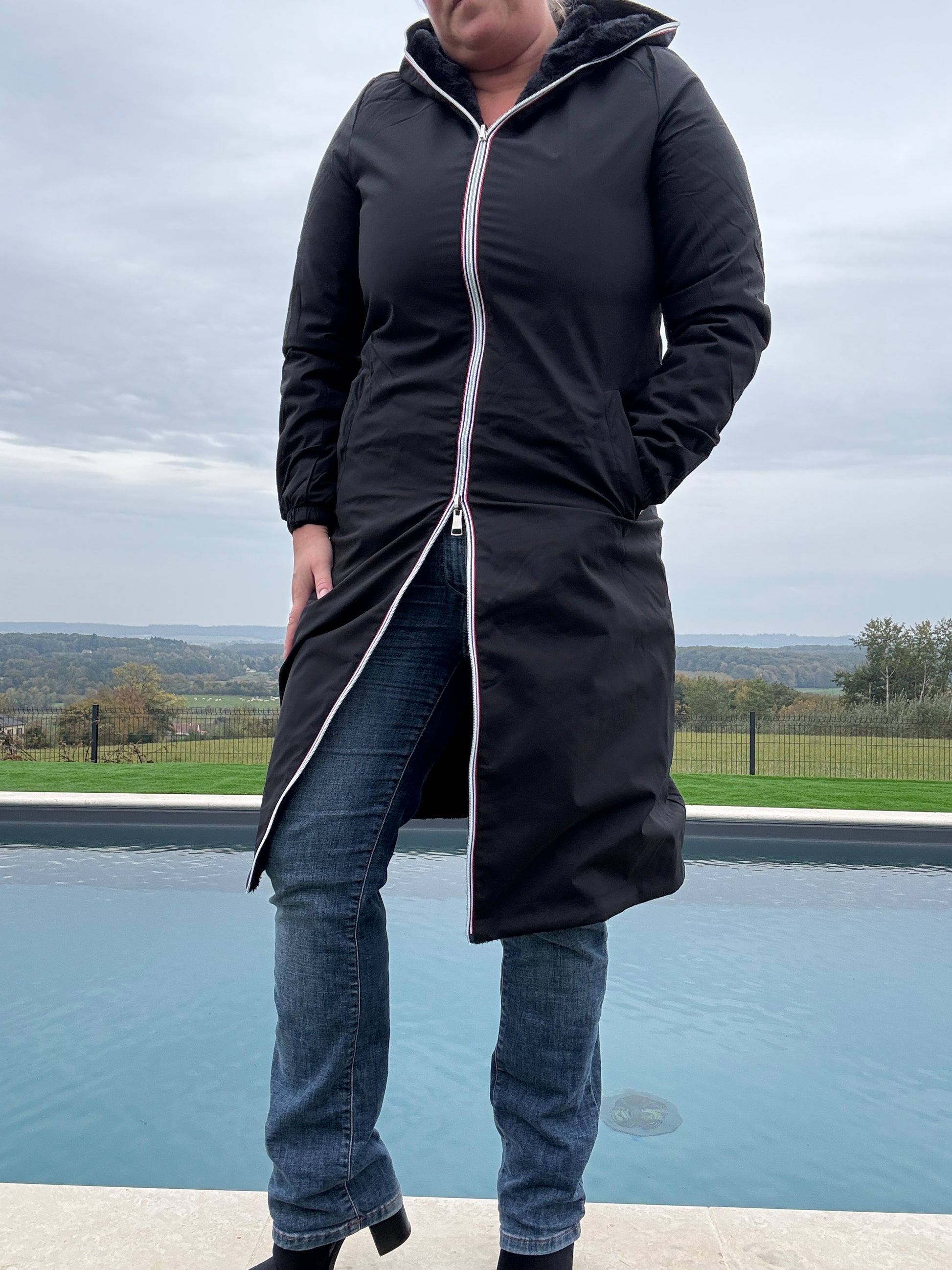 New Lolo - Manteau chaud long hauteur genoux noir fourré complet réversible imperméable