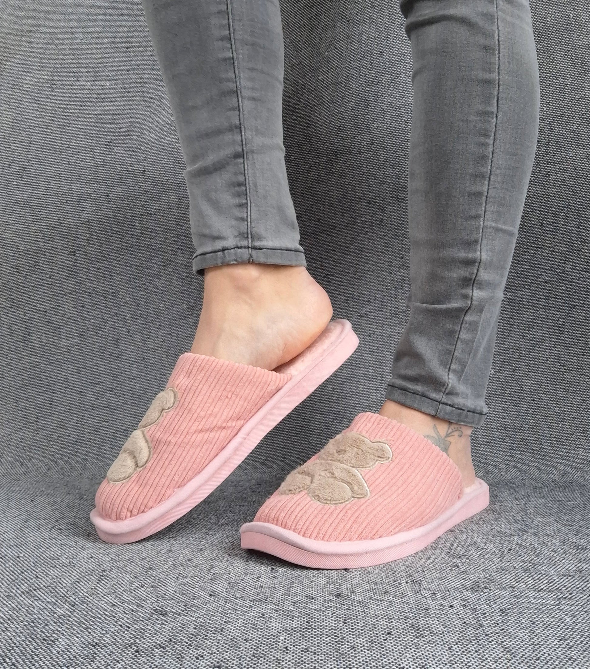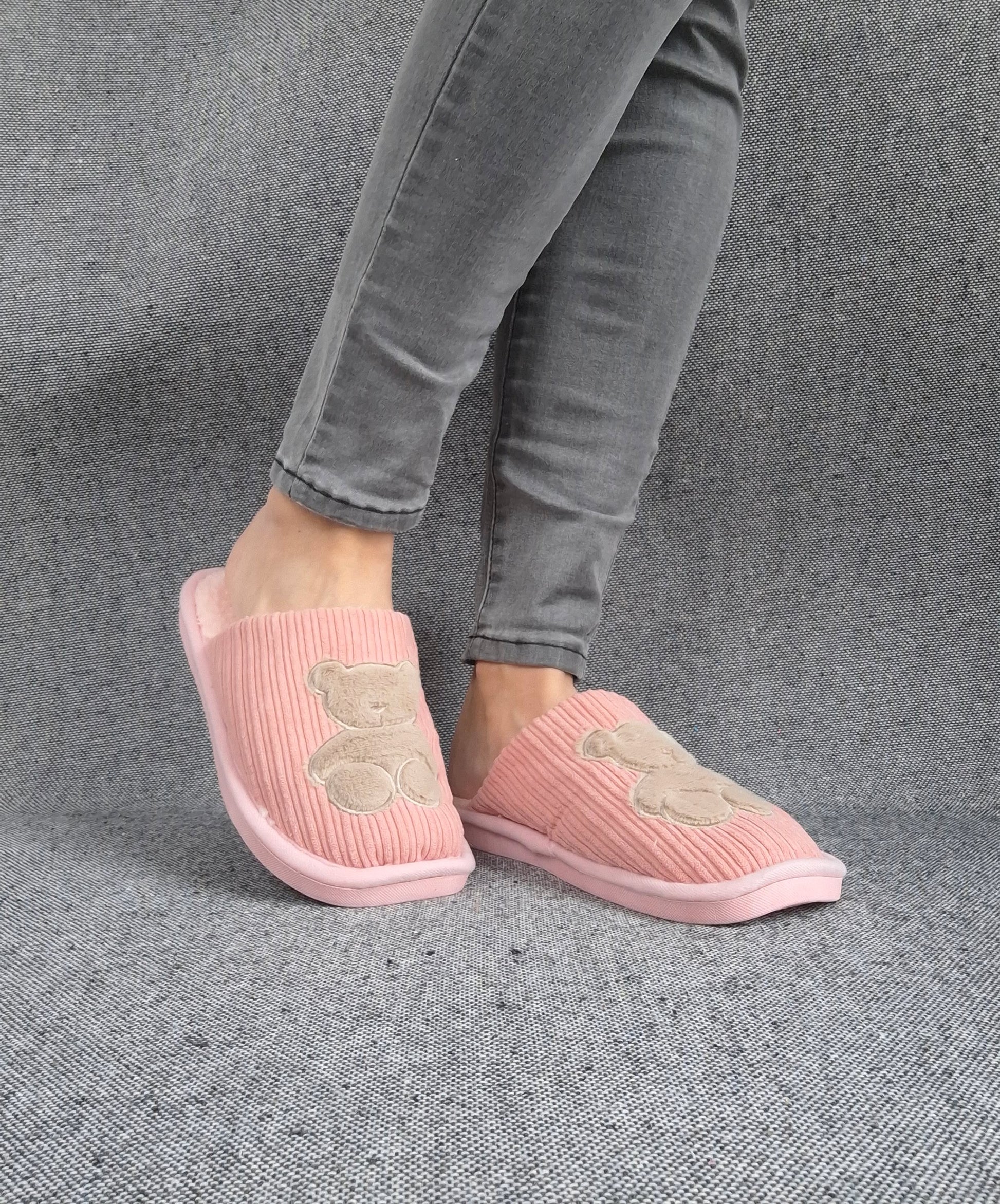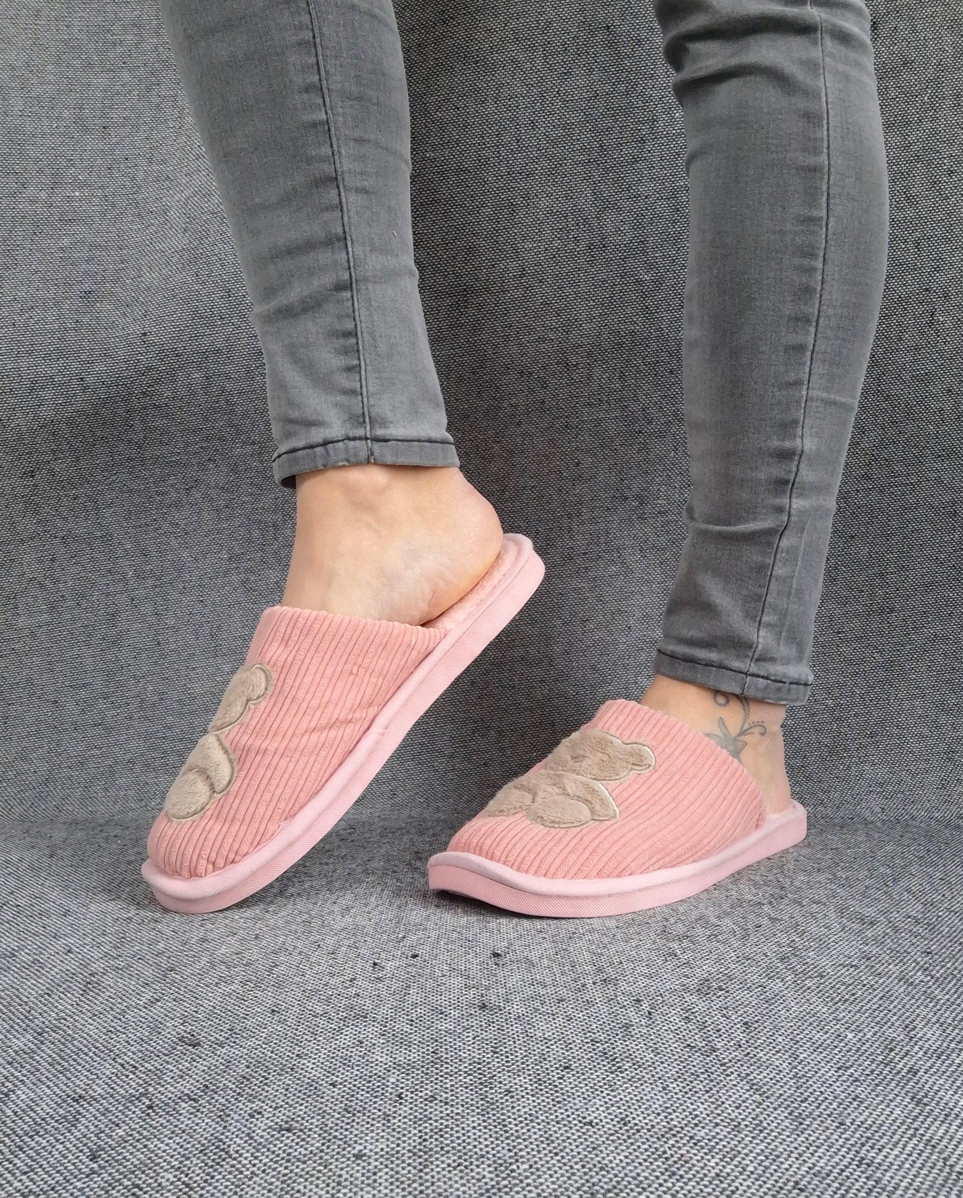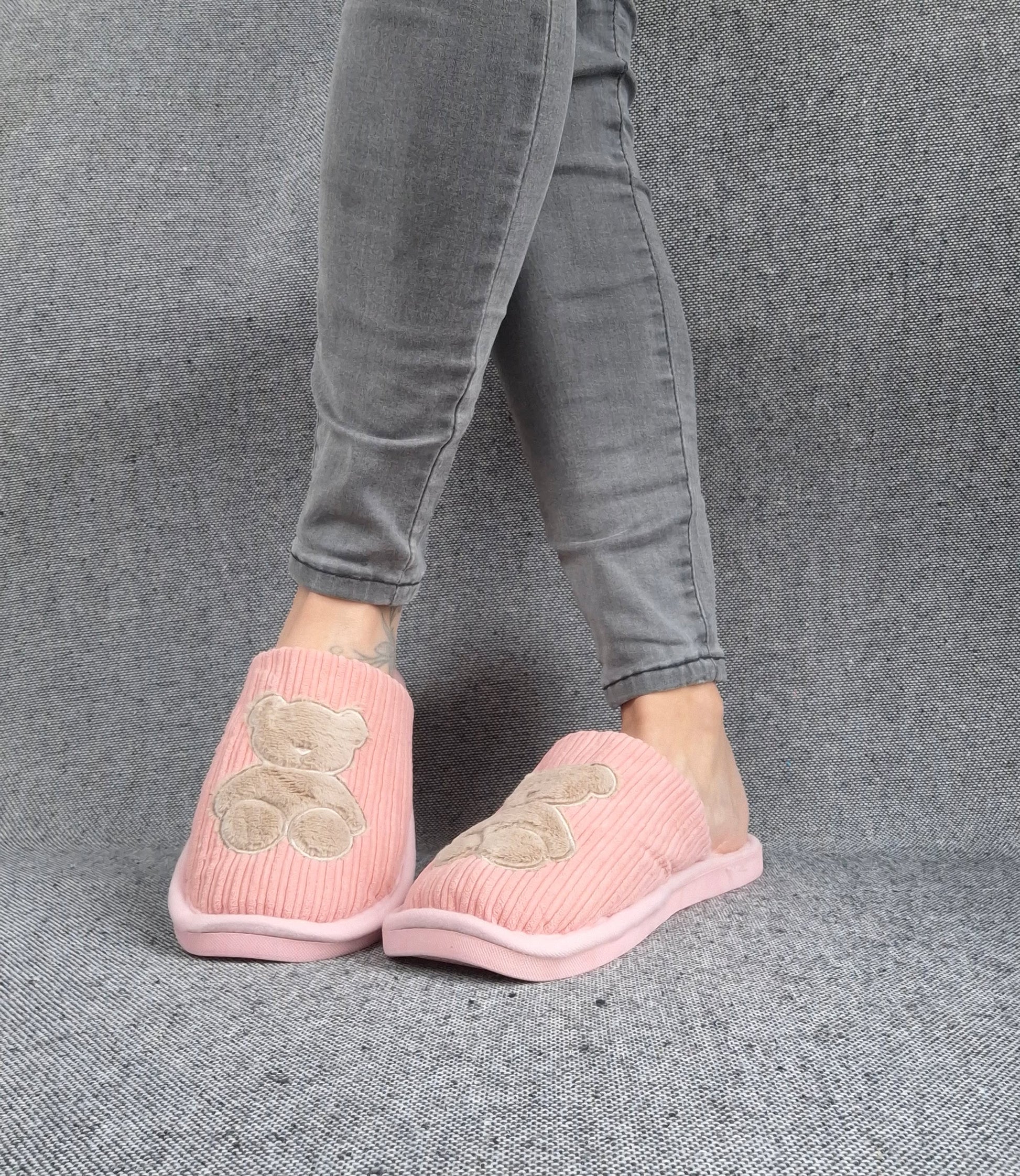Chaussons fourrés rose en tissu avec motif ours