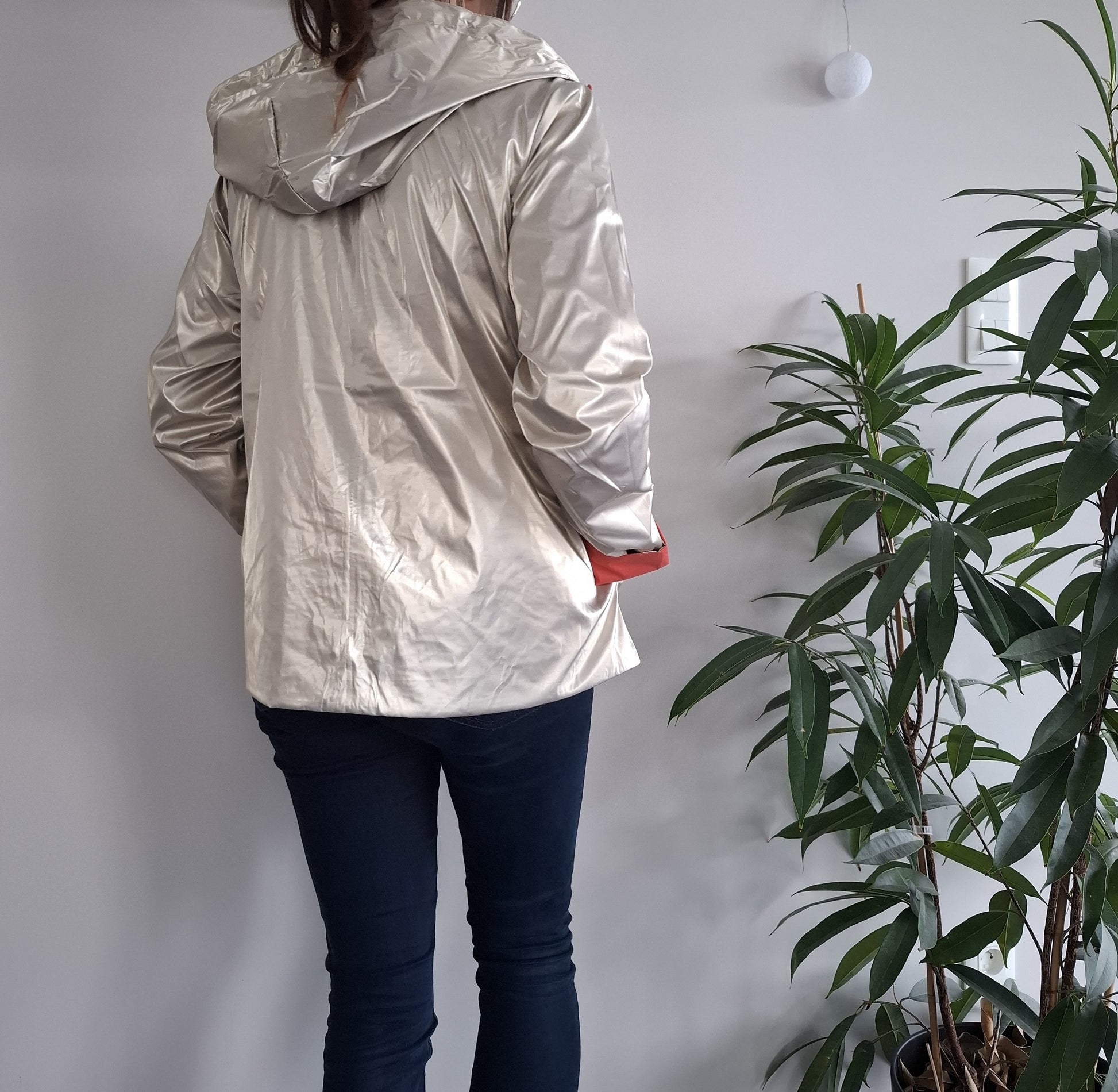 Laura Jo - Imperméable réversible court sans garnissage ouate couleur corail/doré