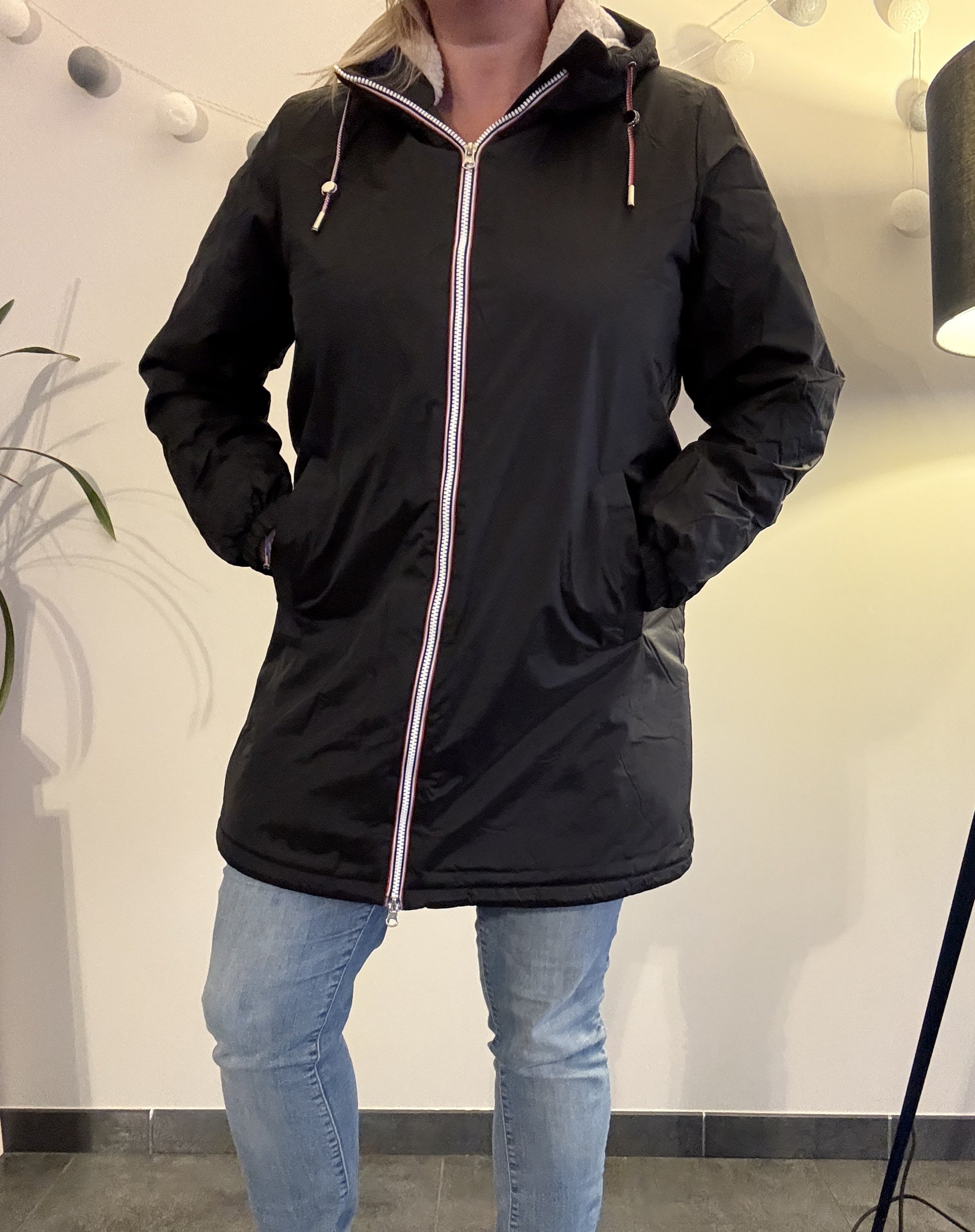 Imperméable long doublé noir intérieur imitation sherpa couleur blanc/écru