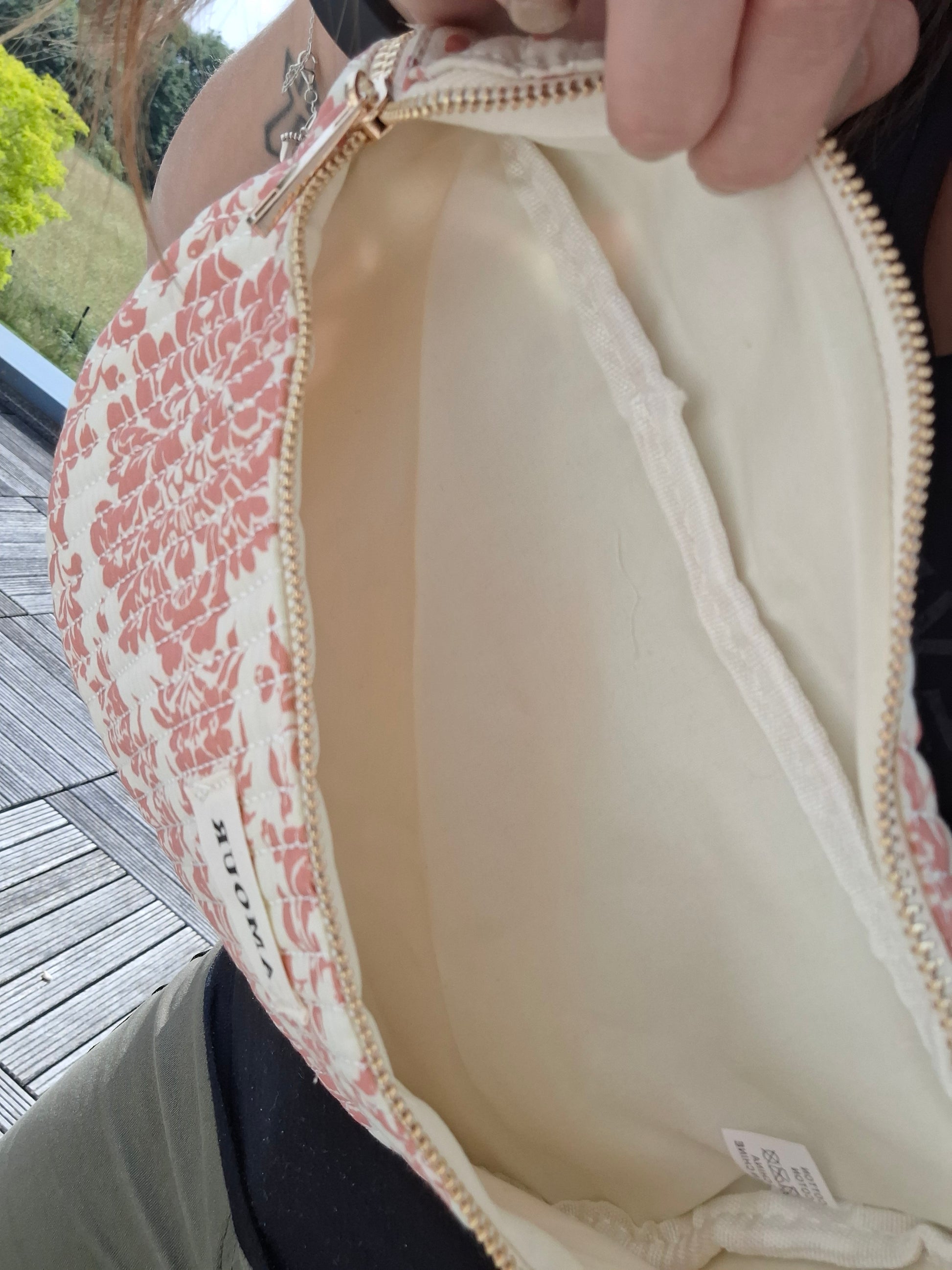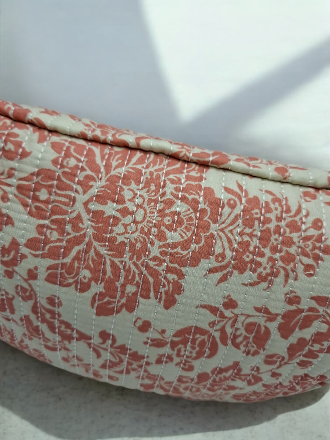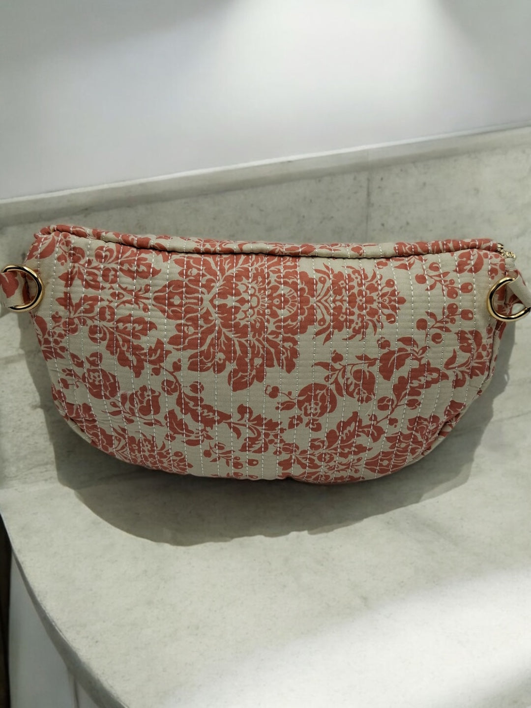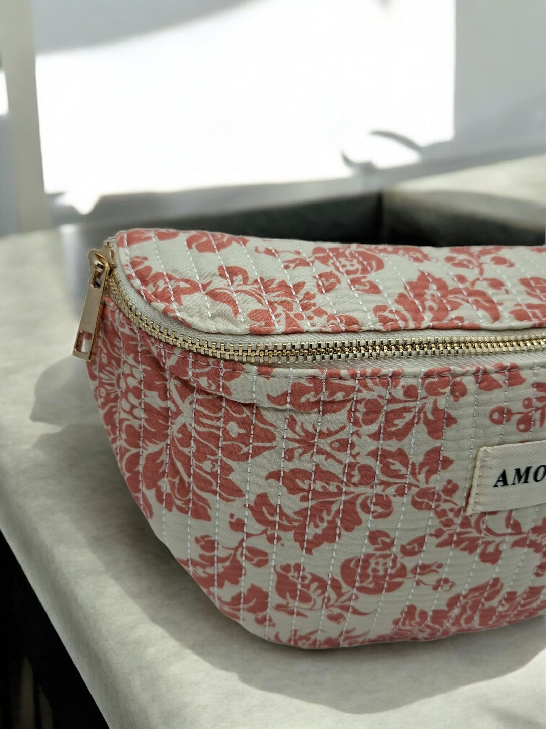 Sac banane coton matelassé blanc liberty fleuri corail creme