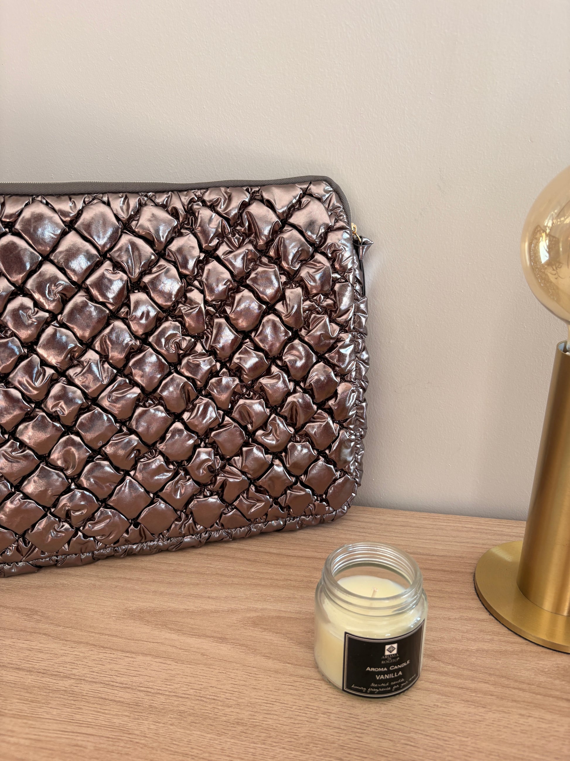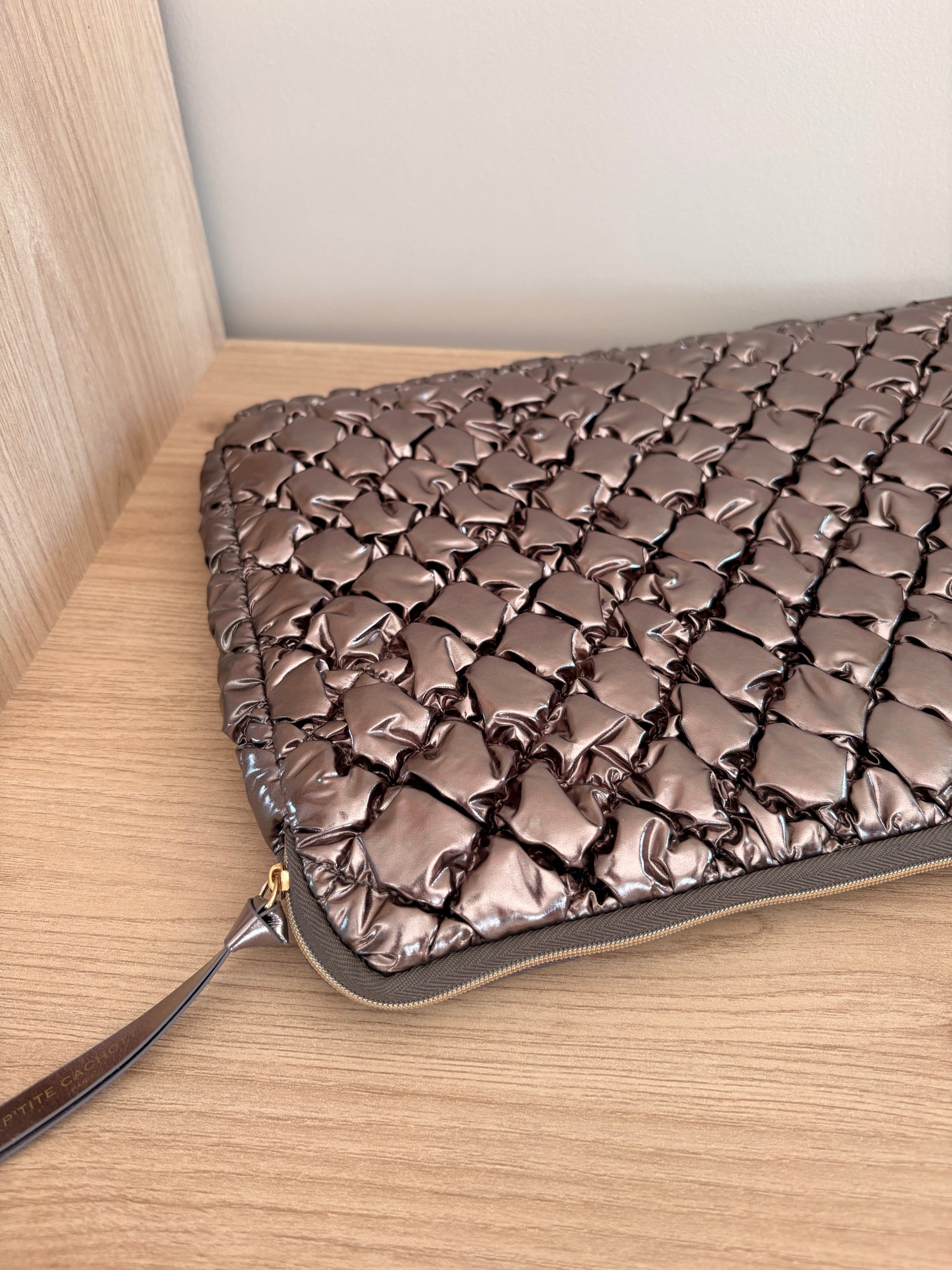 Pochette housse d’ordinateur 14’ matelassé motif relief couleur Argentée