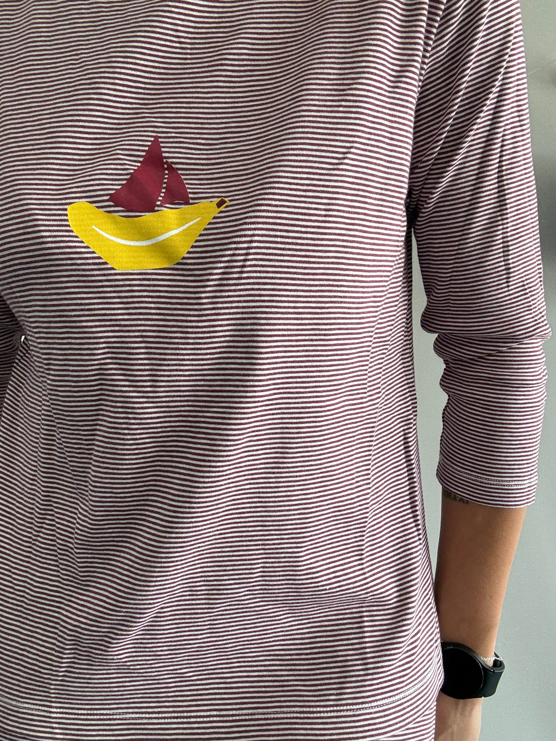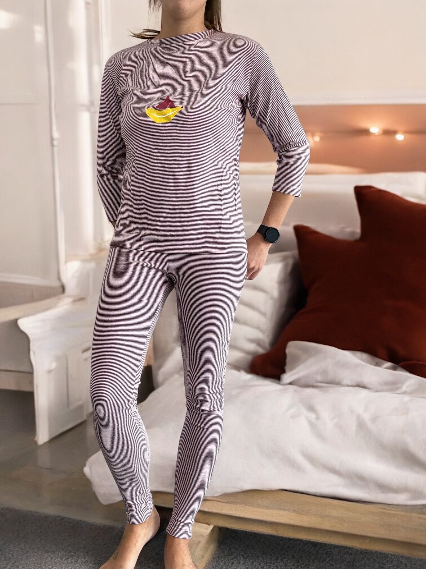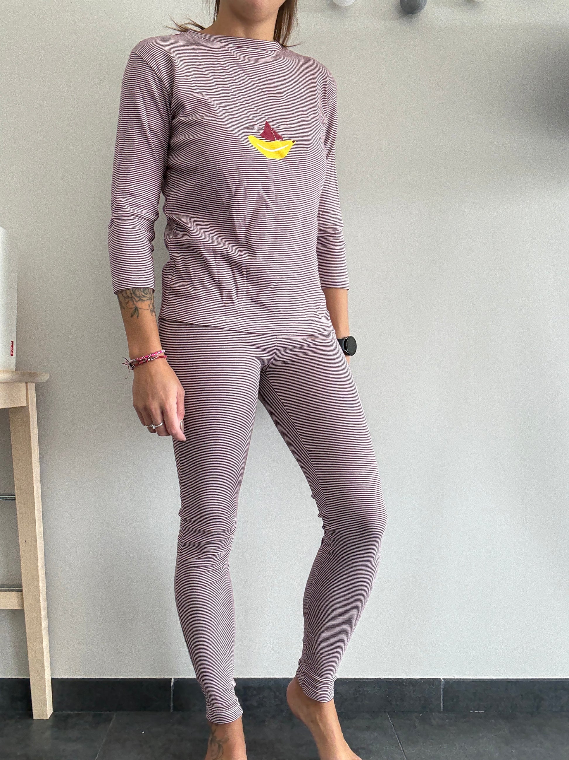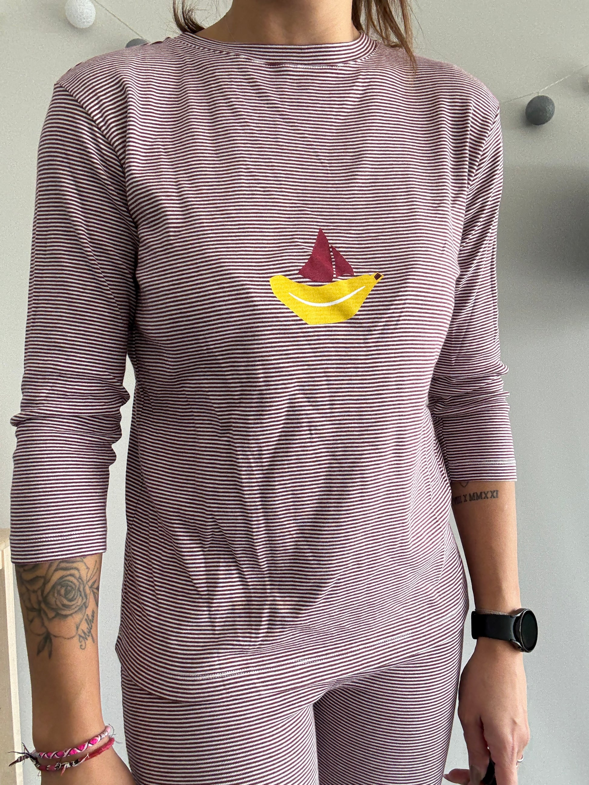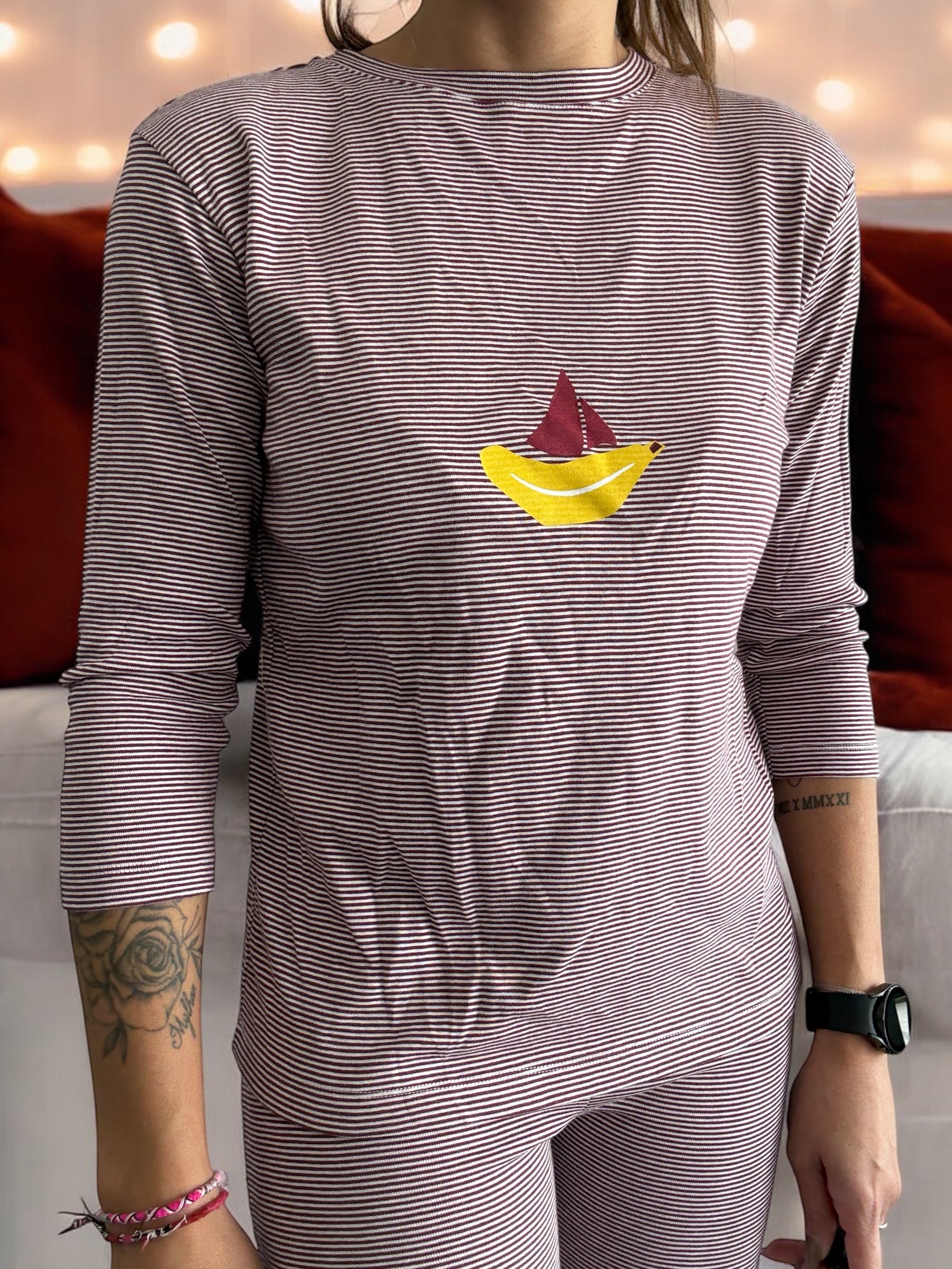 Pyjama Petit Bateau en coton rayé fines rayures rouge et blanc en partenariat avec Tajine Banane.