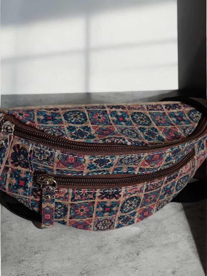 Sac banane en liège motifs « mosaïque » - 2 poches