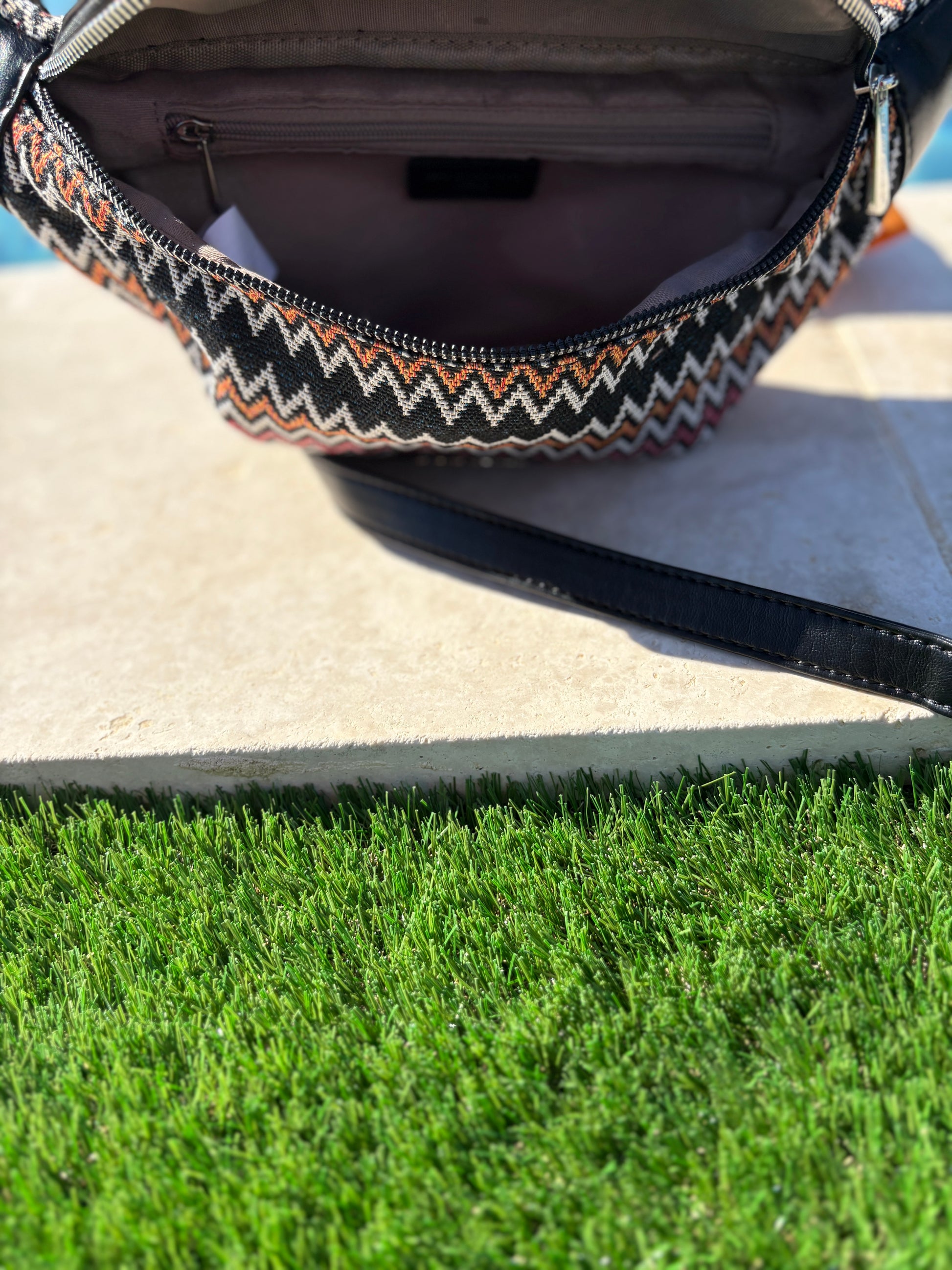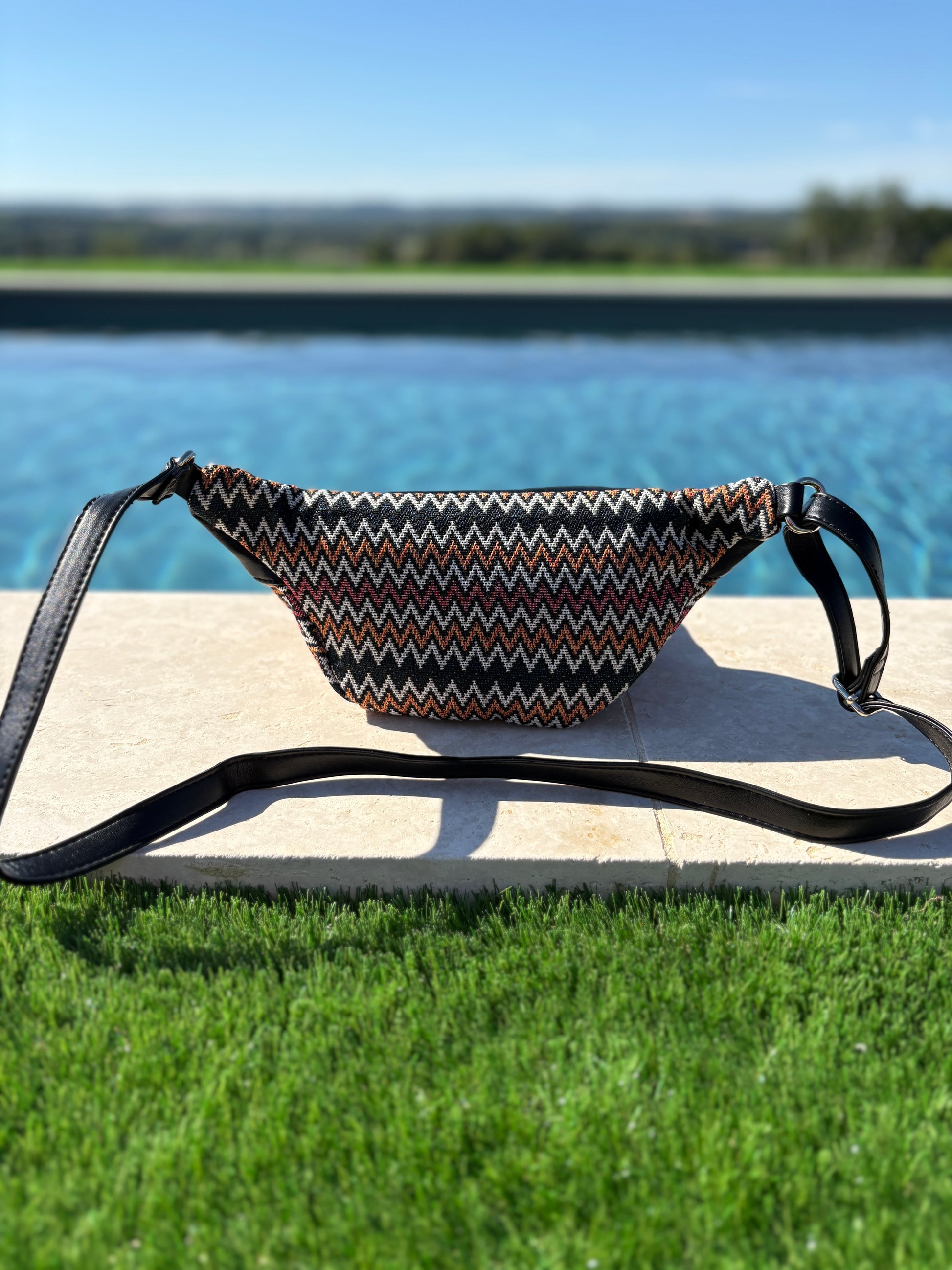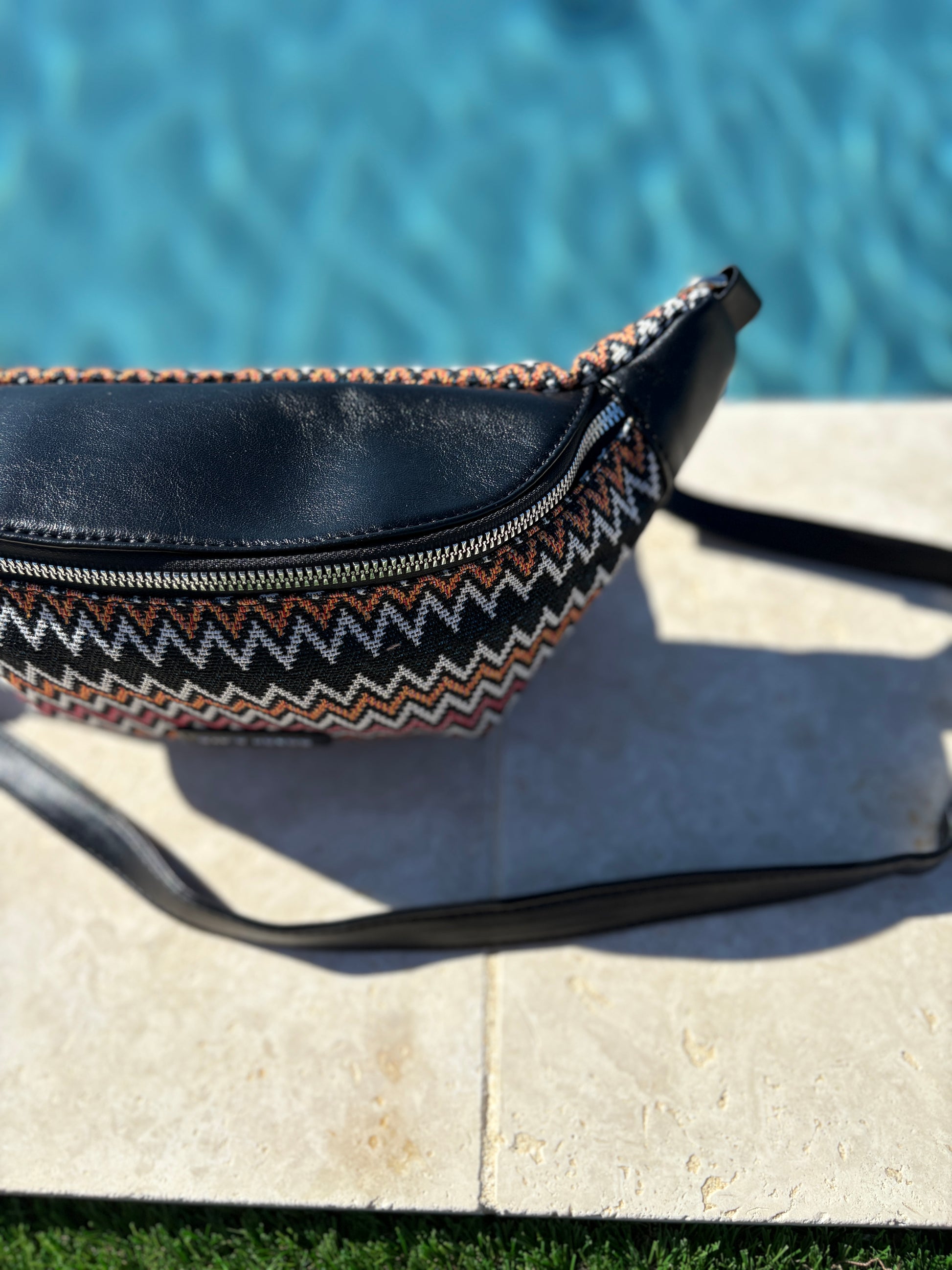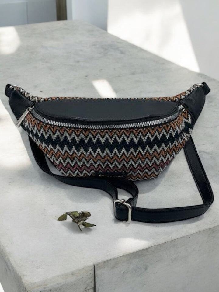 Sac banane simili cuir et tissu noir