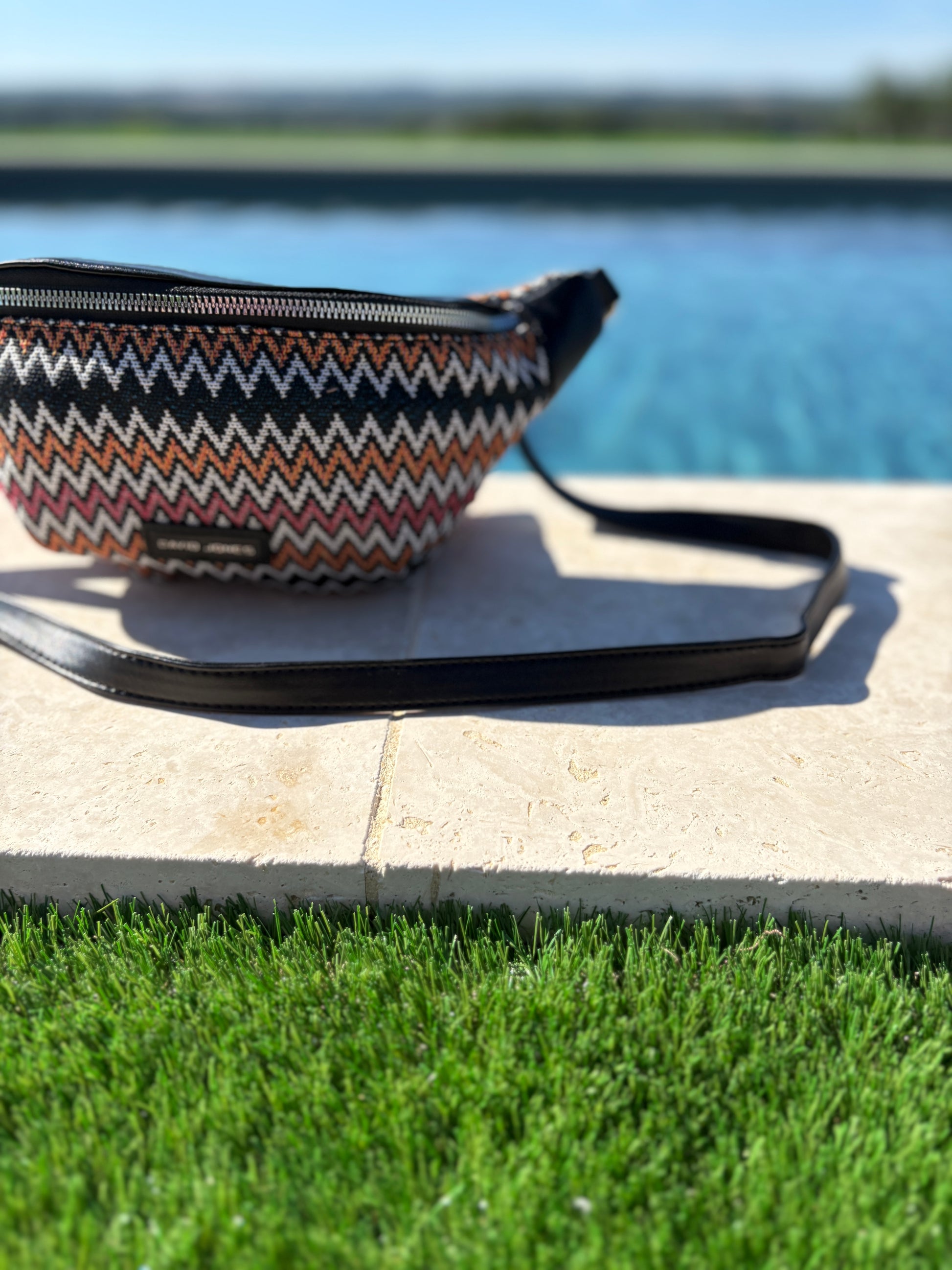 Intensifiez votre look avec ce sac banane simili cuir noir et orange