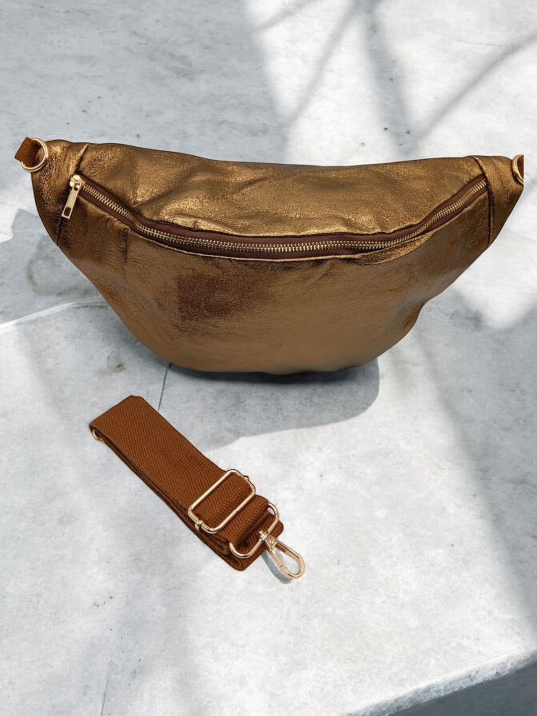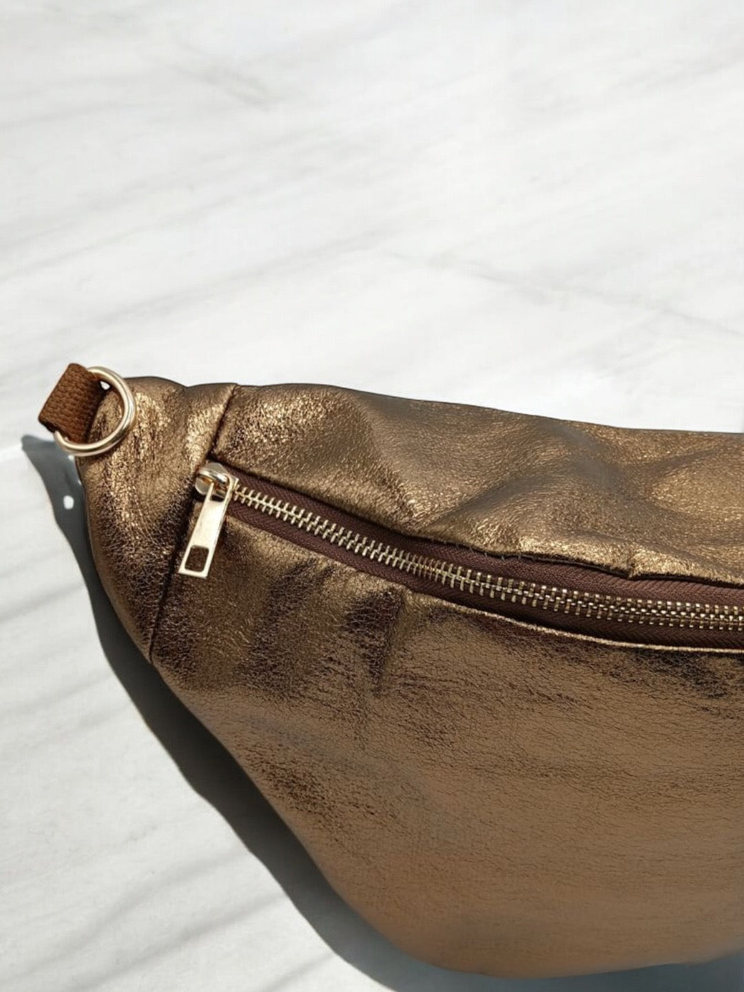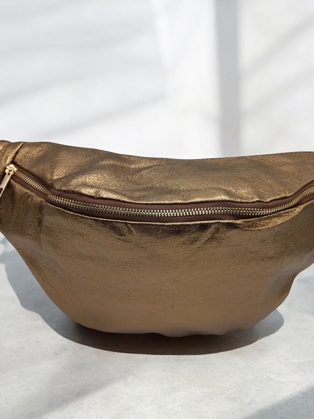 Sac banane XL simili cuir bronze irisé mousquetons dorés