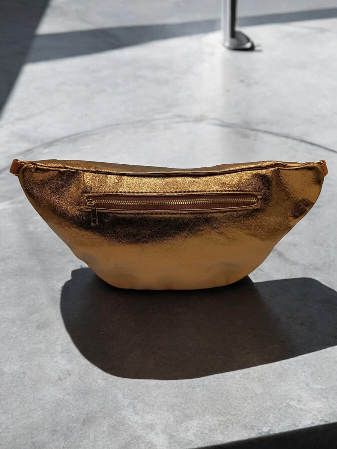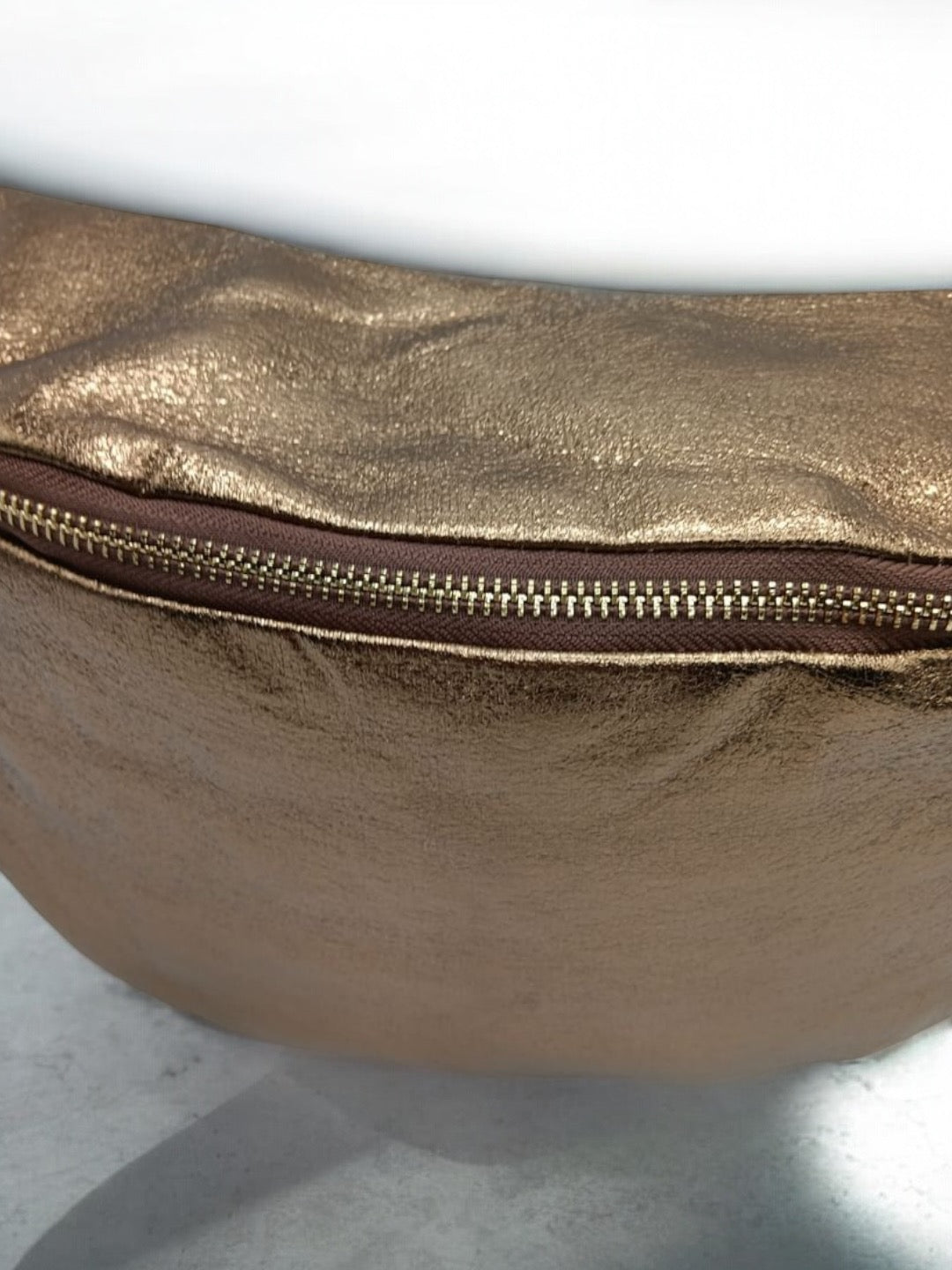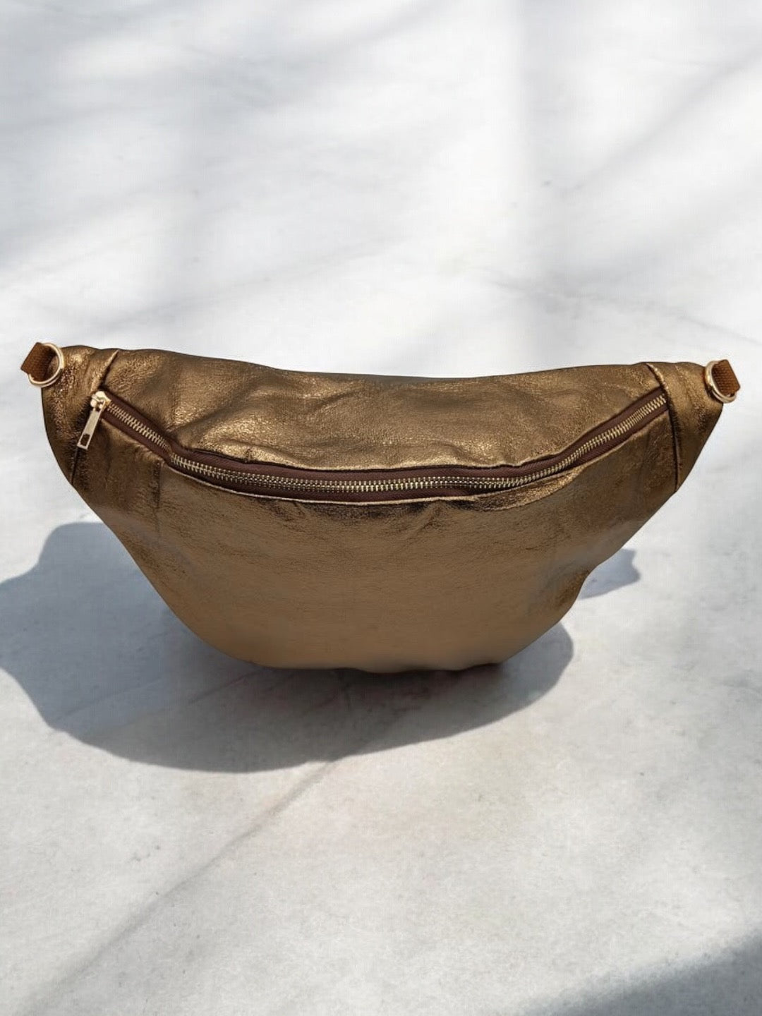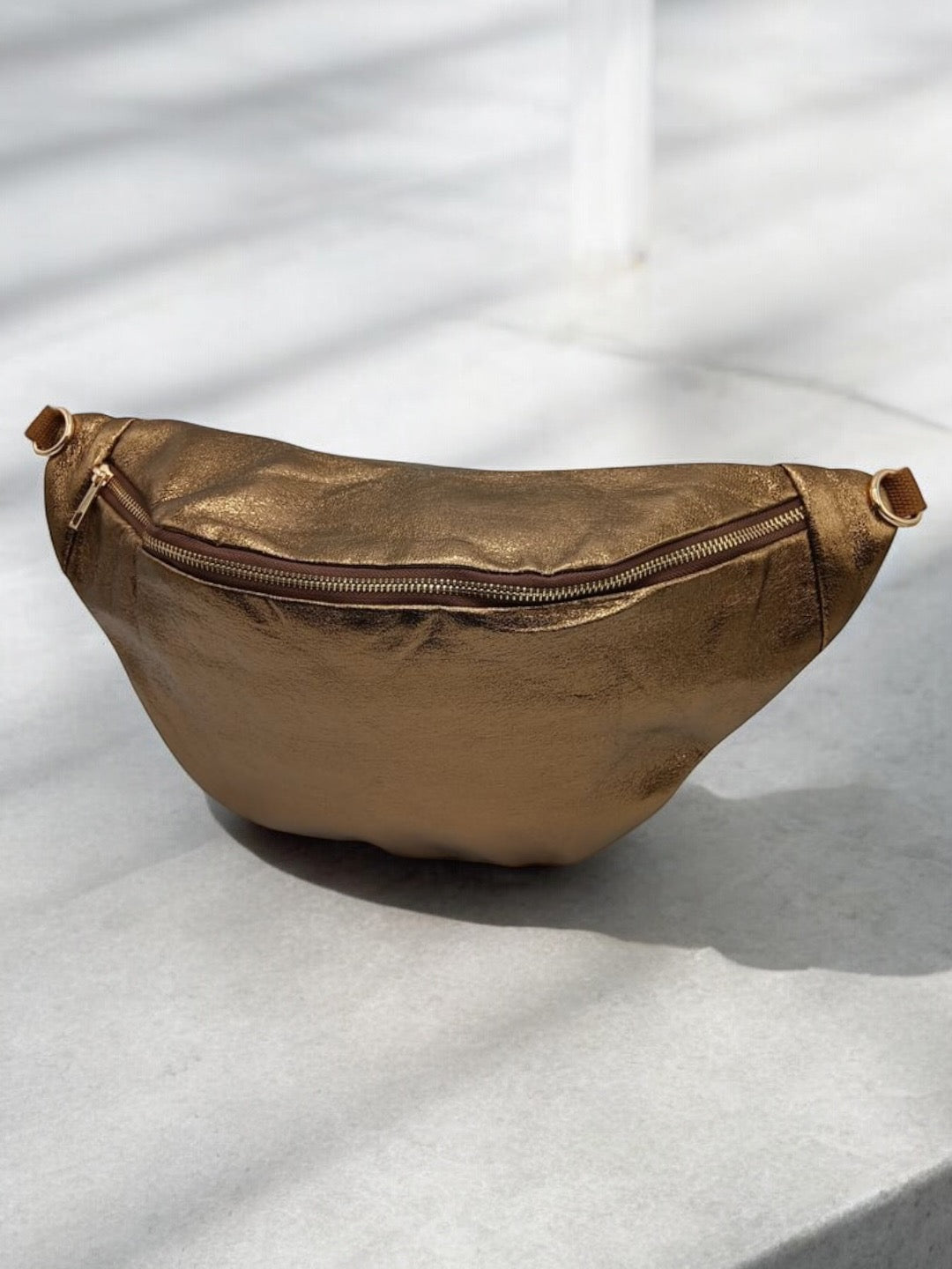 Sac banane XL simili cuir bronze irisé mousquetons dorés