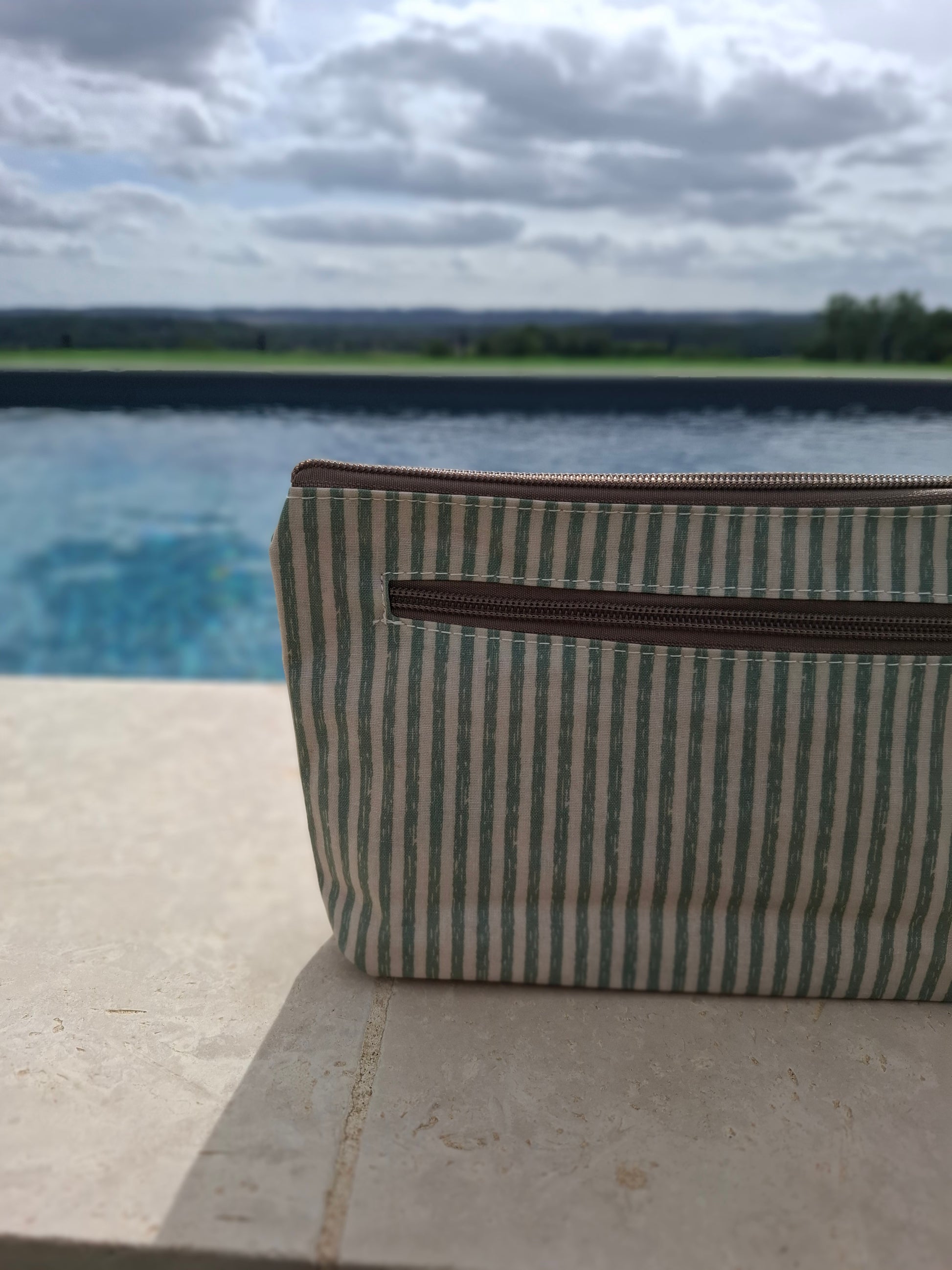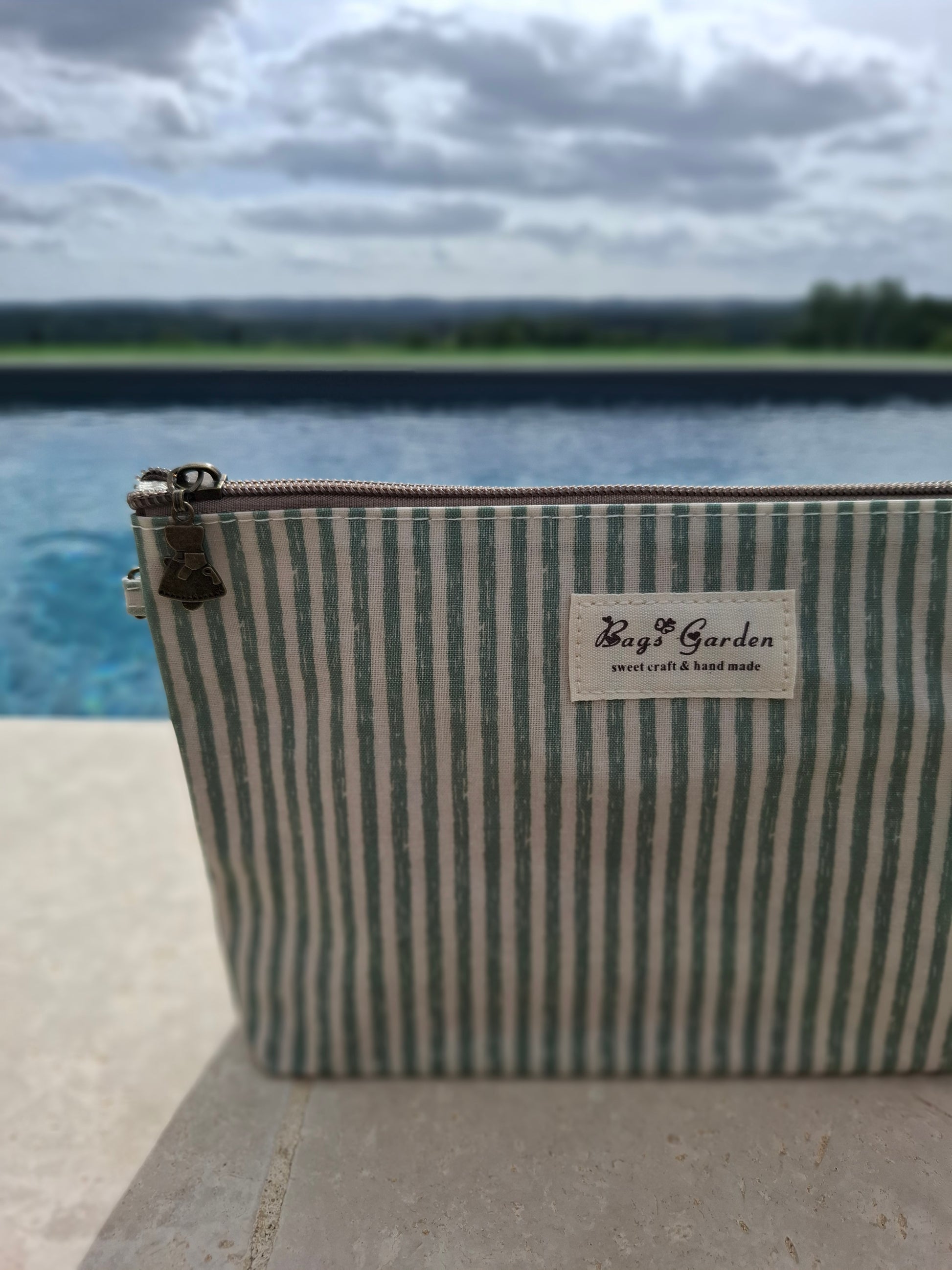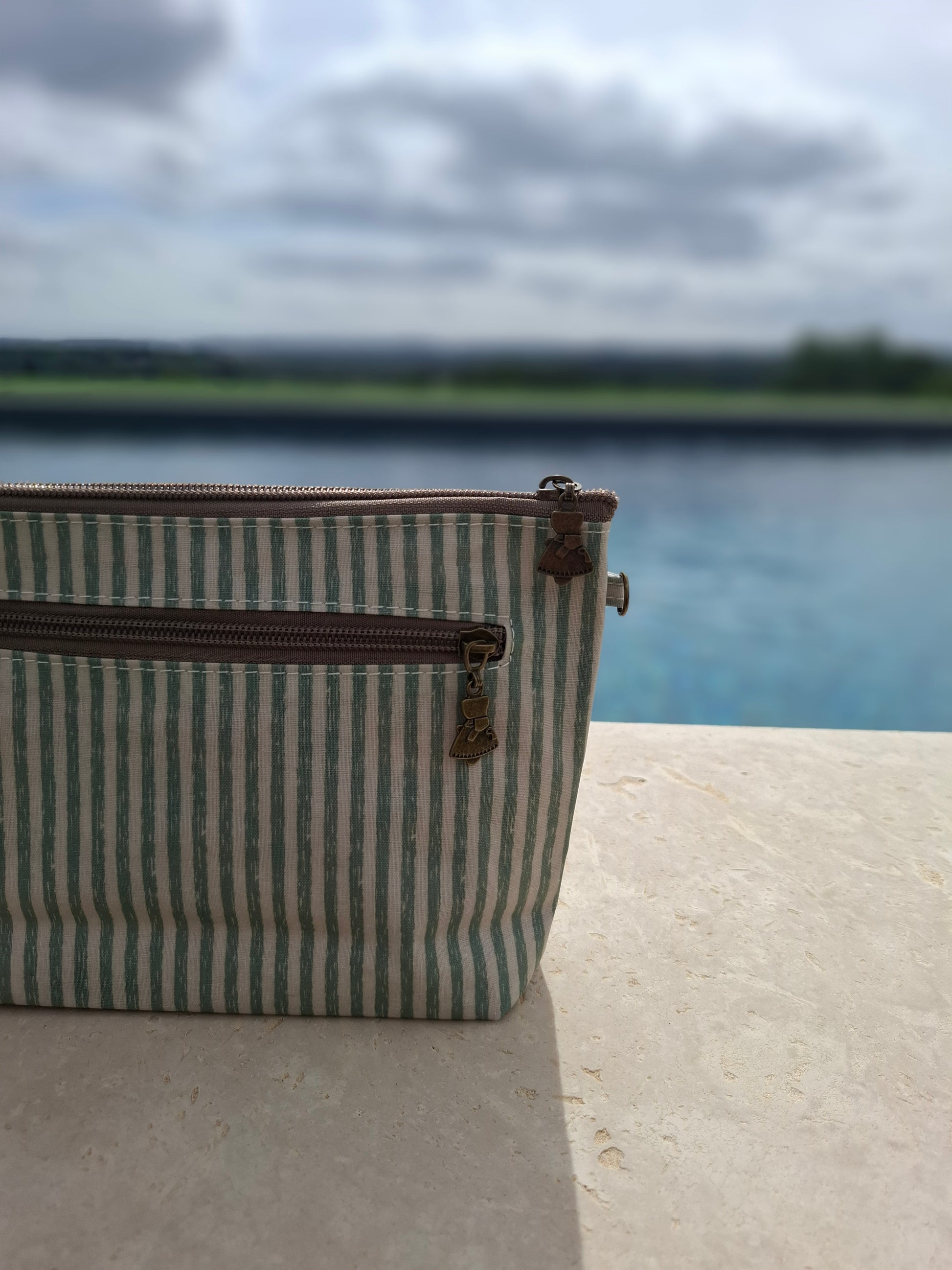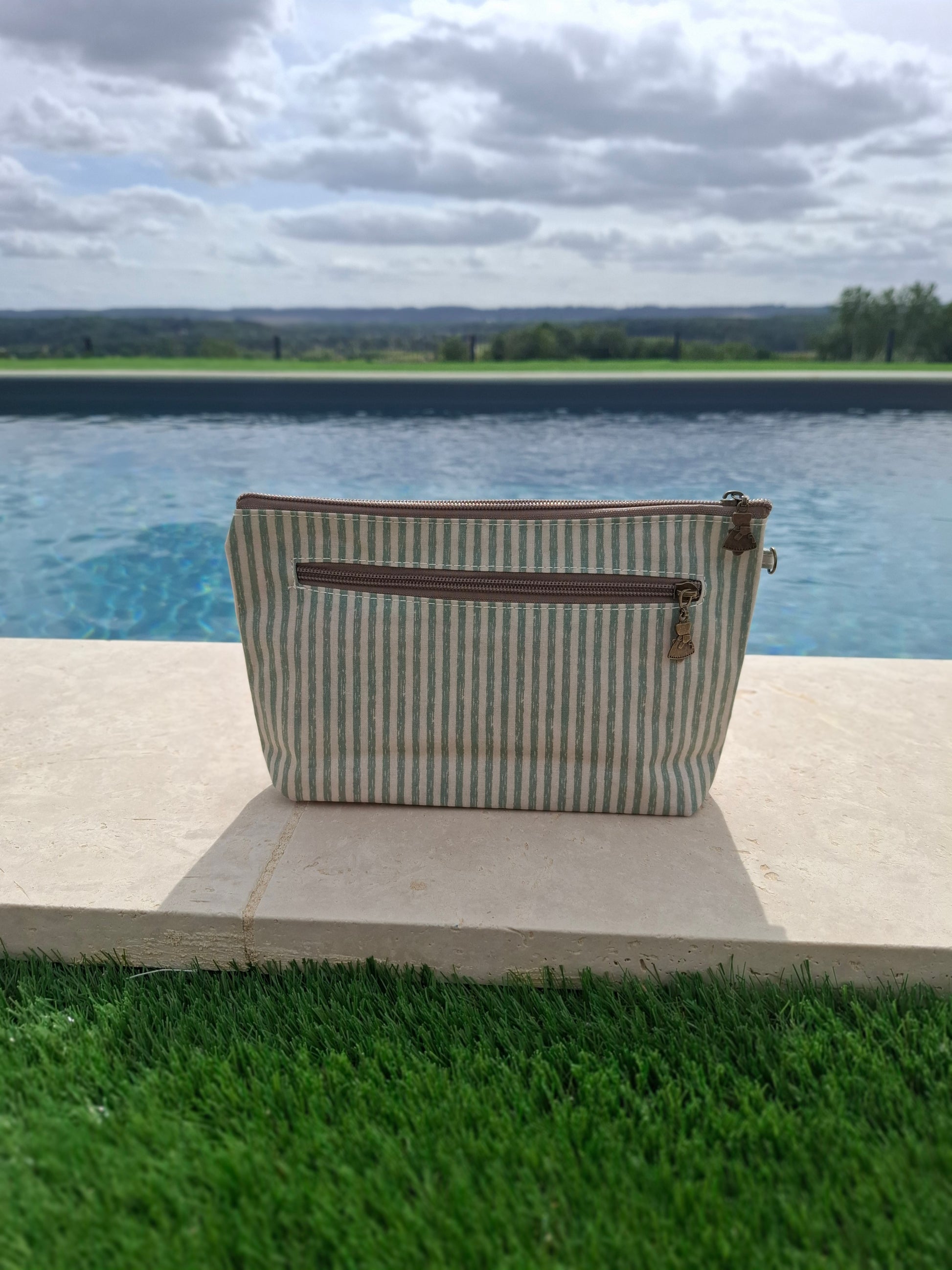 Pochette trousse en tissu imperméabilisé vert d’eau et blanc