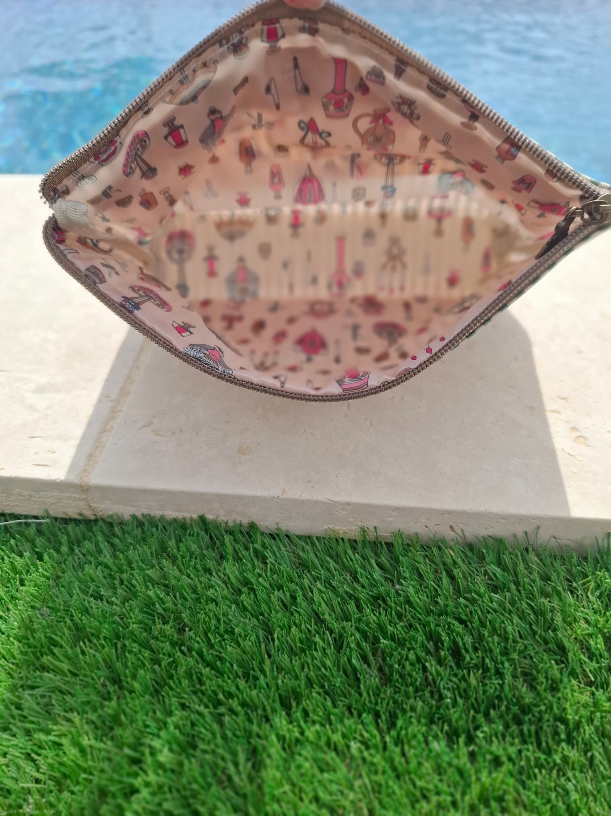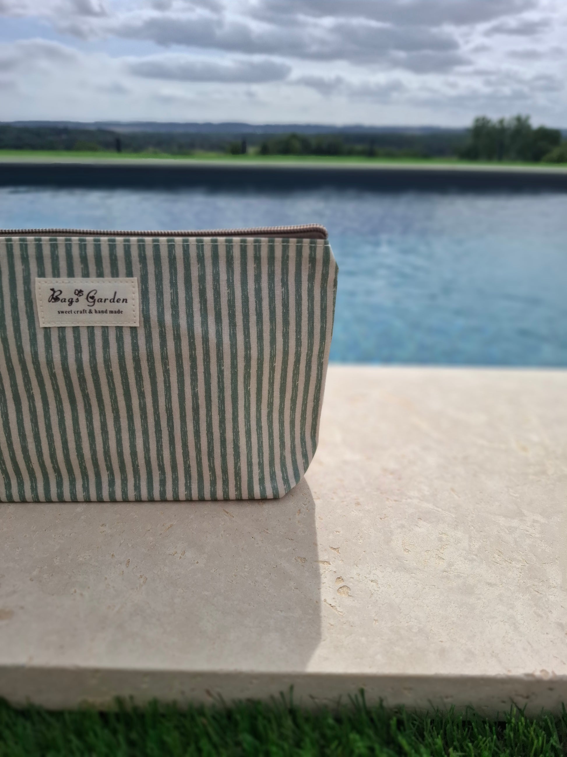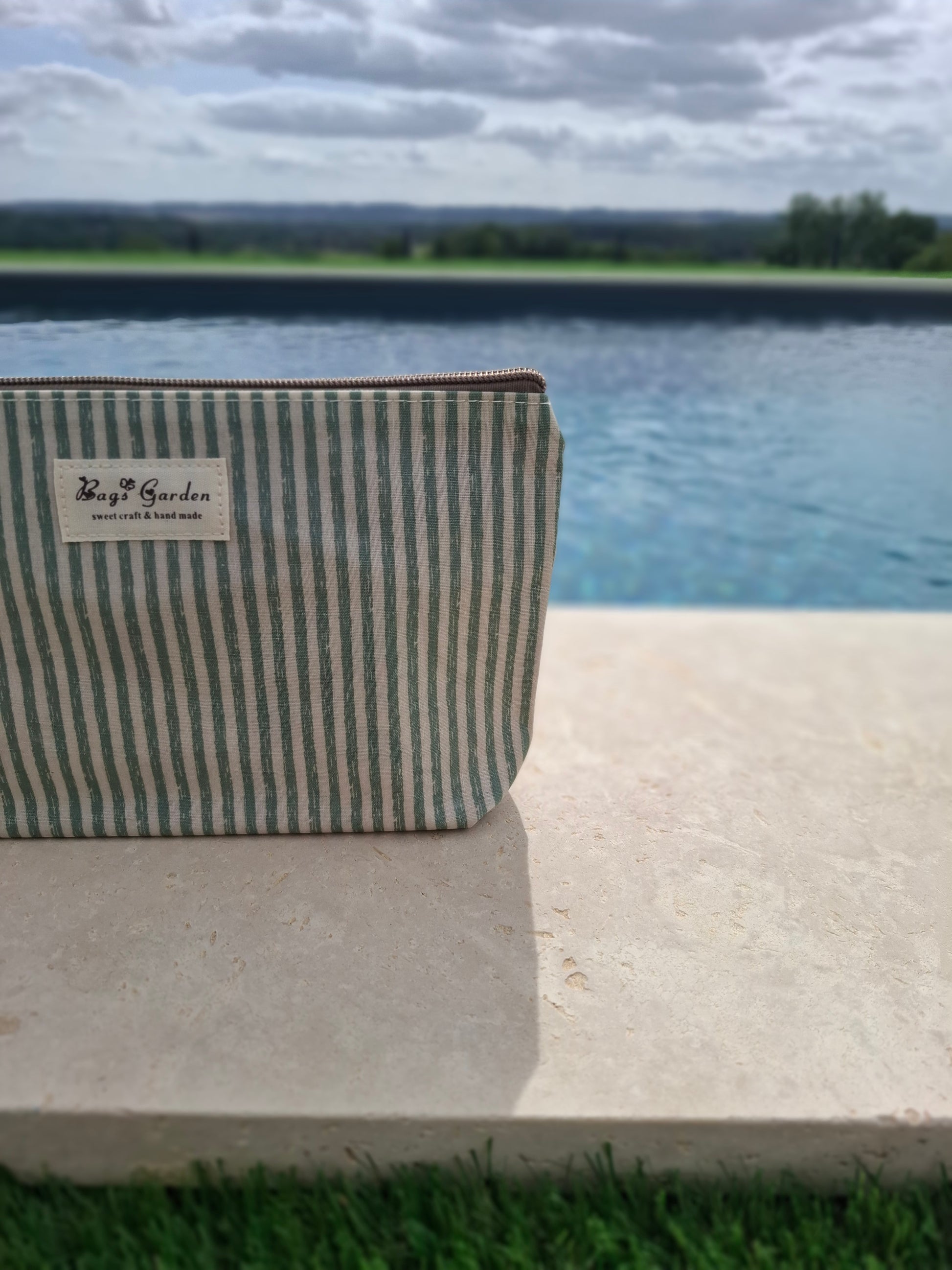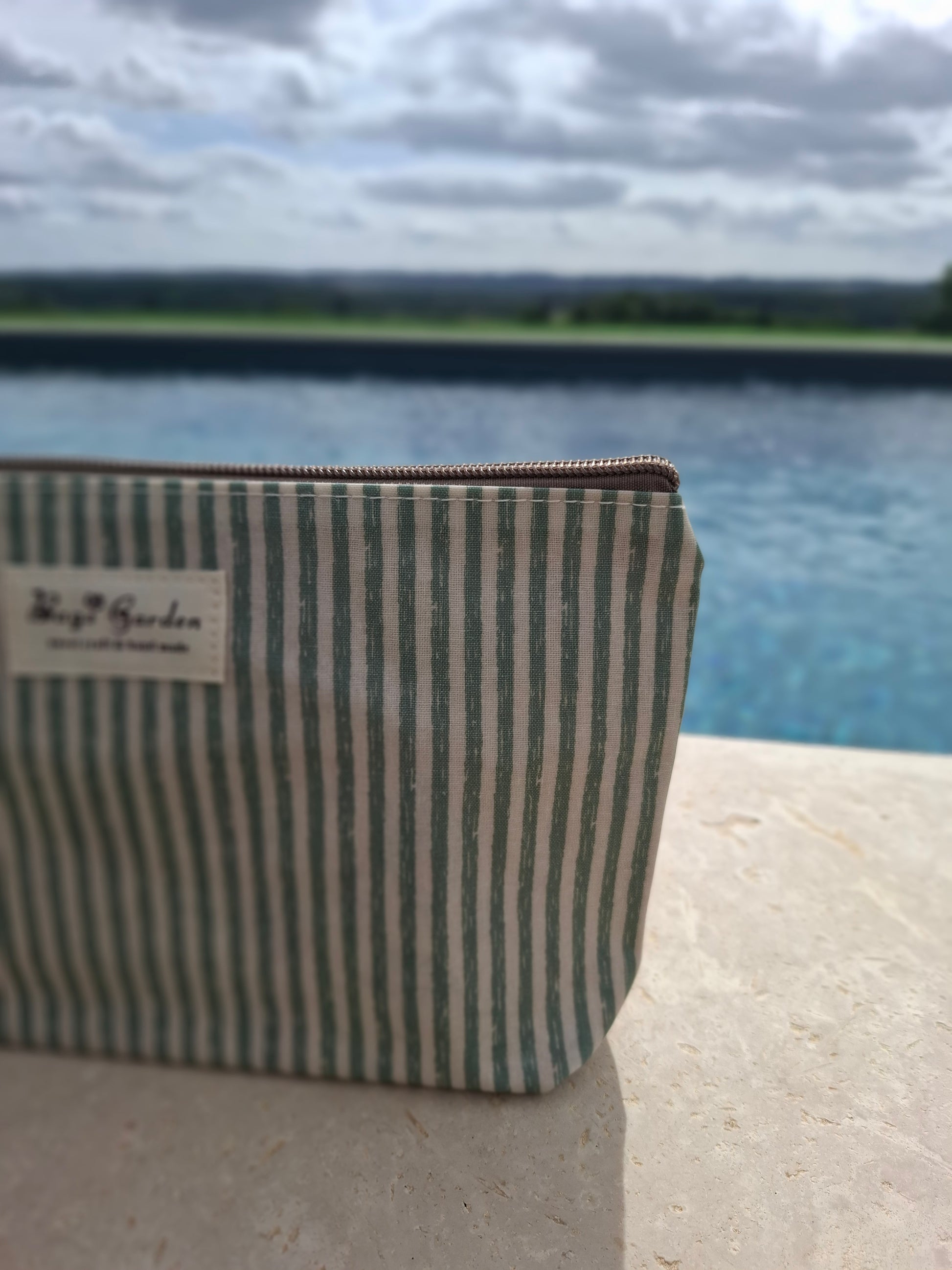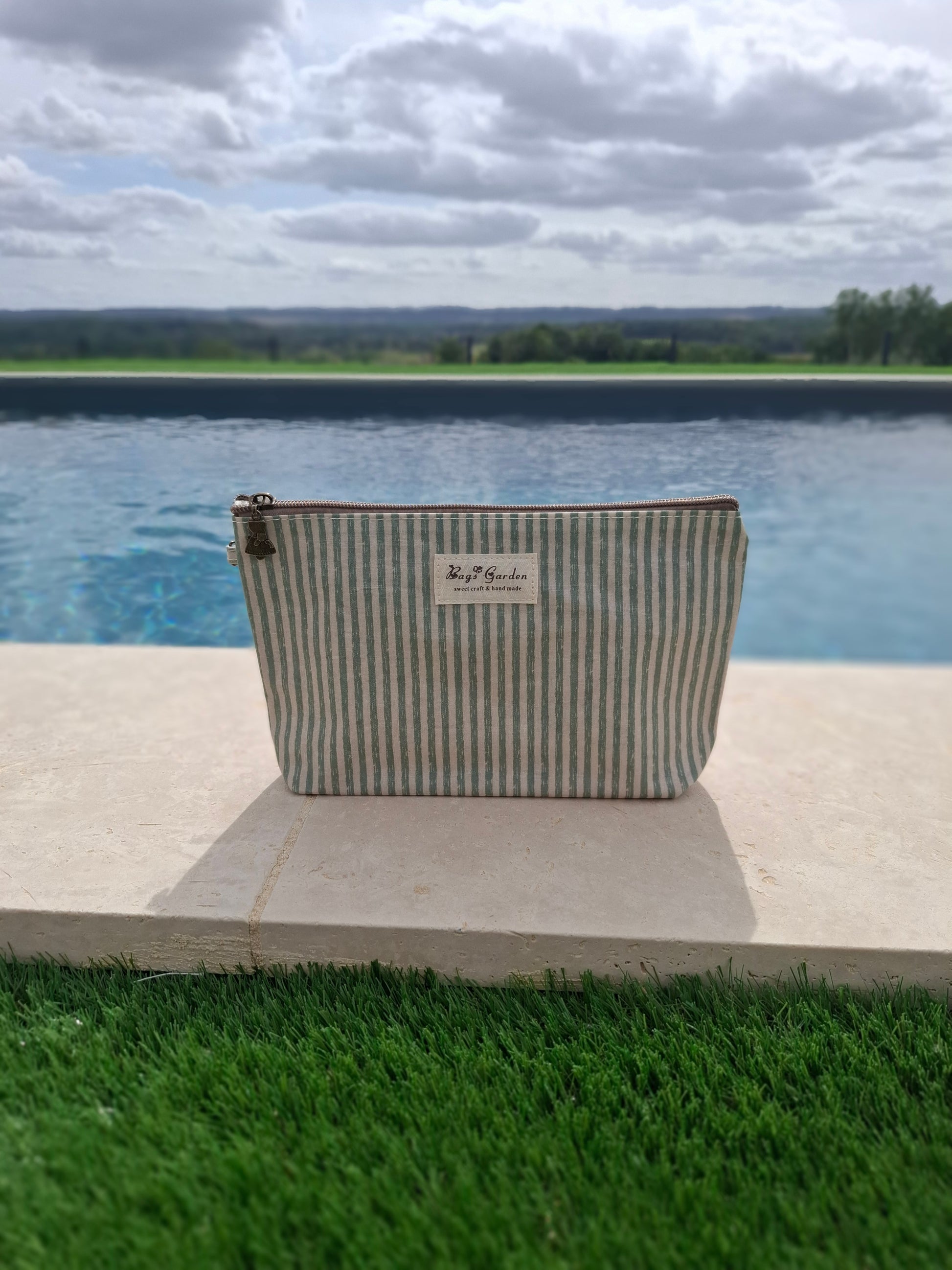 Pochette trousse en tissu imperméabilisé vert d’eau et blanc